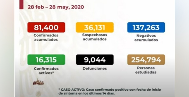 CORONAVIRUS EN MÉXICO AL 28 DE MAYO: 9,044 MUERTOS Y 81,400 INFECTADOS