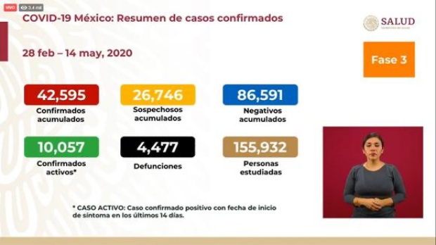 CORONAVIRUS EN MÉXICO AL 14 DE MAYO: 4,477 MUERTOS Y 42,595 INFECTADOS