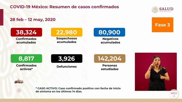 CORONAVIRUS EN MÉXICO AL 12 DE MAYO: 3,926 MUERTOS Y 38,324 INFECTADOS