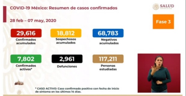 CORONAVIRUS EN MÉXICO AL 7 DE MAYO: 2,961 MUERTOS Y 29,616 INFECTADOS