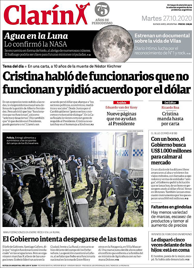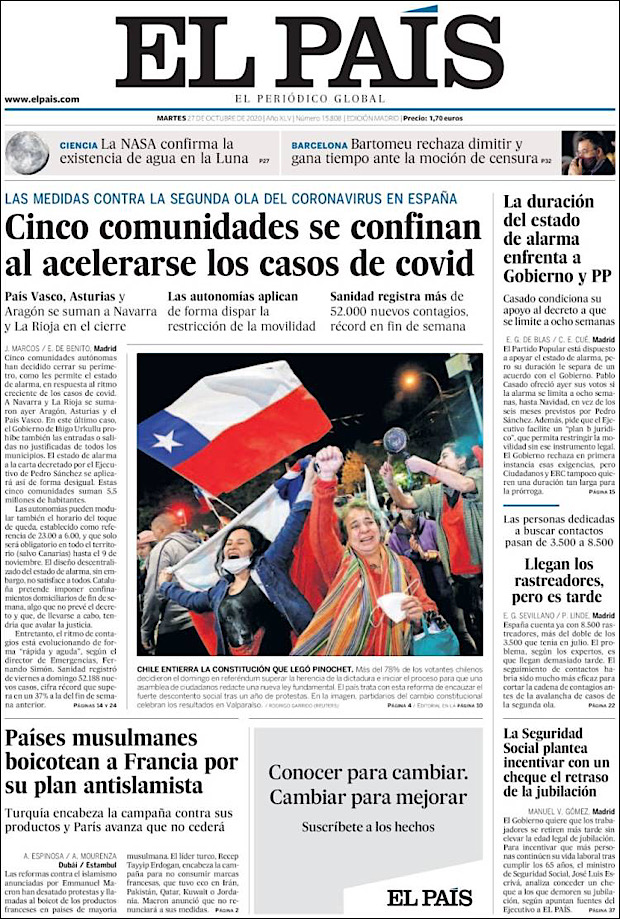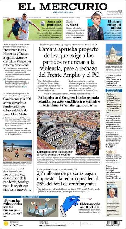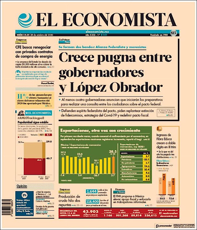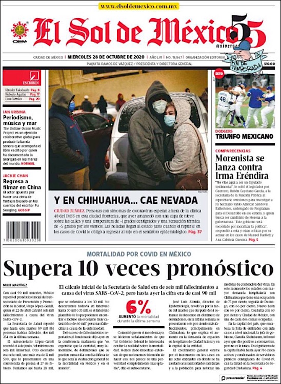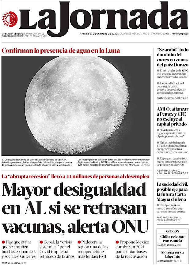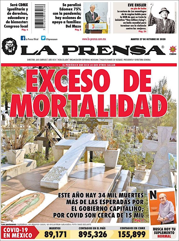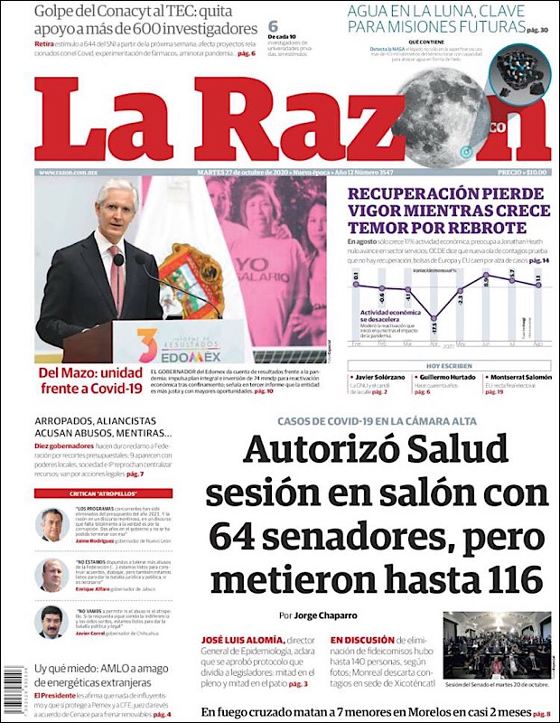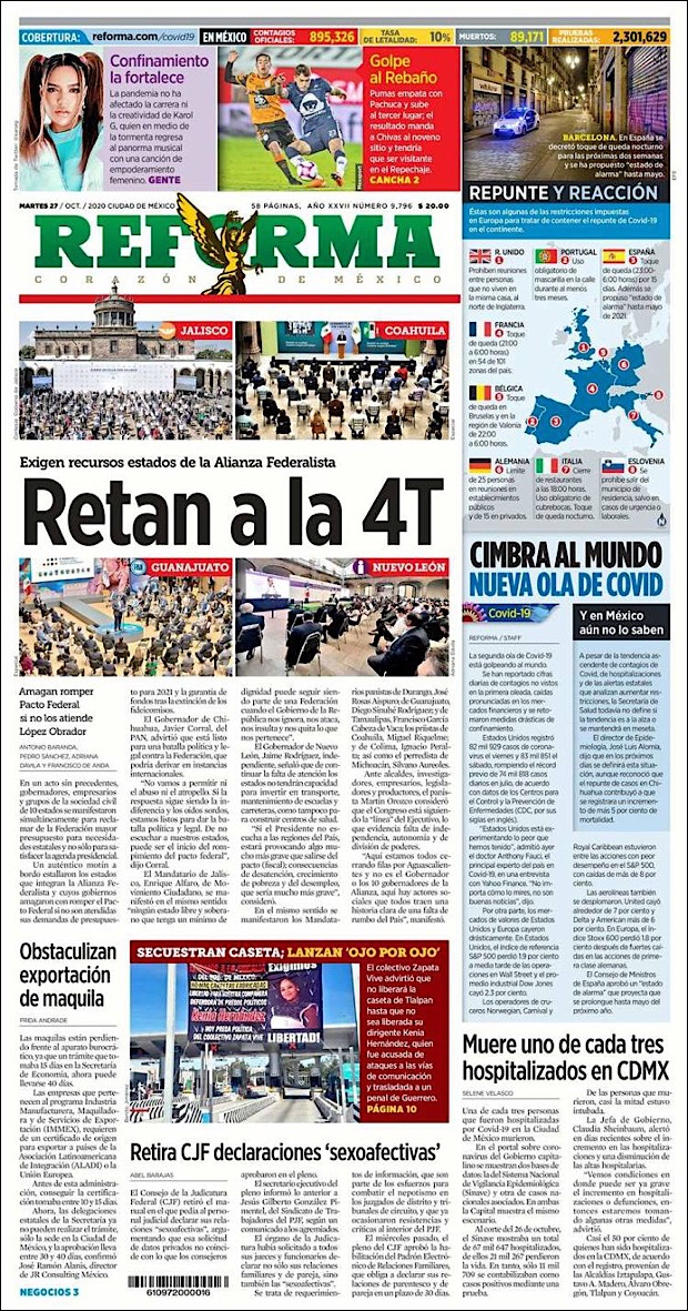 PRIMERAS PLANAS EN MEXICO Y EL MUNDO DEL 27 DE OCTUBRE DE 2020