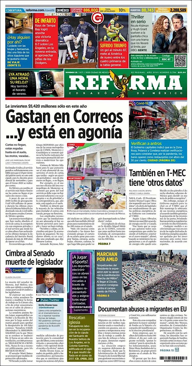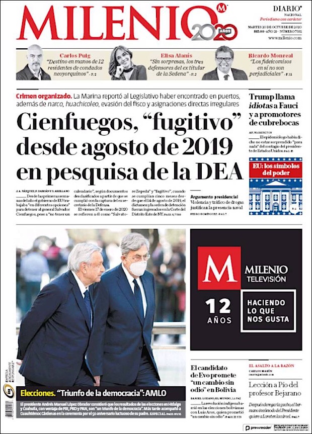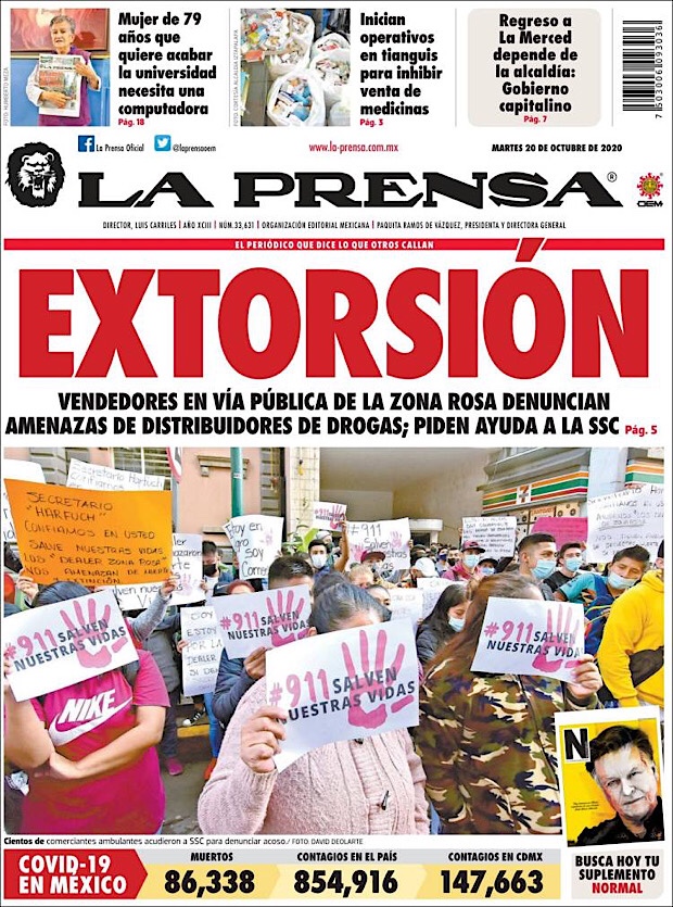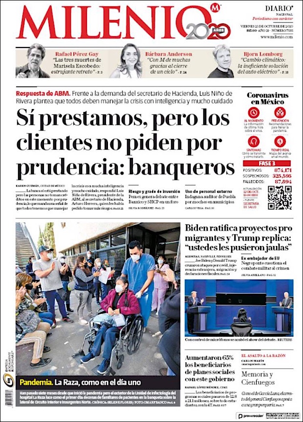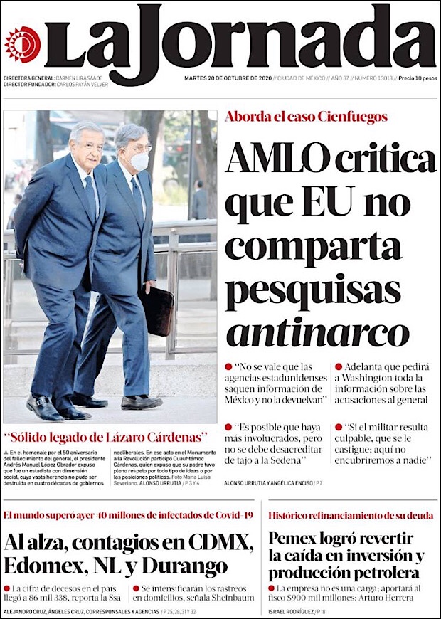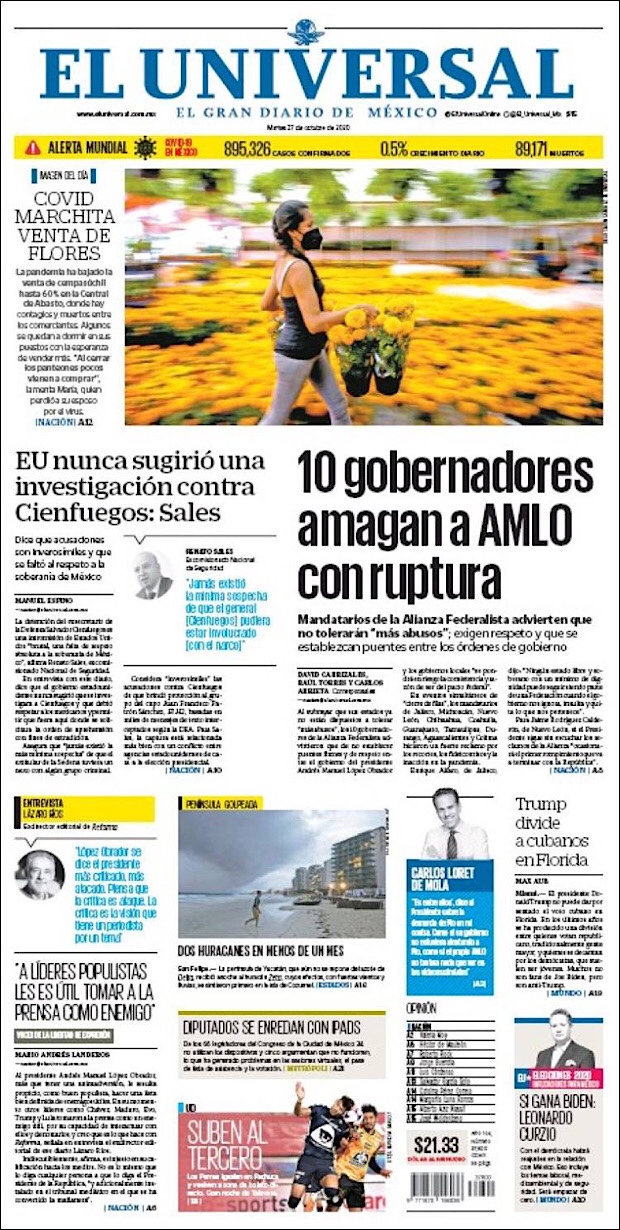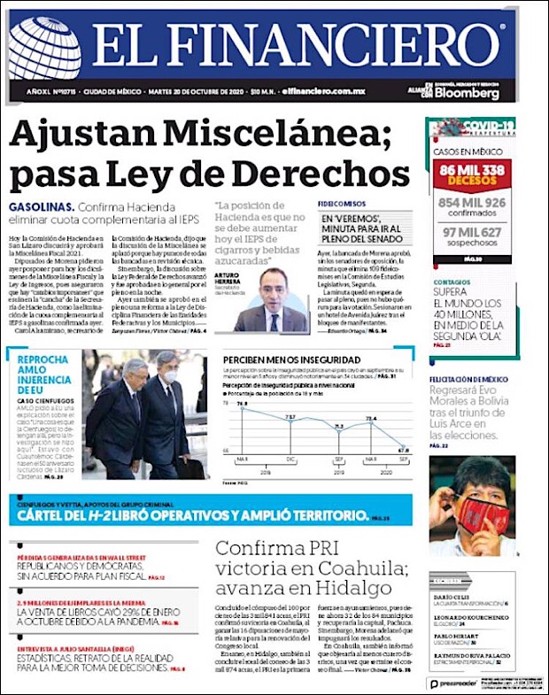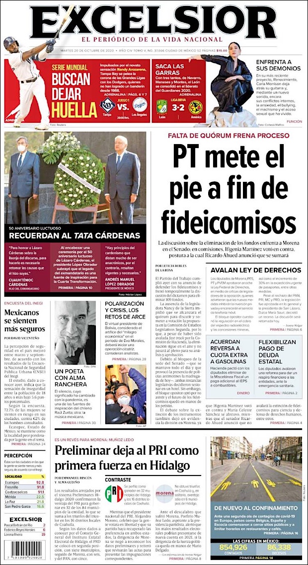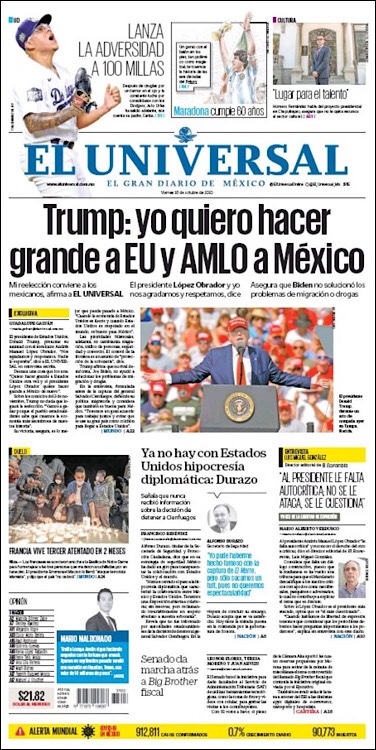PRIMERAS PLANAS EN MEXICO Y EL MUNDO DEL 20 DE OCTUBRE DE 2020