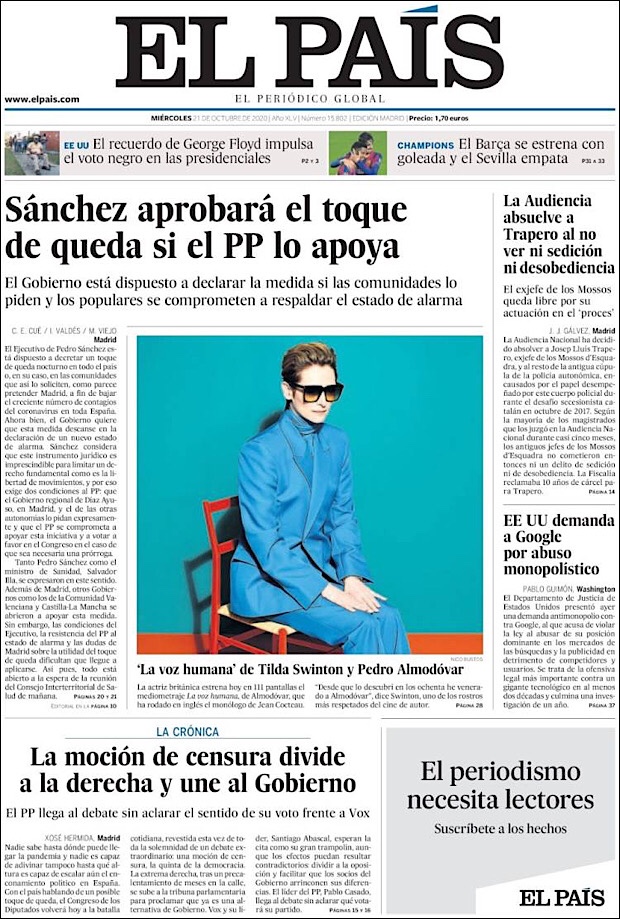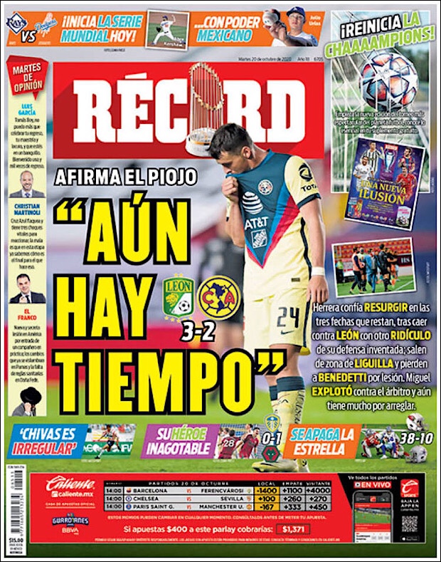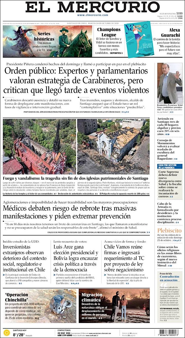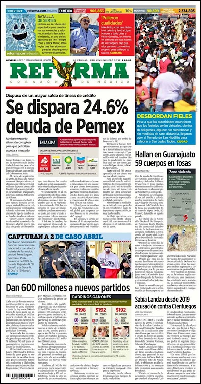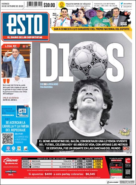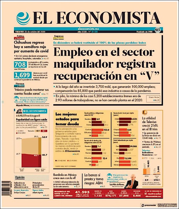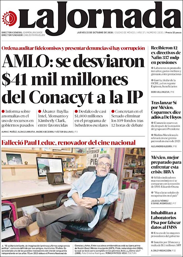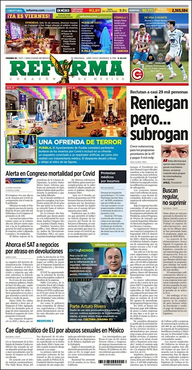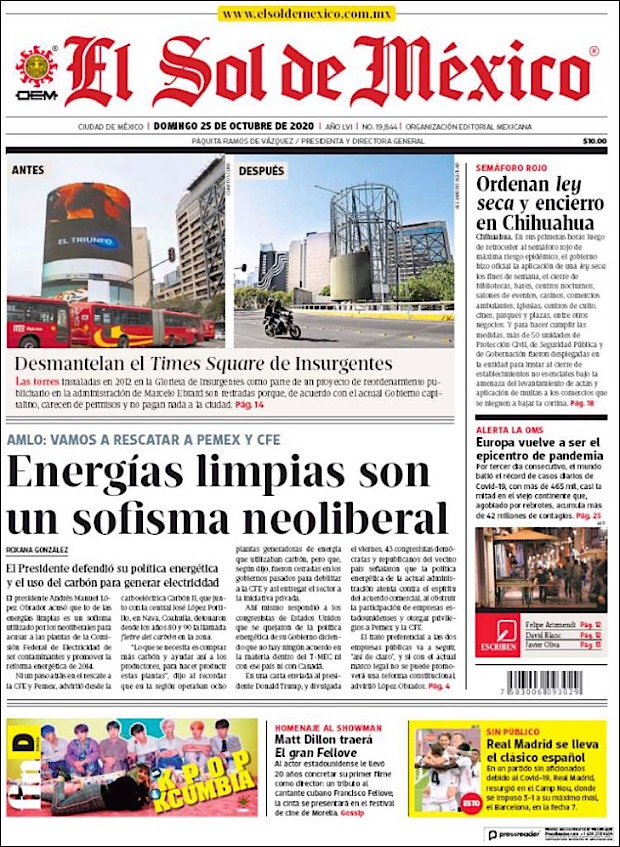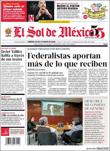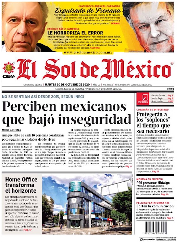 PRIMERAS PLANAS EN MEXICO Y EL MUNDO DEL 20 DE OCTUBRE DE 2020