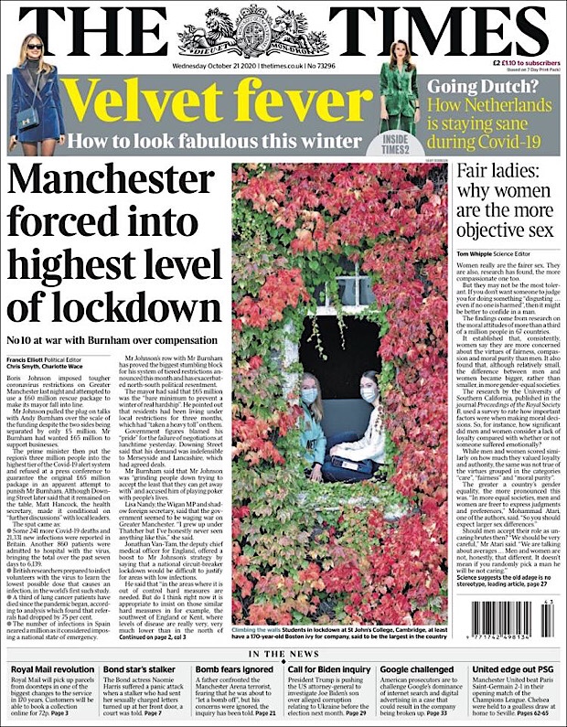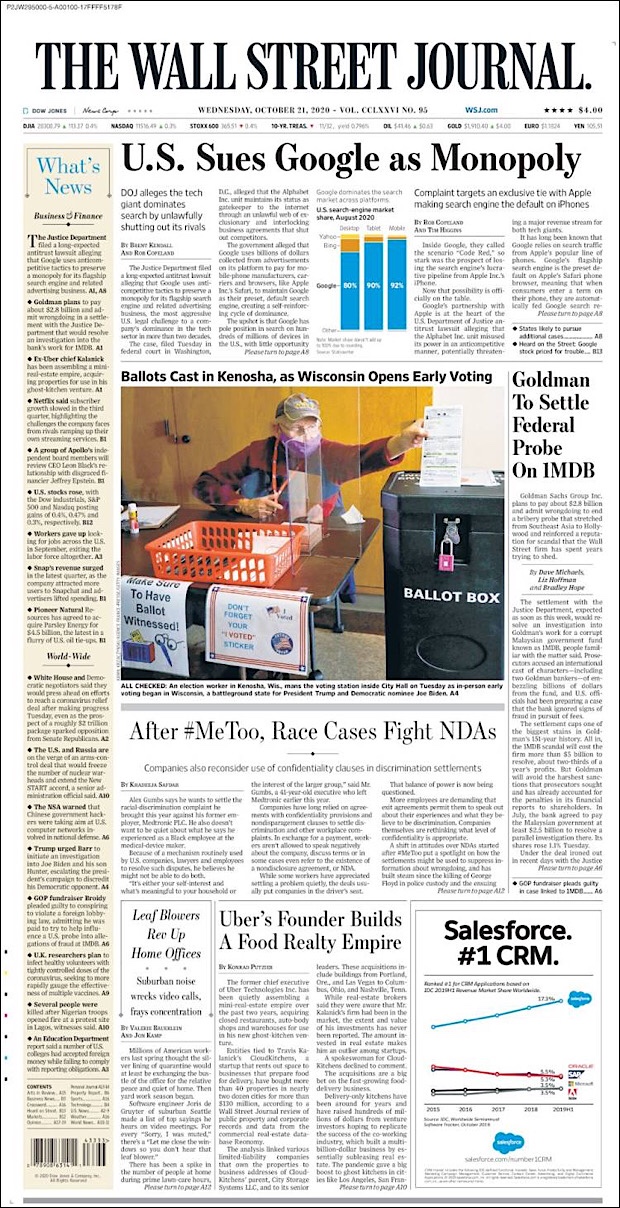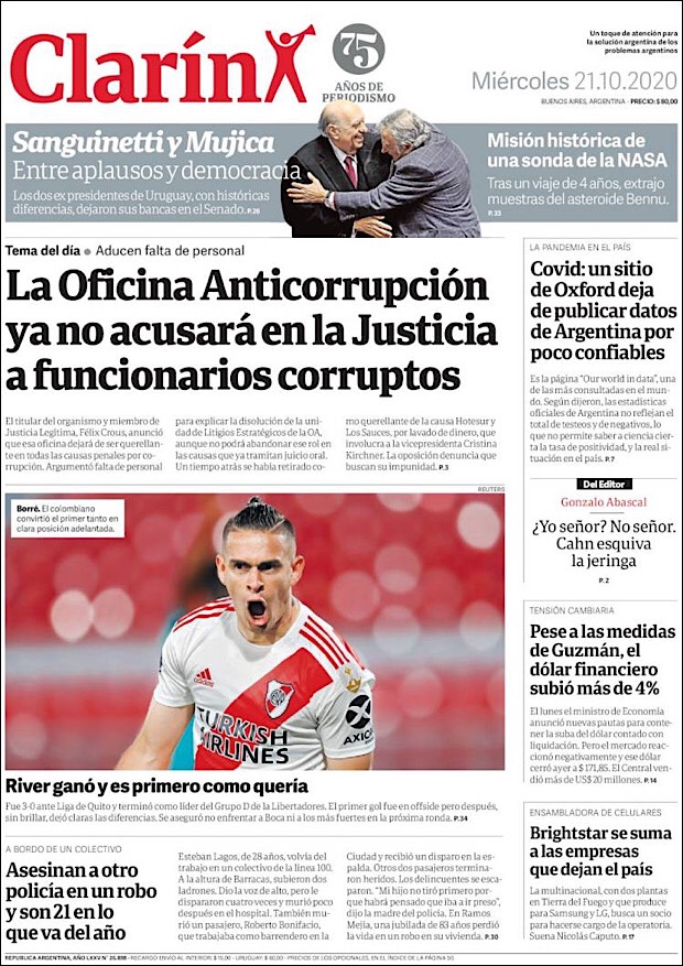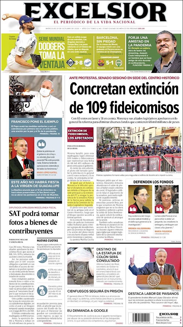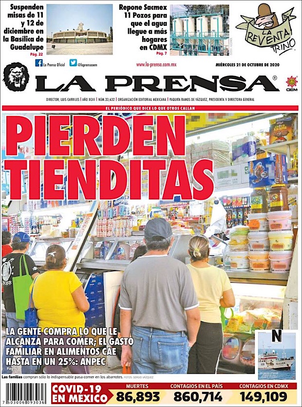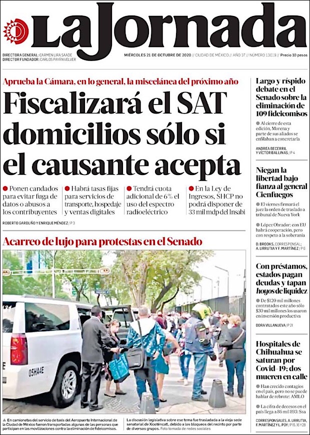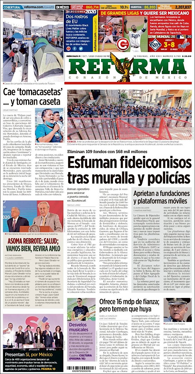 PRIMERAS PLANAS EN MEXICO Y EL MUNDO DEL 21 DE OCTUBRE DE 2020