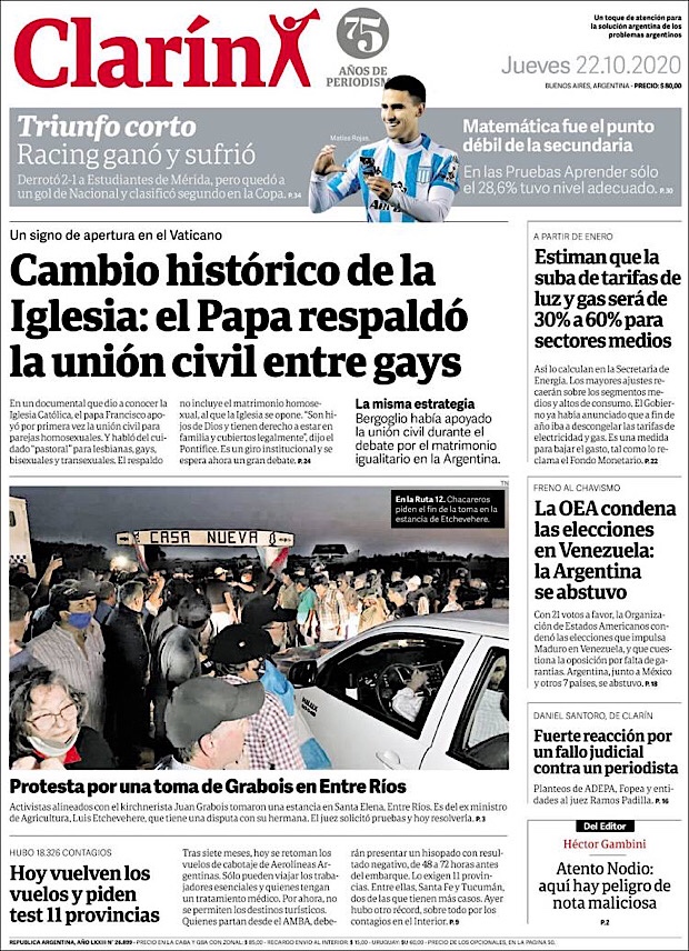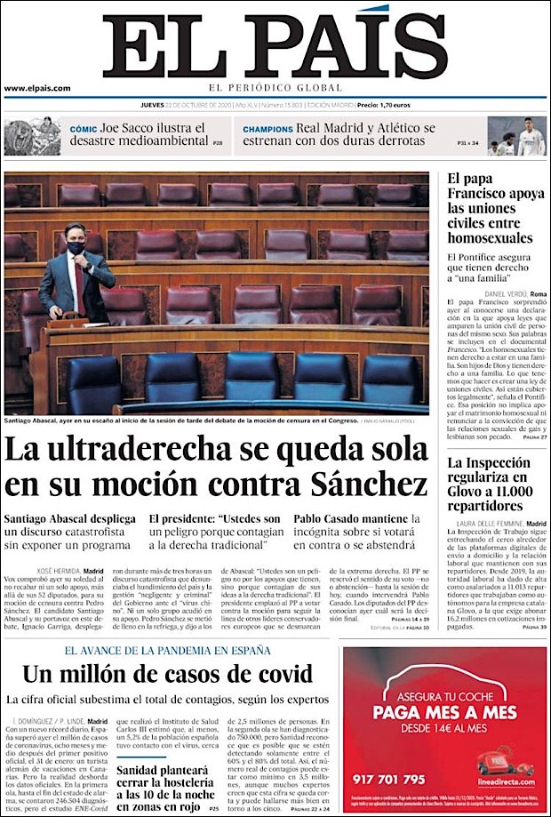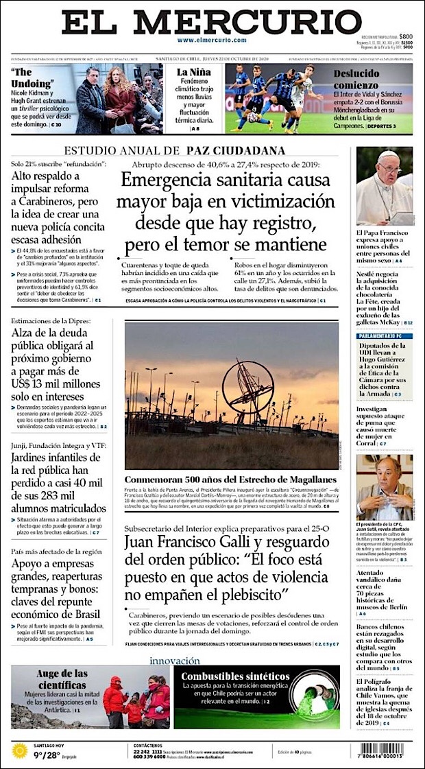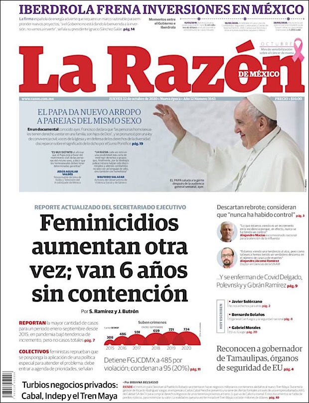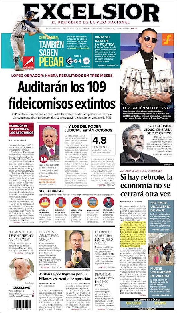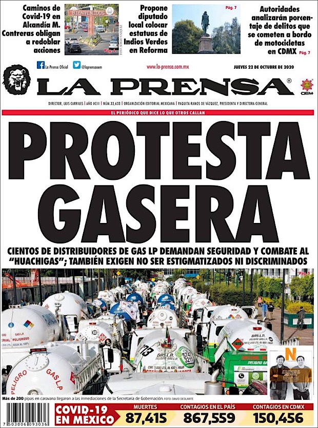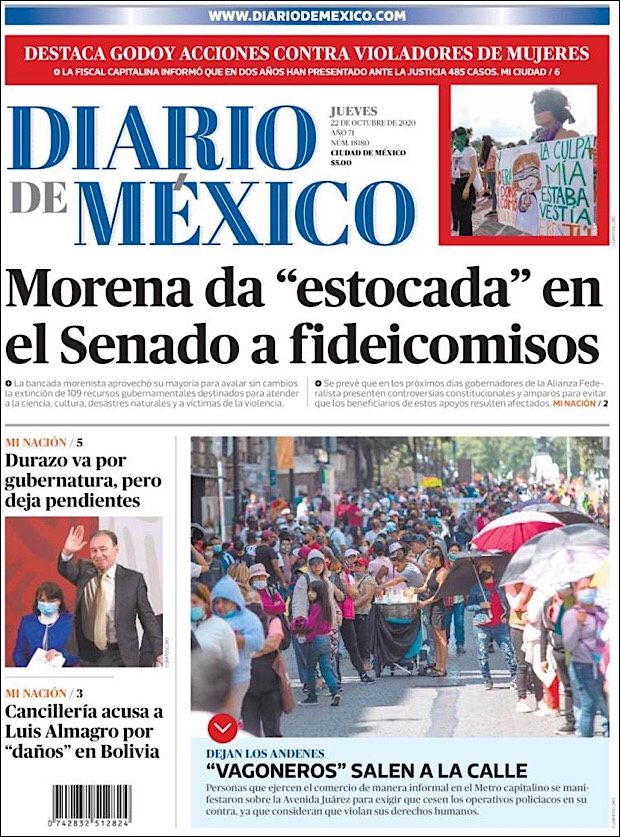 PRIMERAS PLANAS EN MEXICO Y EL MUNDO DEL 22 DE OCTUBRE DE 2020