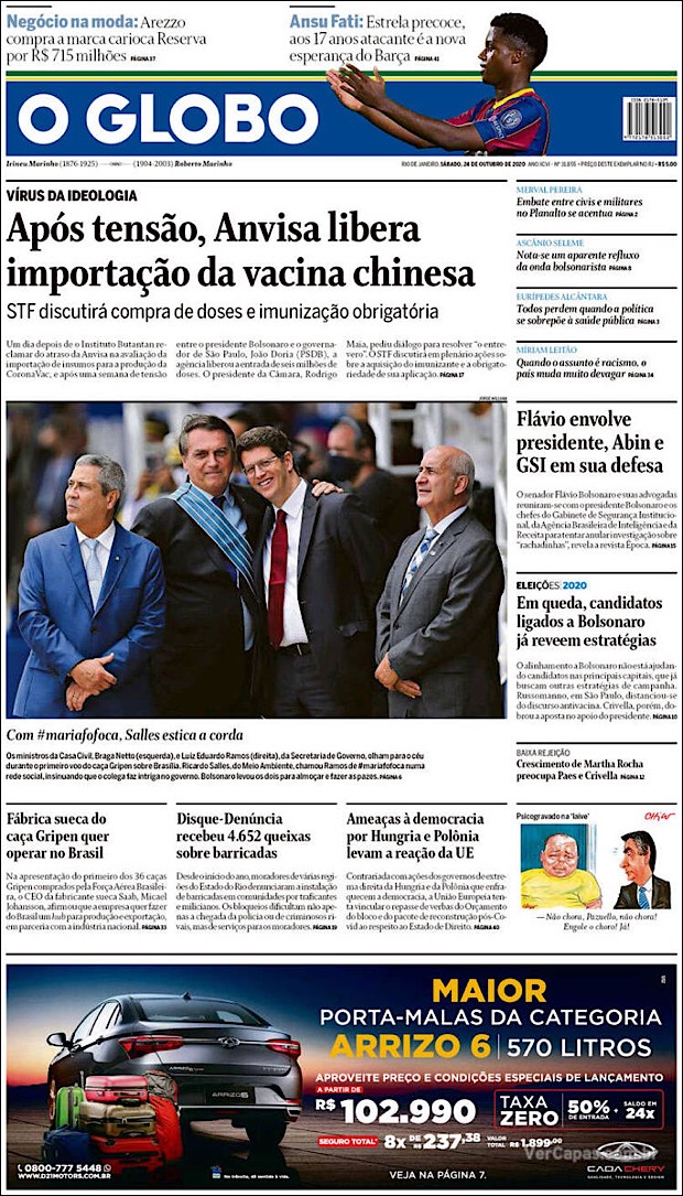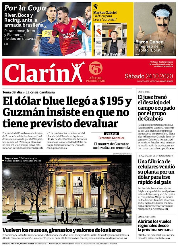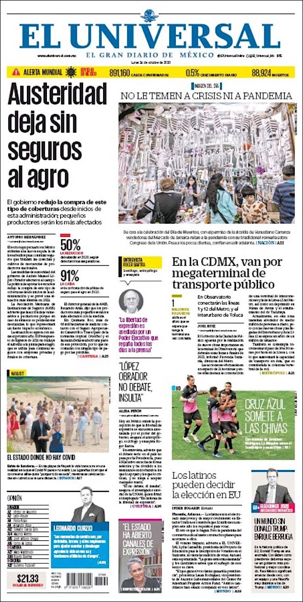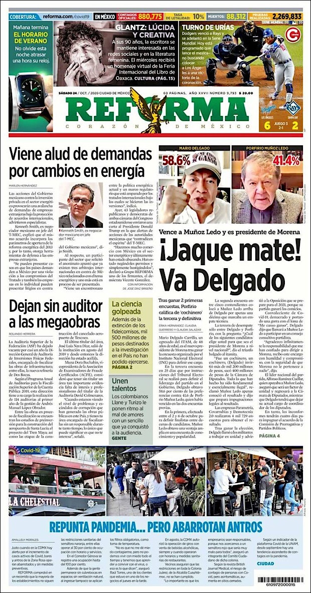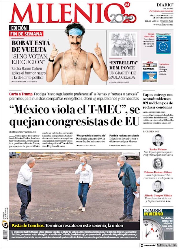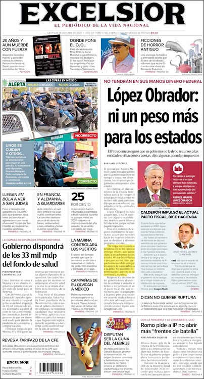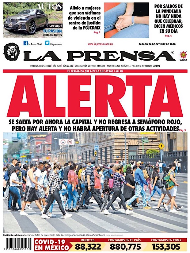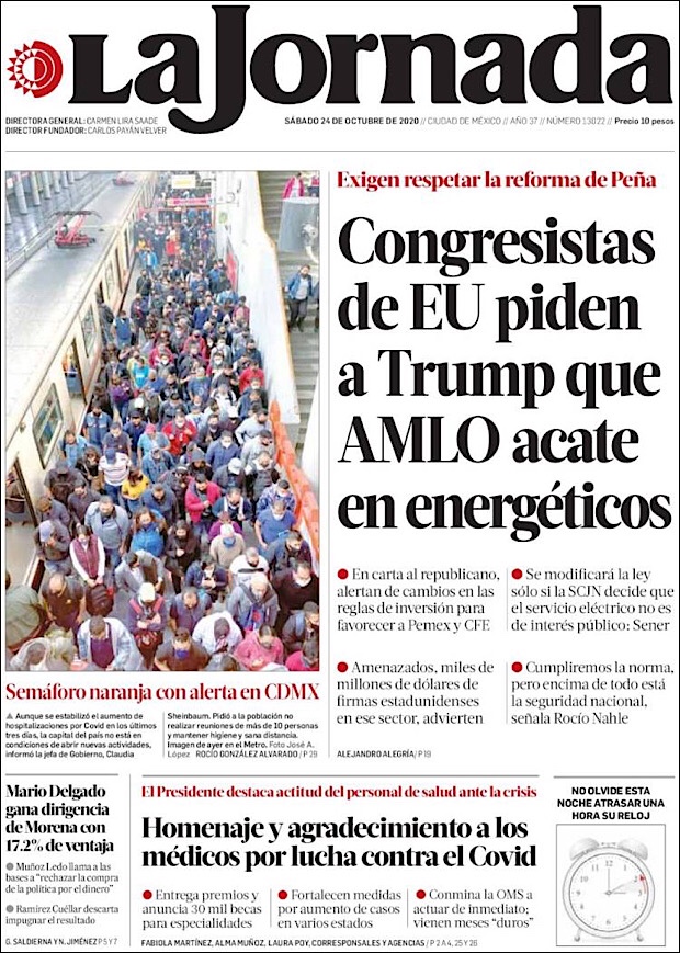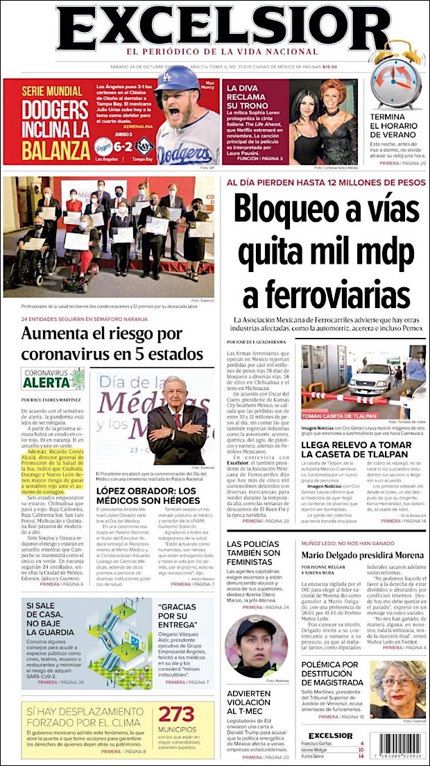 PRIMERAS PLANAS EN MEXICO Y EL MUNDO DEL 24 DE OCTUBRE DE 2020