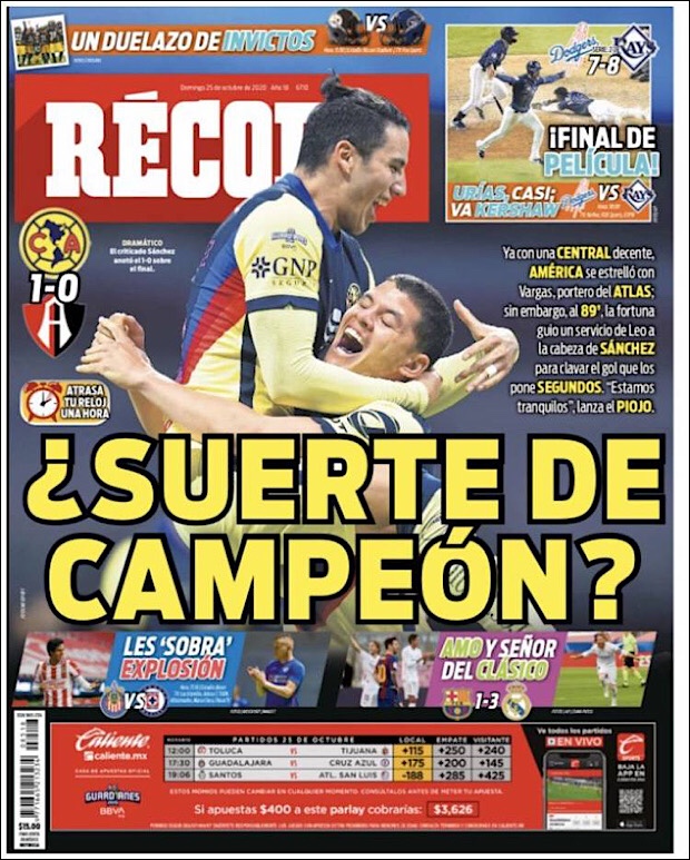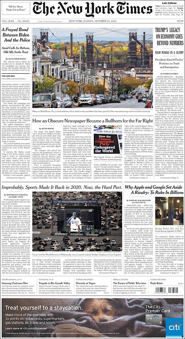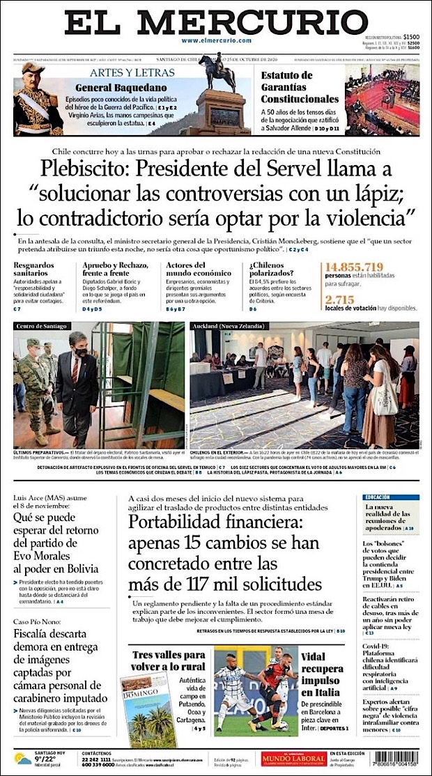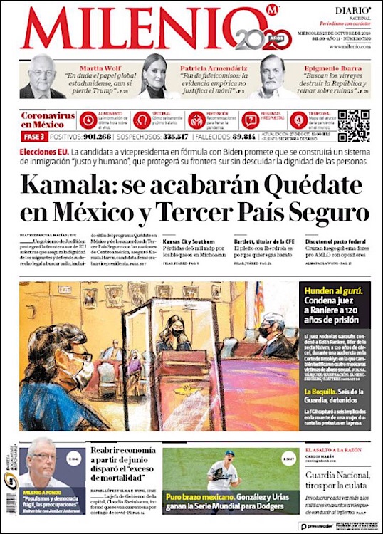 PRIMERAS PLANAS EN MEXICO Y EL MUNDO DEL 25 DE OCTUBRE DE 2020