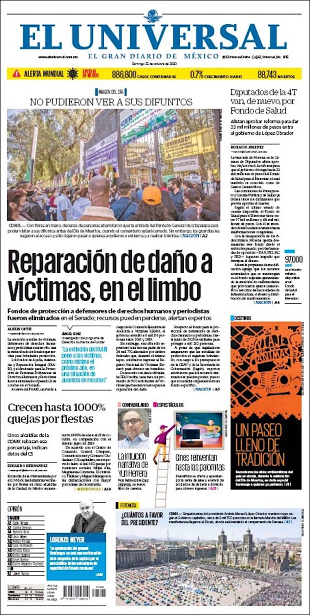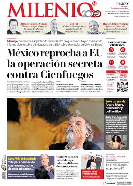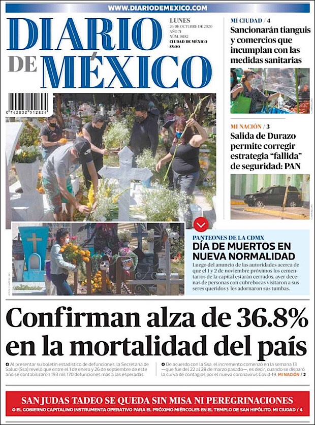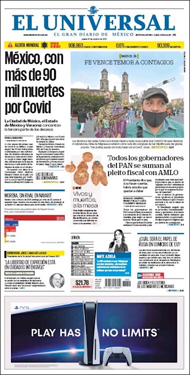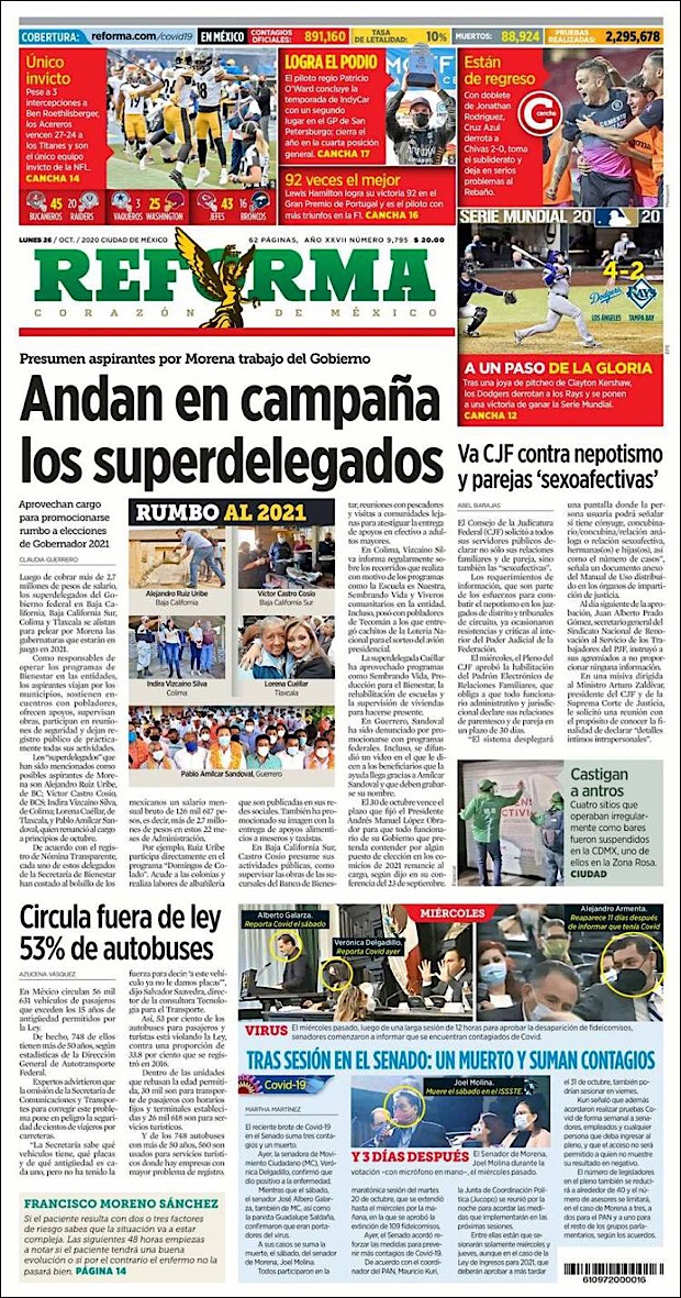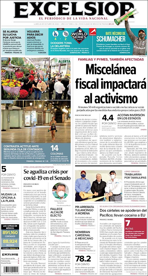 PRIMERAS PLANAS EN MEXICO Y EL MUNDO DEL 26 DE OCTUBRE DE 2020