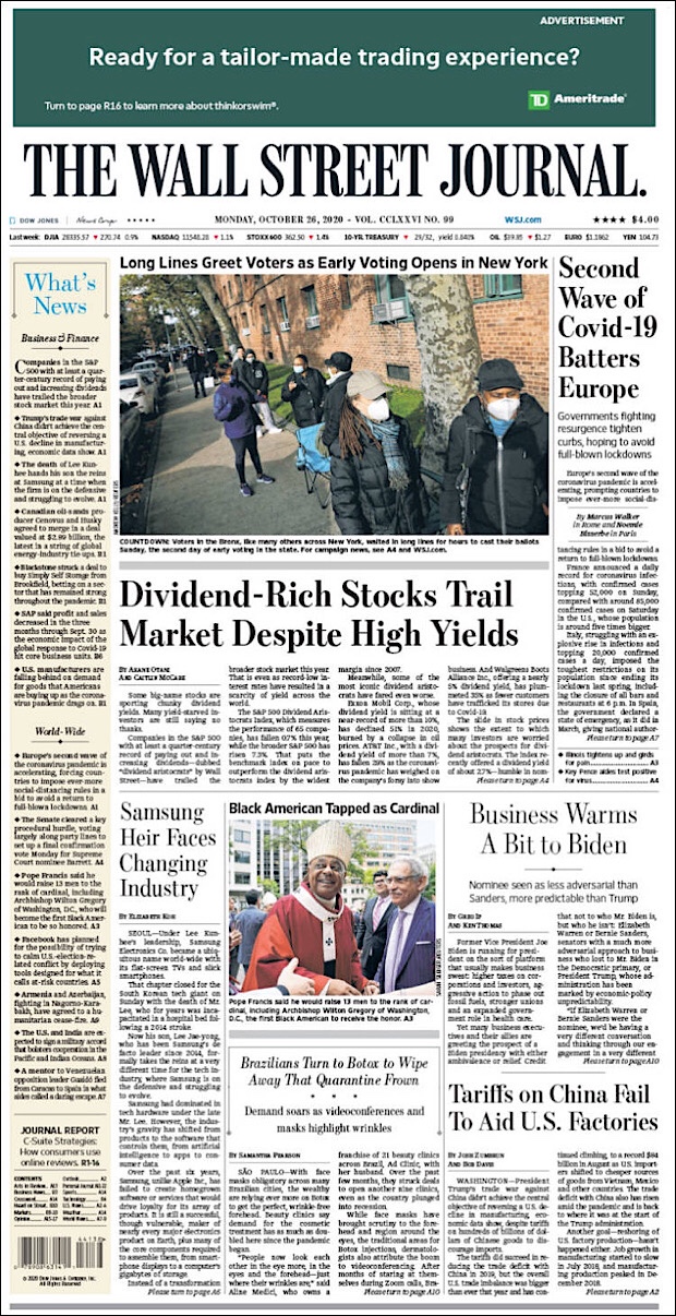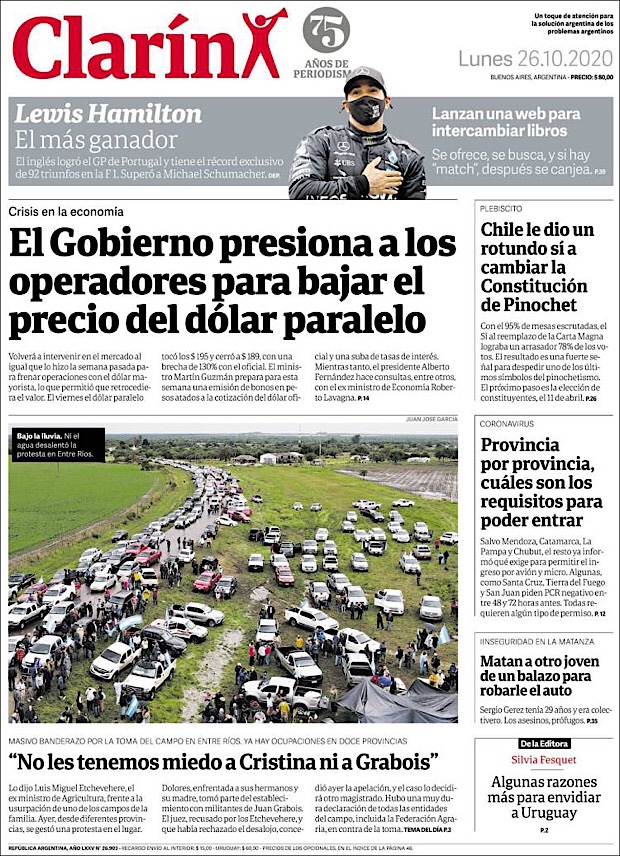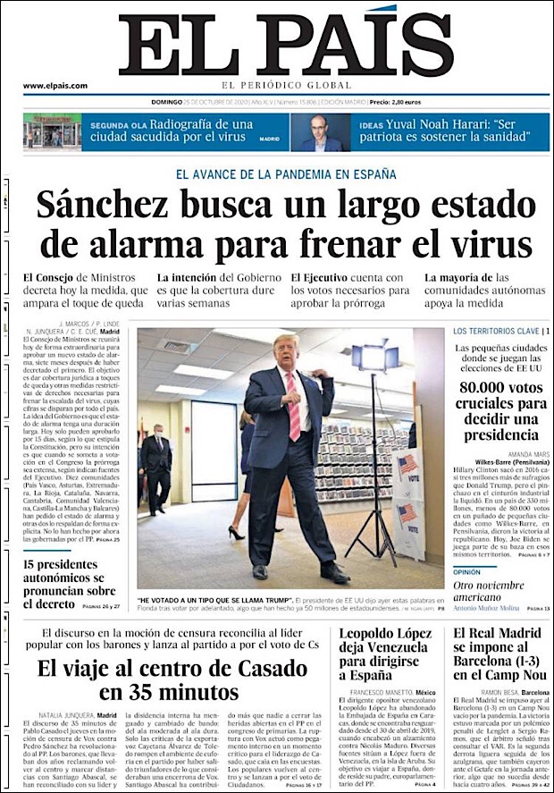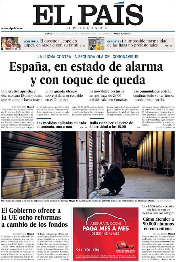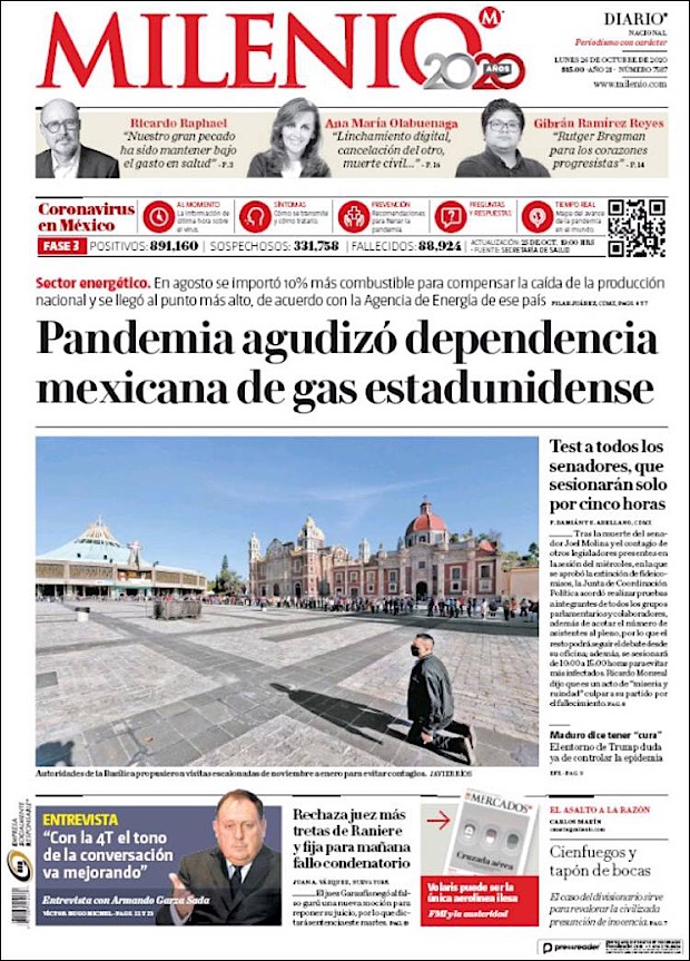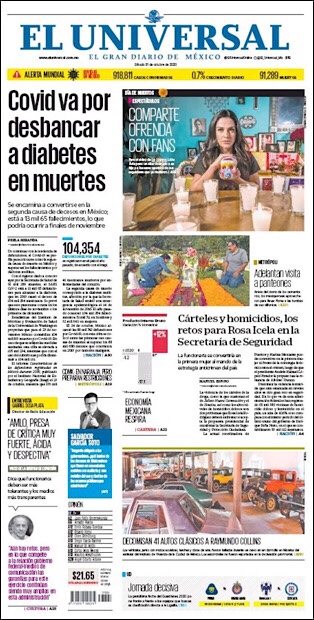 PRIMERAS PLANAS EN MEXICO Y EL MUNDO DEL 26 DE OCTUBRE DE 2020