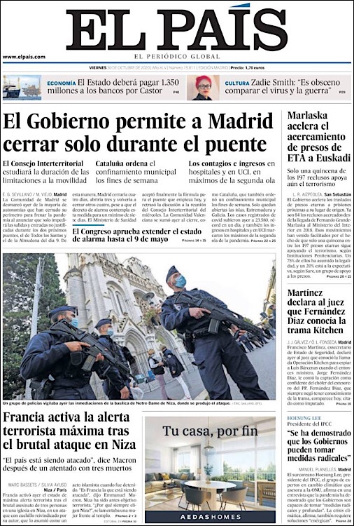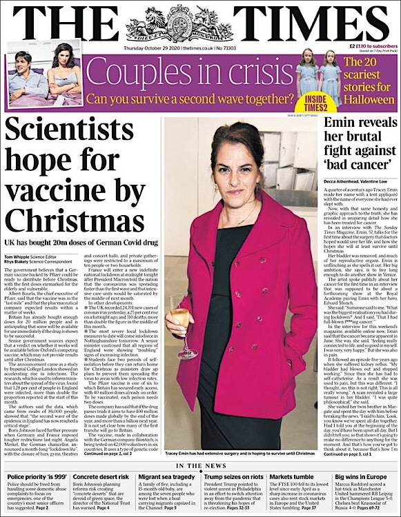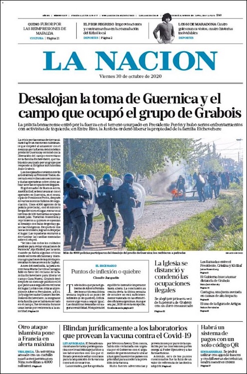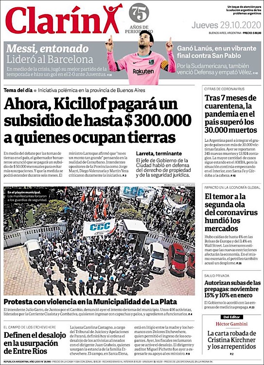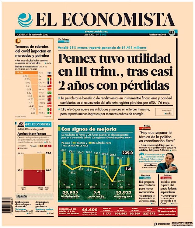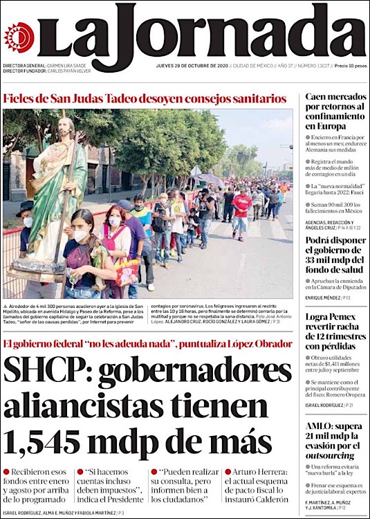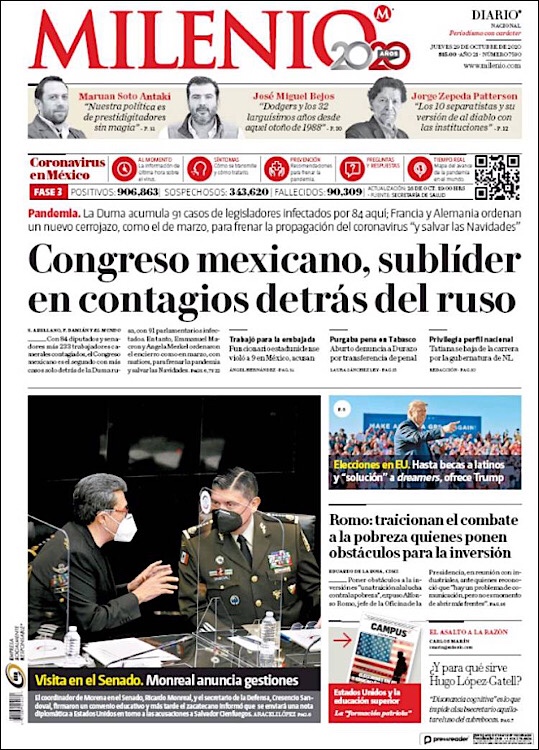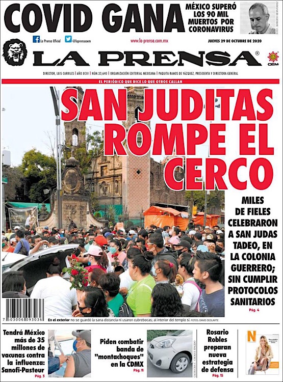 PRIMERAS PLANAS EN MEXICO Y EL MUNDO DEL 29 DE OCTUBRE DE 2020