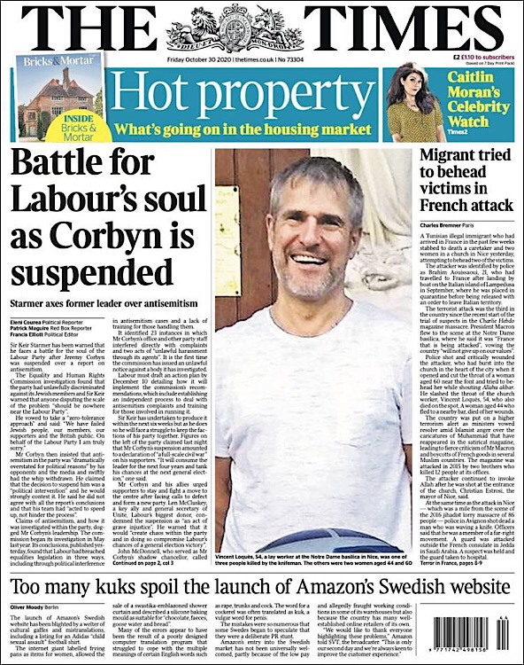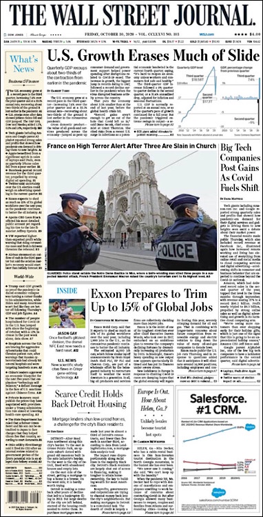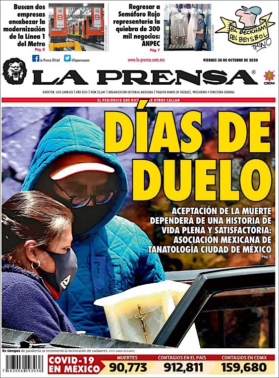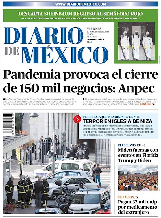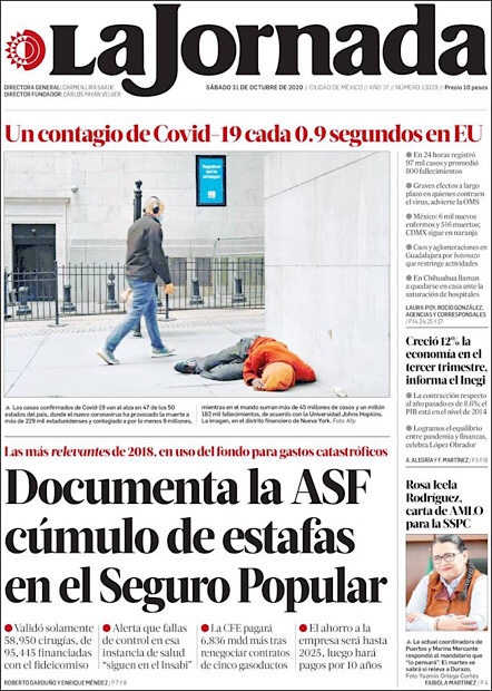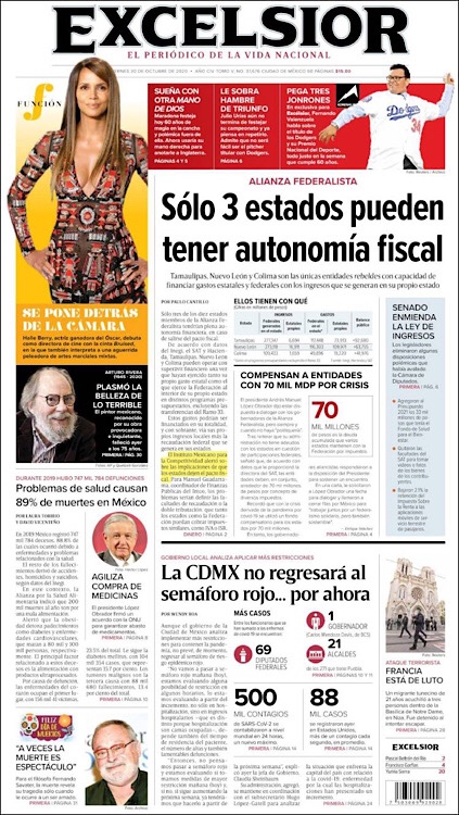 PRIMERAS PLANAS EN MEXICO Y EL MUNDO DEL 30 DE OCTUBRE DE 2020