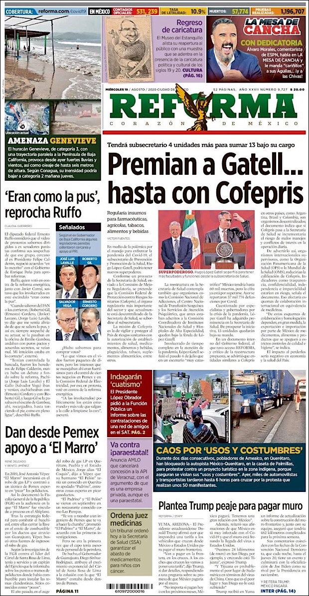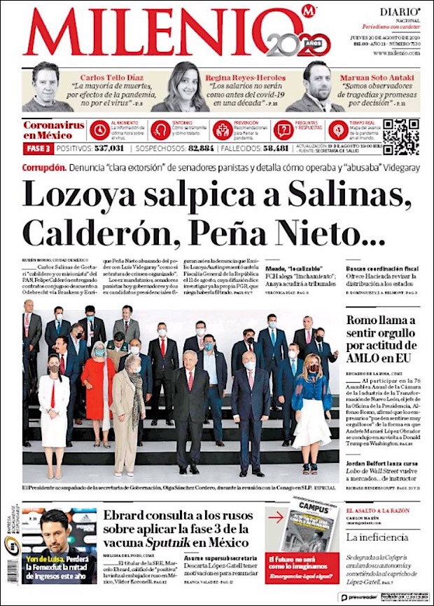 El Subsecretario de Prevención y Promoción de la Salud, Hugo López-Gatell, informó desde el Centro de Convenciones del estado de San Luis Potosí que este 19 de agosto, día 81 de la Nueva Normalidad, en México las defunciones confirmadas a causa del coronavirus (COVID-19) suman 58,481 y que hay 537,031 casos confirmados acumulados.
