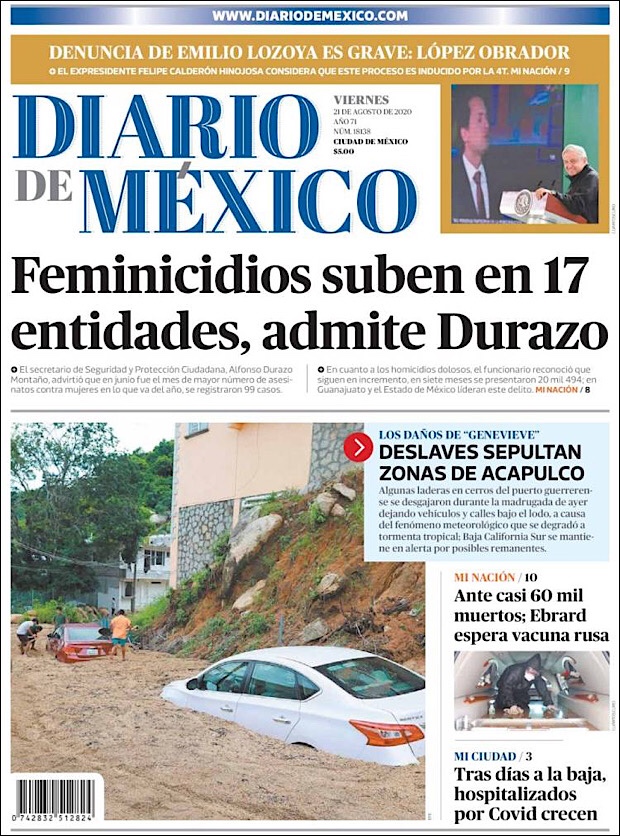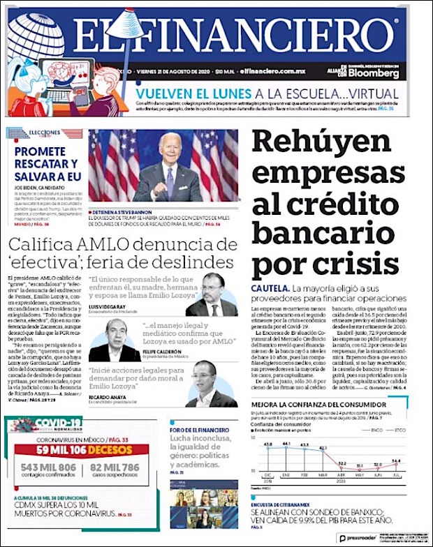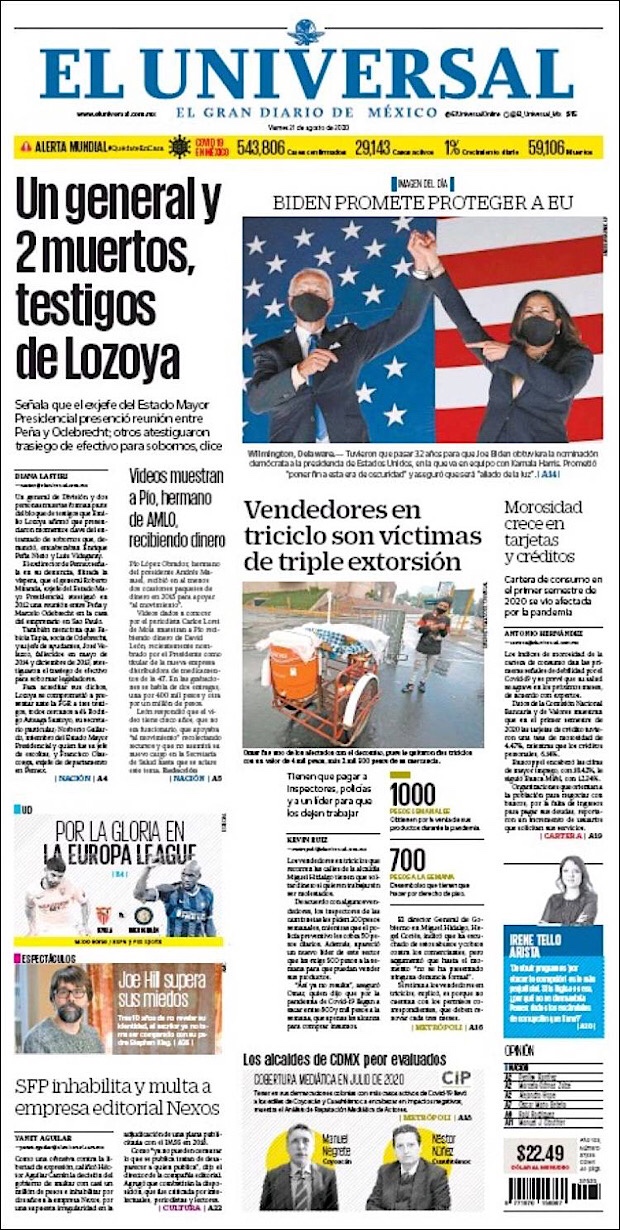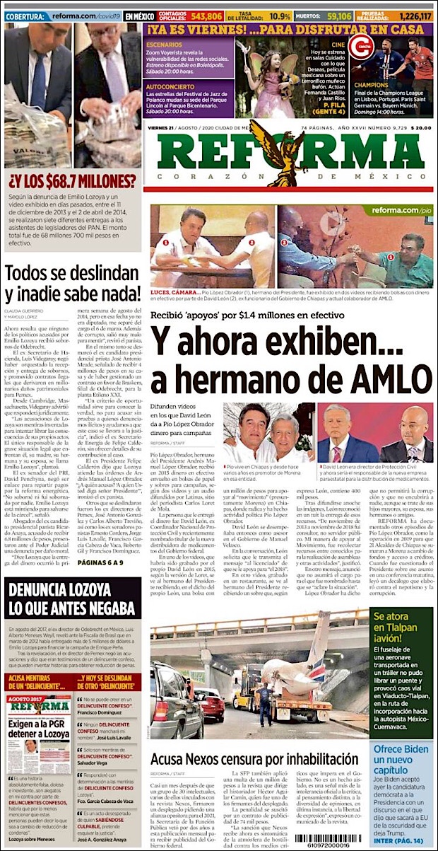 José Luis Alomía Zegarra, director general de Epidemiología, informó desde Palacio Nacional que este 20 de agosto, día 82 de la Nueva Normalidad, en México las defunciones confirmadas a causa del coronavirus (COVID-19) suman 59,106 y que hay 543,806 casos confirmados acumulados.