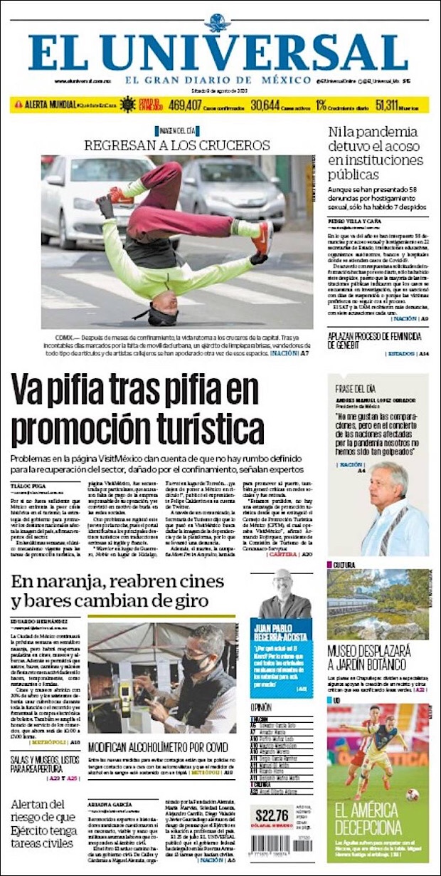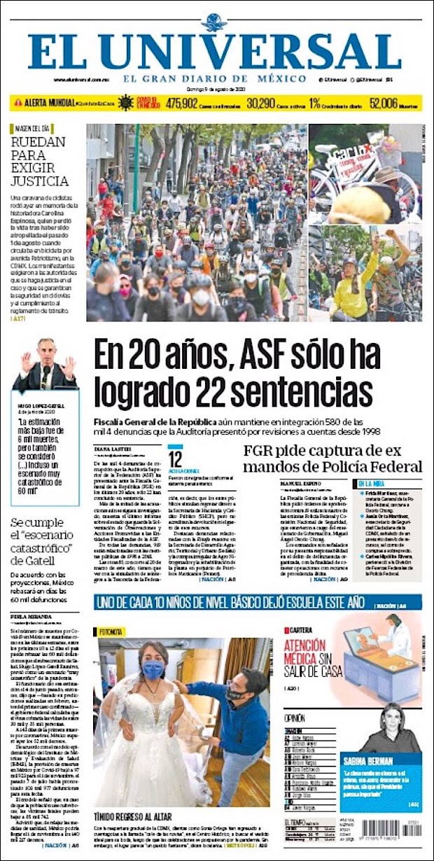 Este 13 de agosto, día 75 de la Nueva Normalidad, el director general de Epidemiología, José Luis Alomía Zegarra, informó que México superó el medio millón de contagios acumulados, es decir, un total de 505,751 casos y 55,293 muertes confirmadas por el nuevo coronavirus (COVID-19).