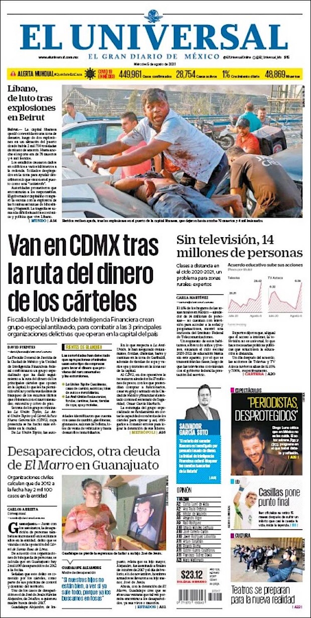 La Secretaría de Salud (SSa) informó que hasta este lunes 3 de agosto se han contabilizado 443,813 casos confirmados acumulados y 48,012 muertes por coronavirus en México.