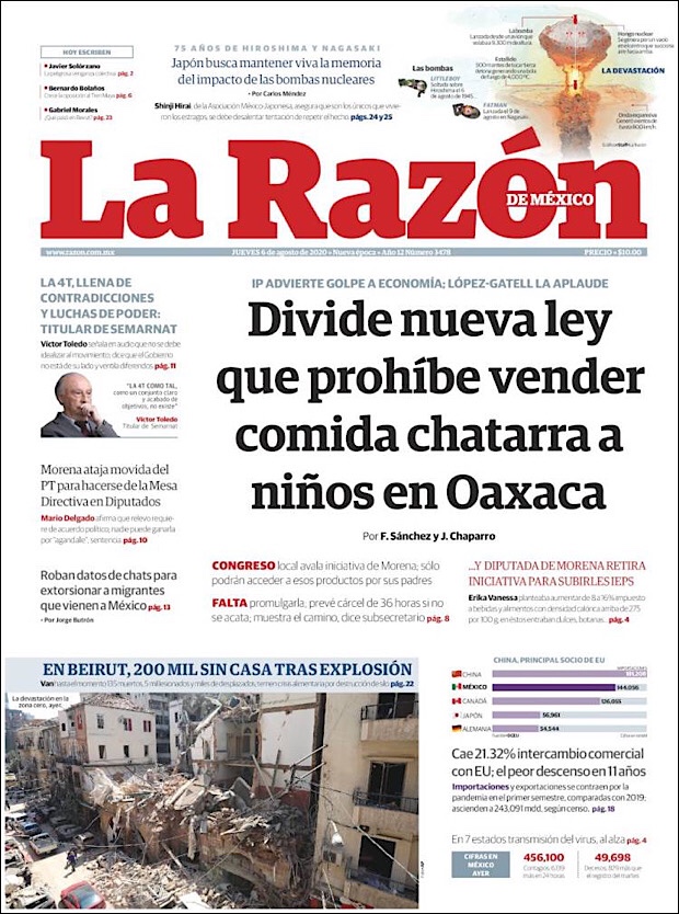 Este día Oaxaca prohibió la venta de alimentos chatarra a menores de edad, en relación a que las personas más vulnerables ante el COVID-19 son quienes padecen problemas cardíacos y de obesidad