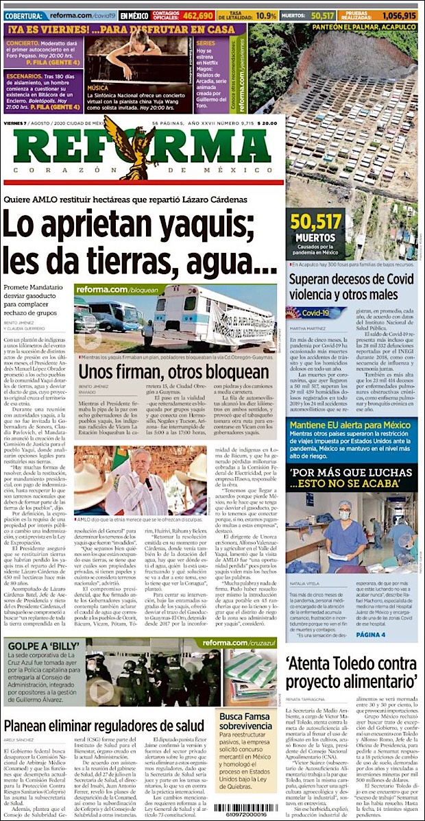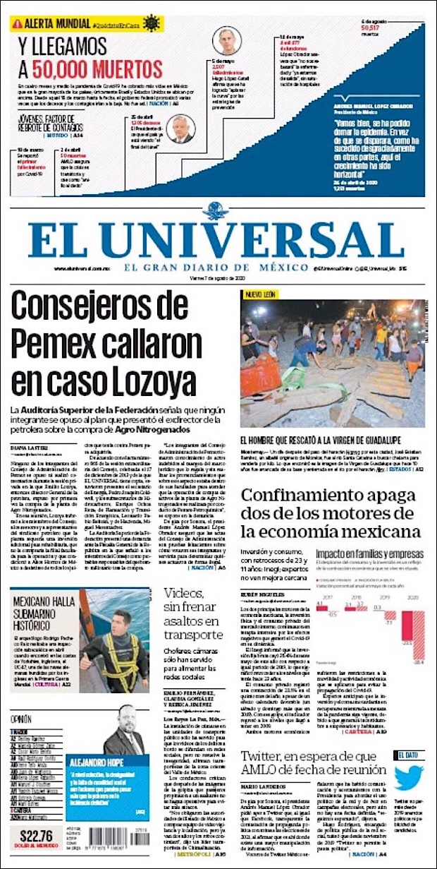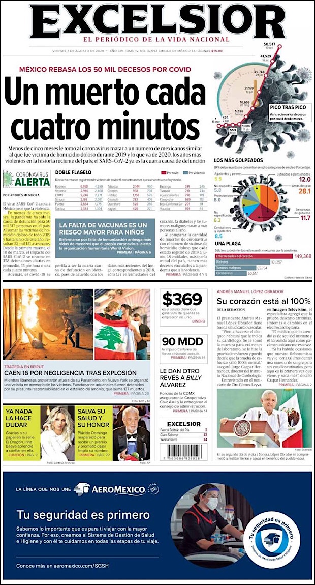Cabe señalar que al superar los 50,000 muertos por coronavirus la Confederación Patronal de la República Mexicana (Coparmex), emitió un comunicado lamentando el gran vacío que estos han dejado en el país y en muchas familias mexicanas, señalando que posiblemente esta cifra de fallecimientos pudo ser distinta de haberse tomado otras medidas sanitarias.