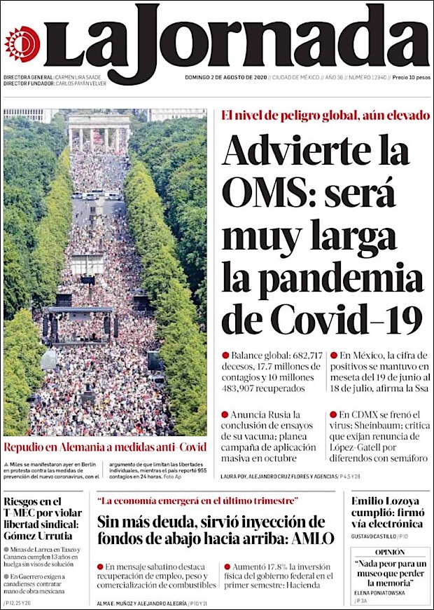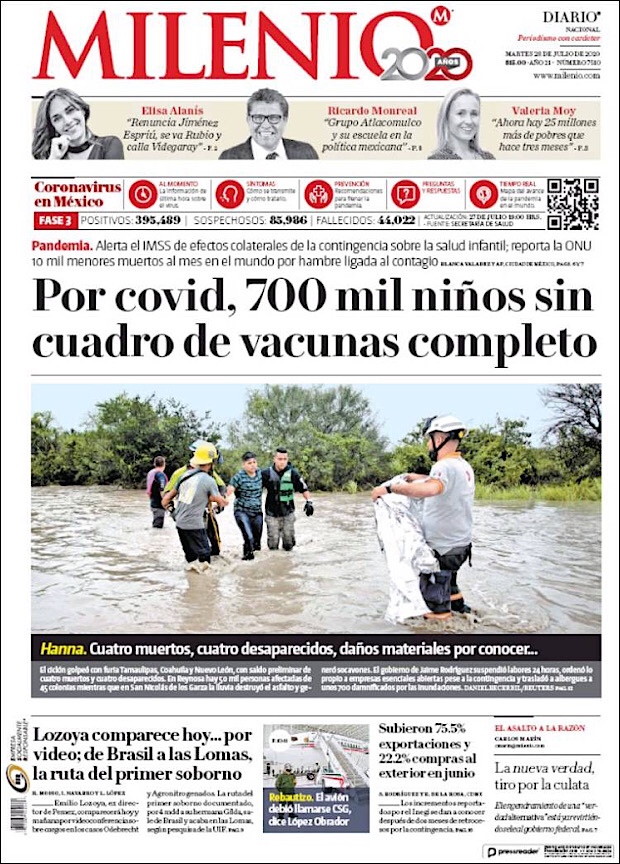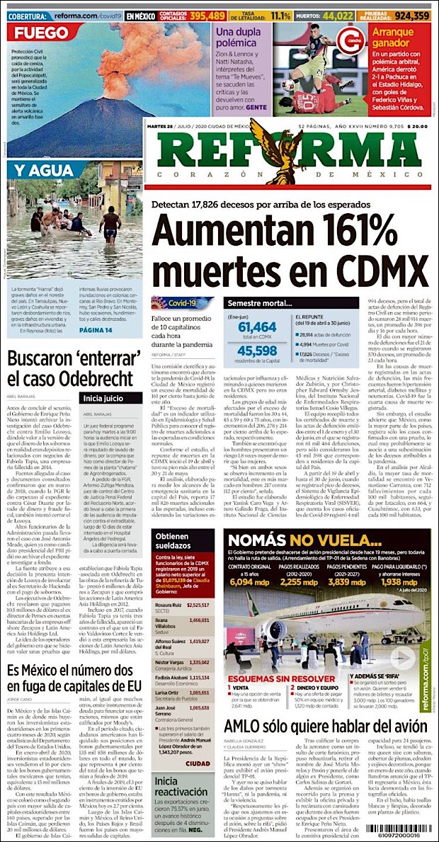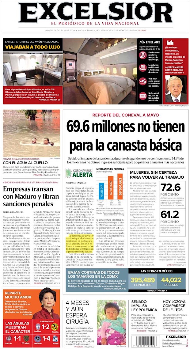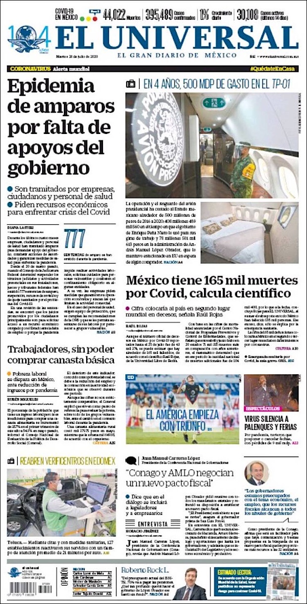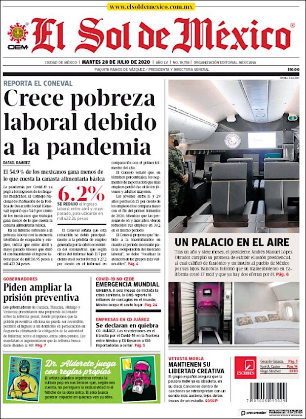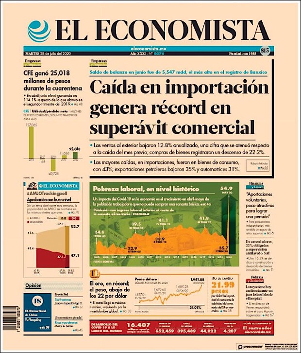PRIMERAS PLANAS EN MEXICO Y EL MUNDO DEL 28 DE JULIO DE 2020