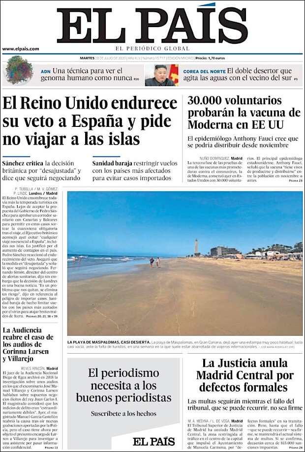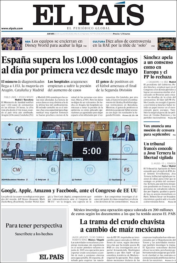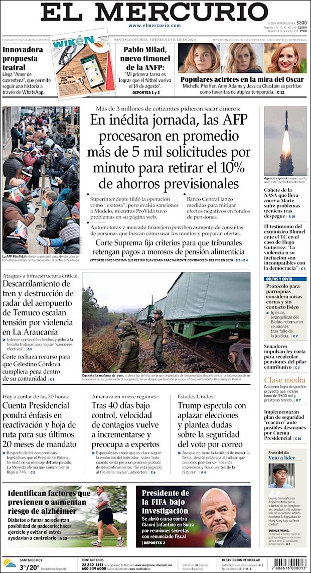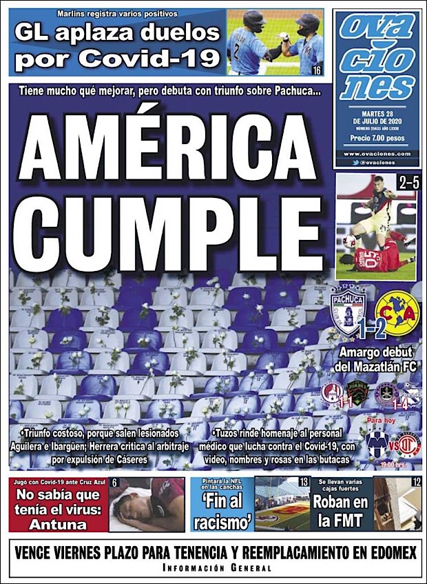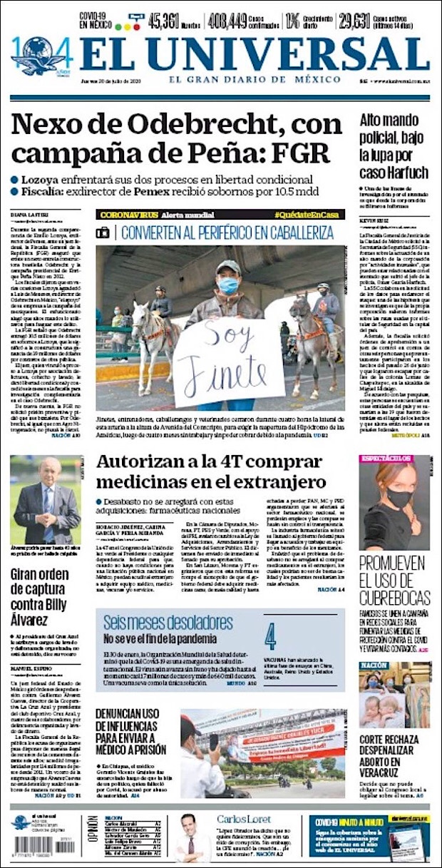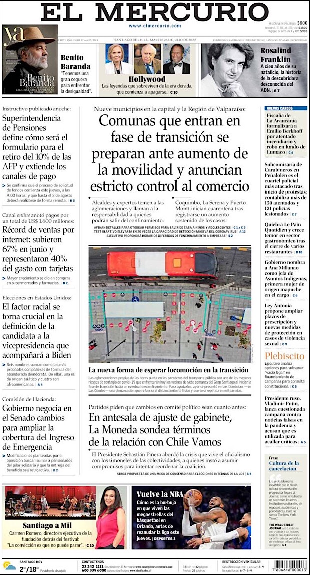 PRIMERAS PLANAS EN MEXICO Y EL MUNDO DEL 28 DE JULIO DE 2020