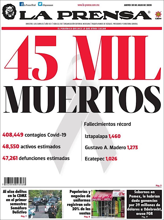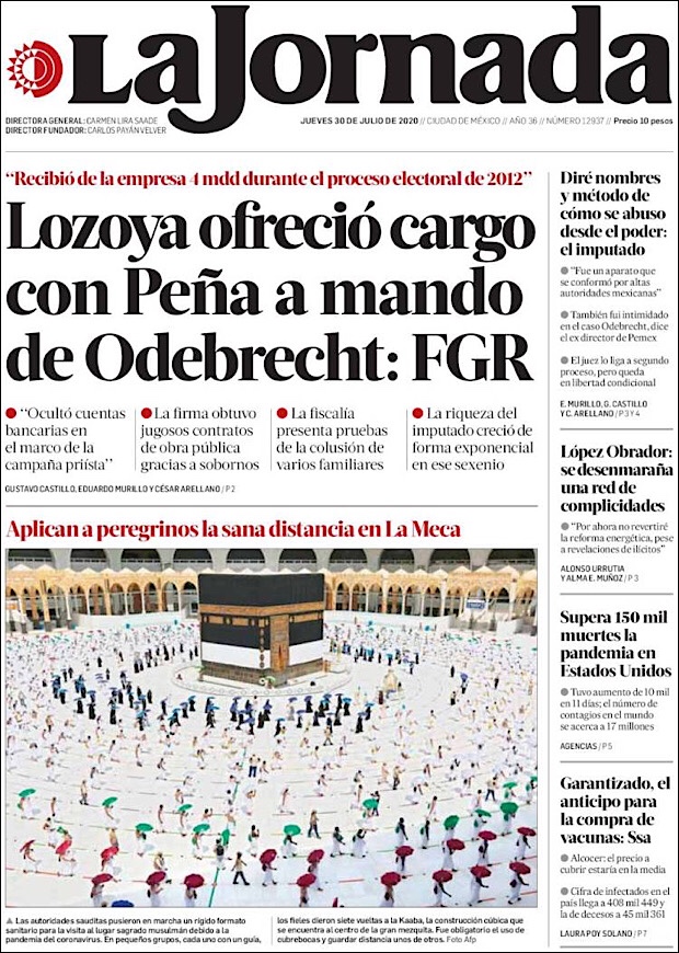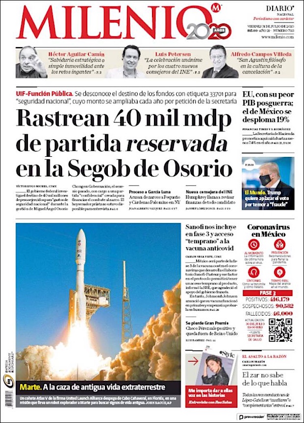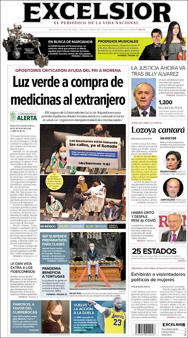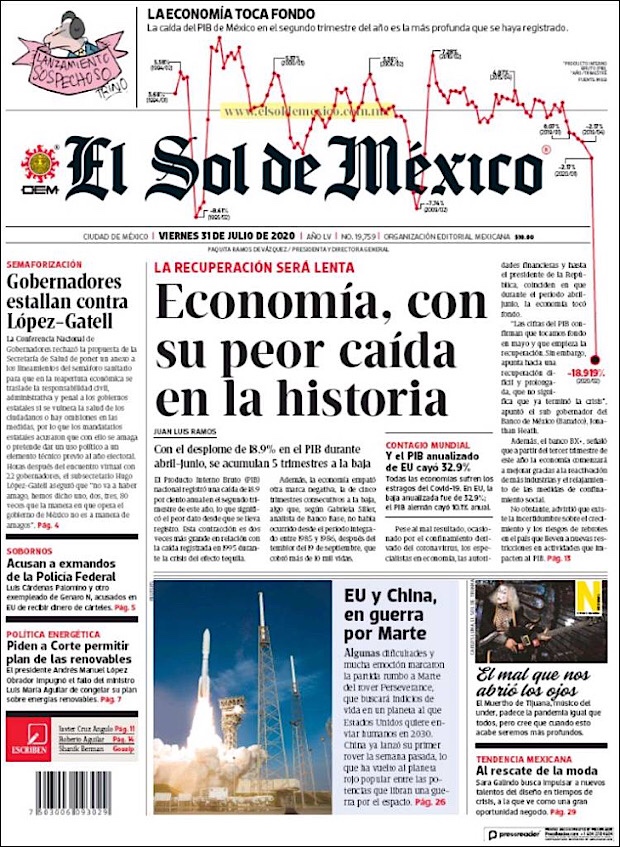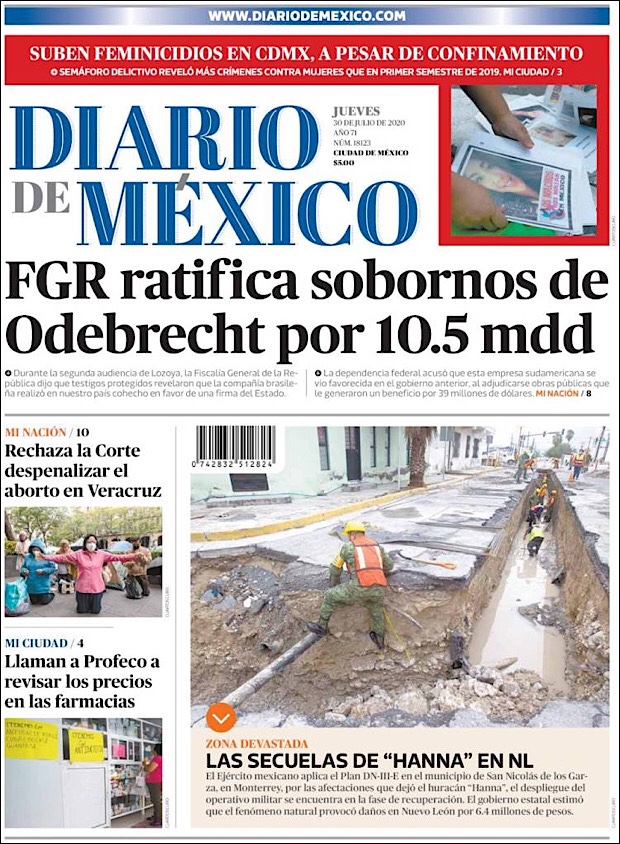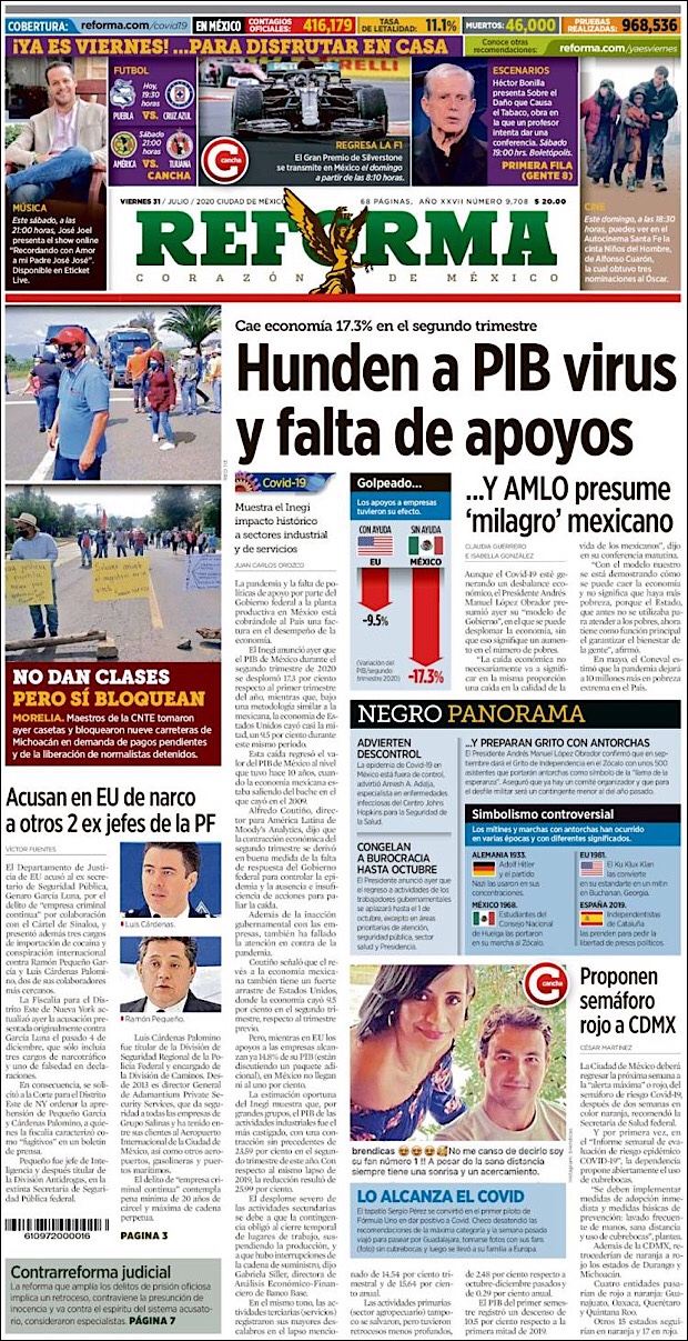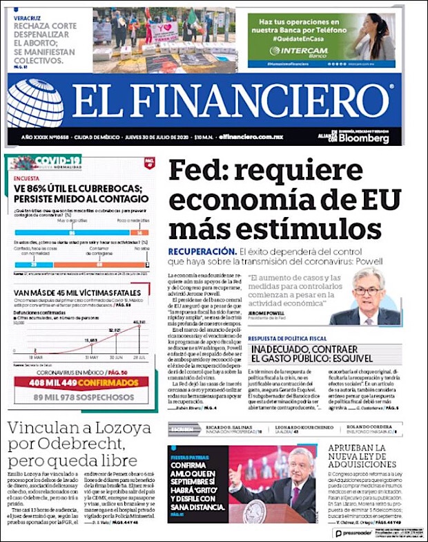 PRIMERAS PLANAS EN MEXICO Y EL MUNDO DEL 30 DE JULIO DE 2020