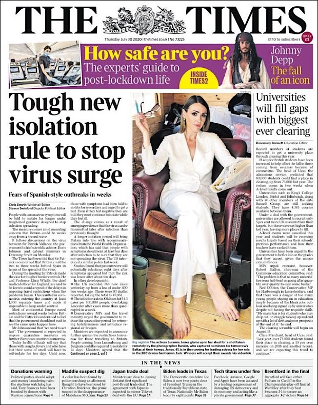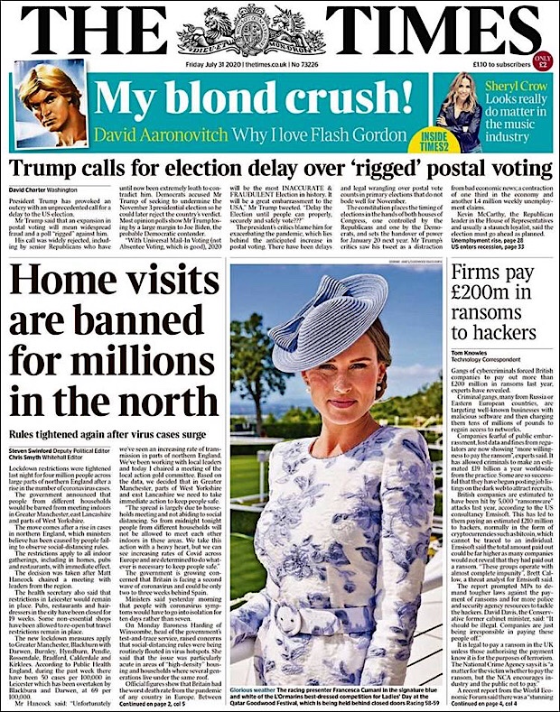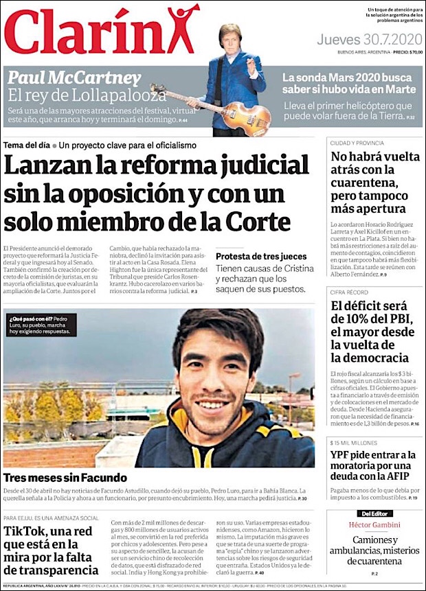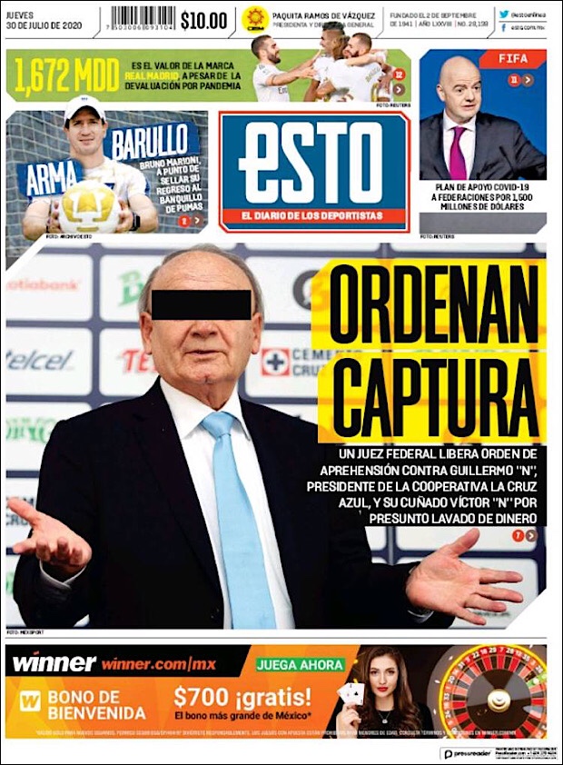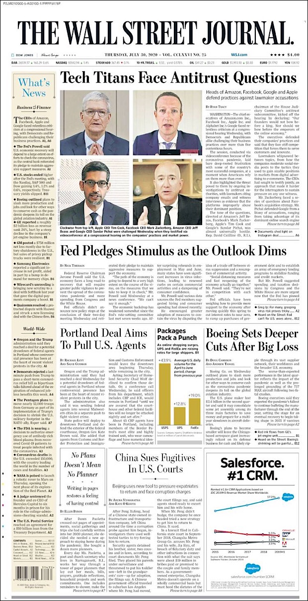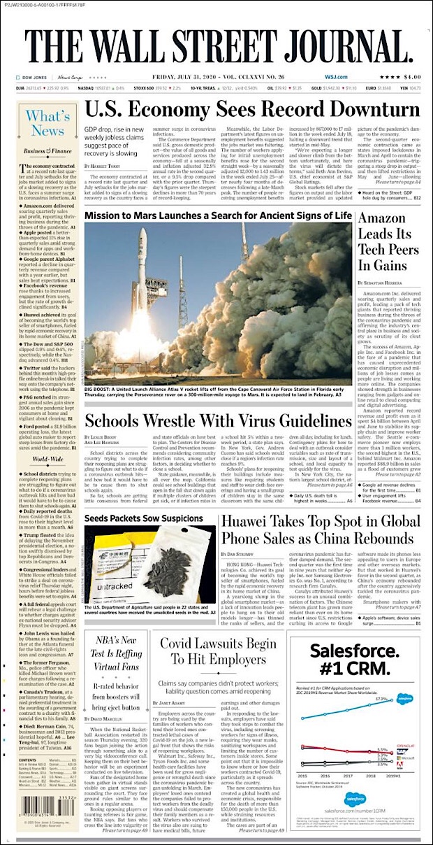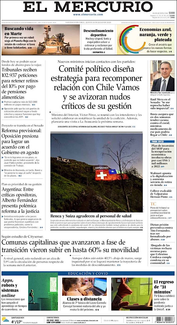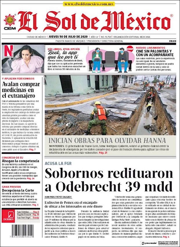 PRIMERAS PLANAS EN MEXICO Y EL MUNDO DEL 30 DE JULIO DE 2020