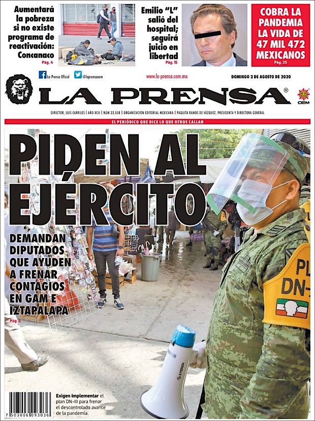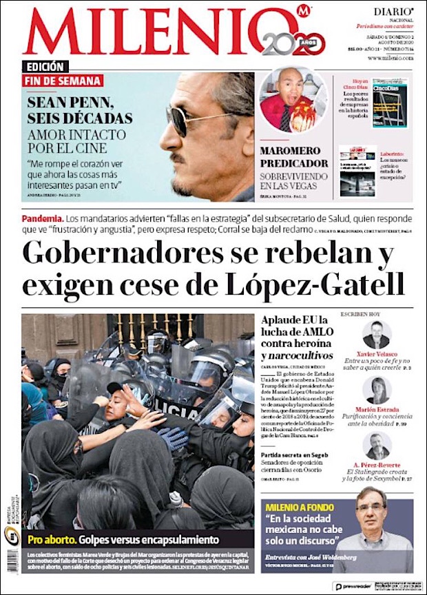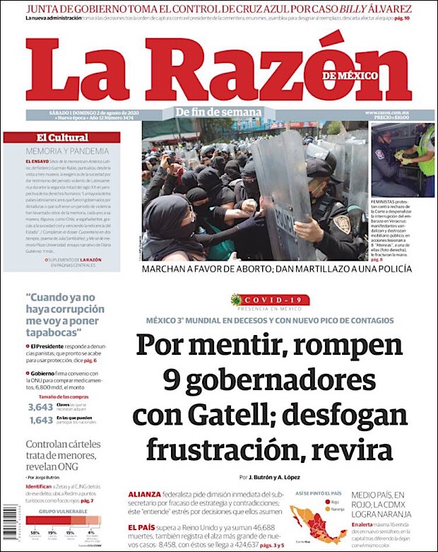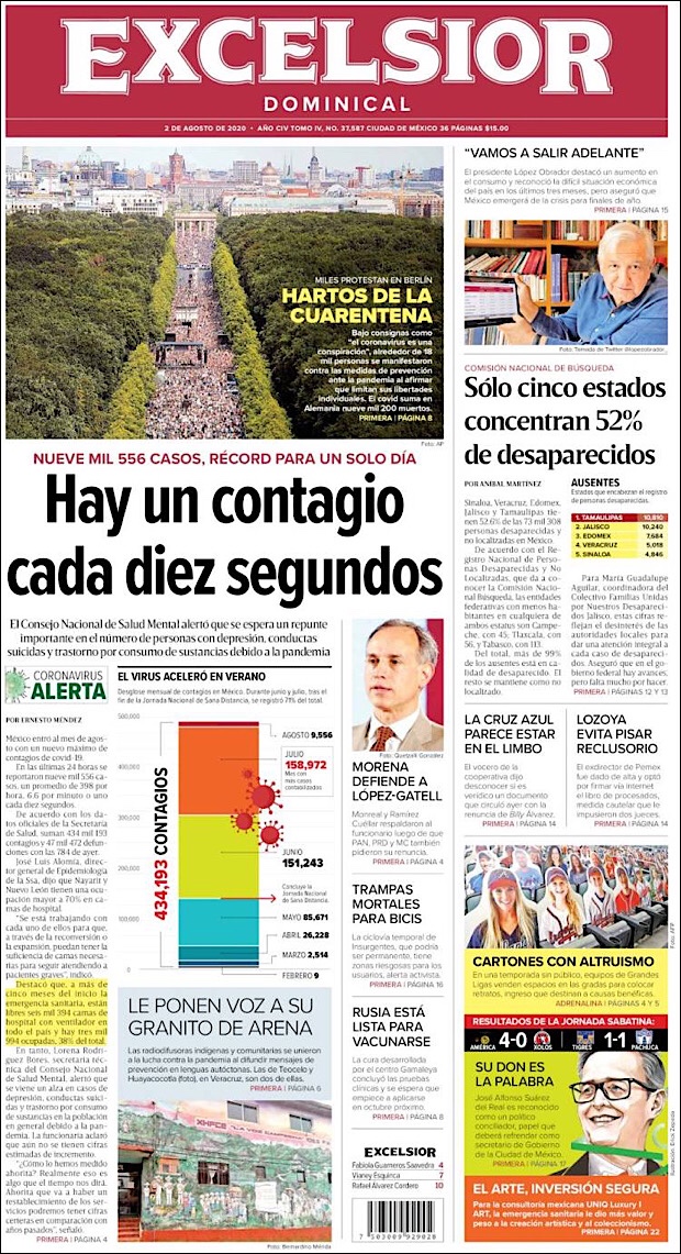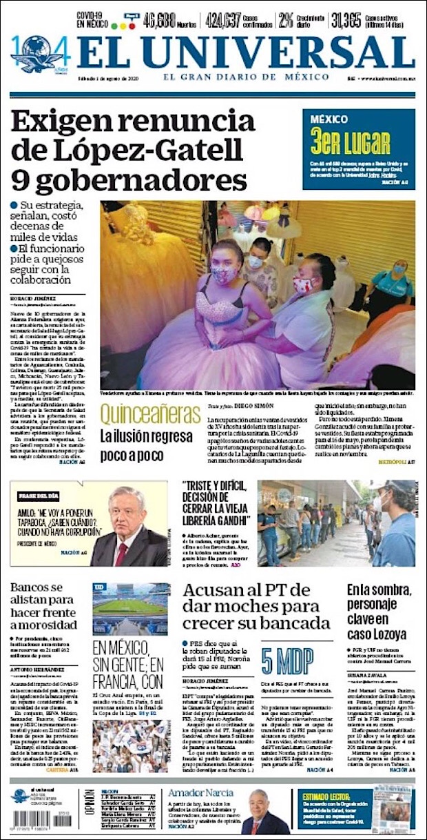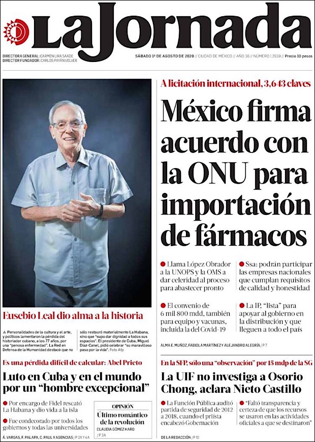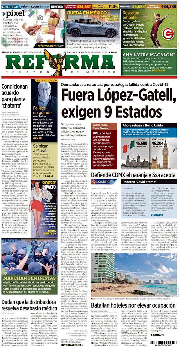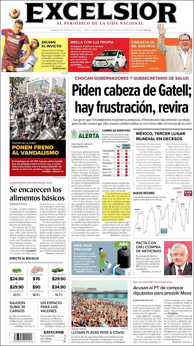 PRIMERAS PLANAS EN MEXICO Y EL MUNDO DEL 01 DE AGOSTO DE 2020
