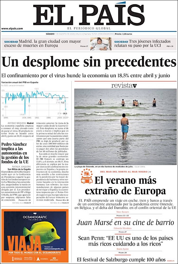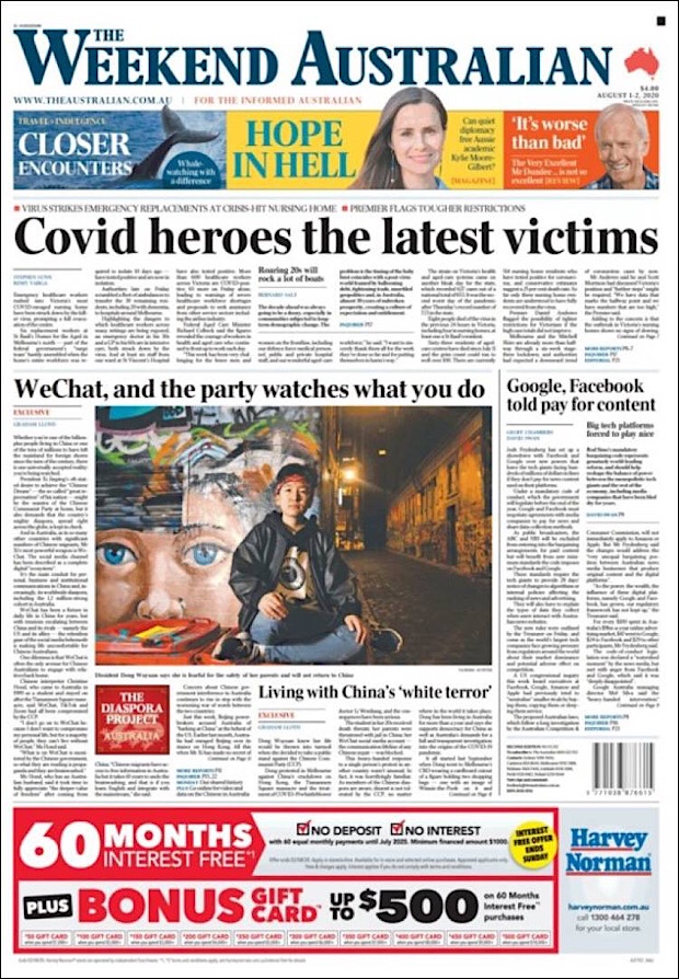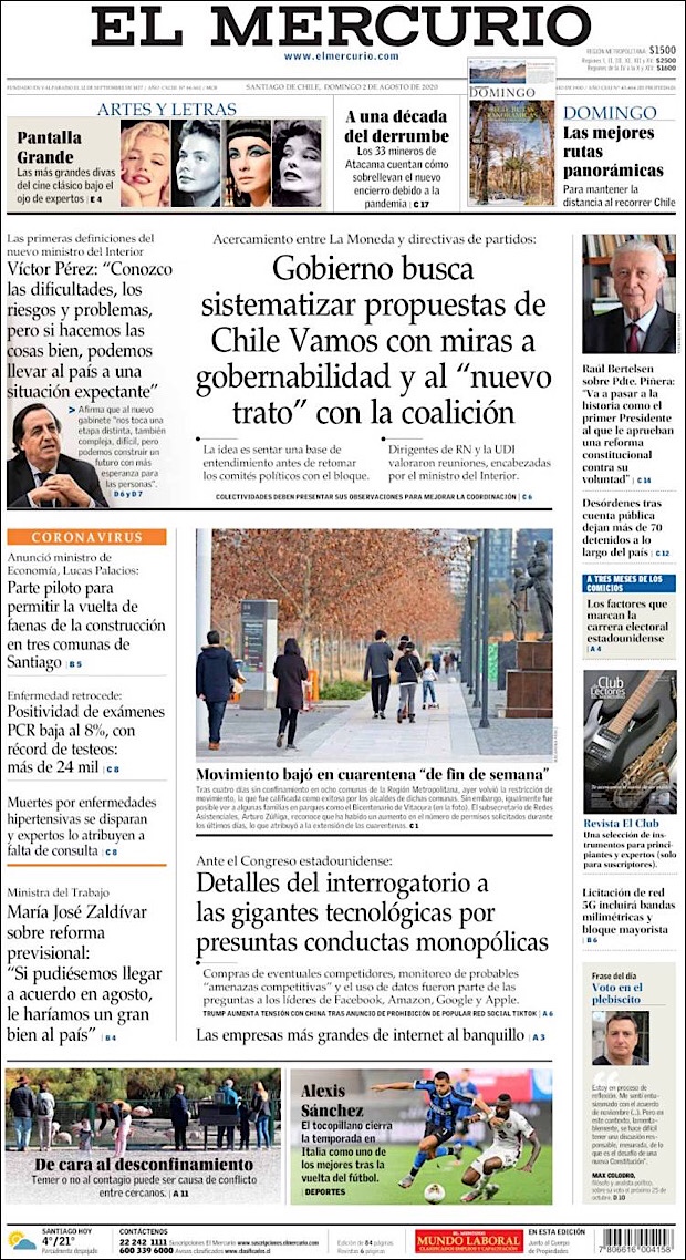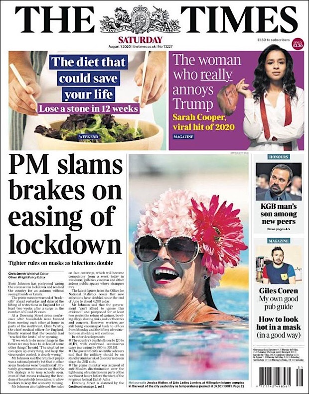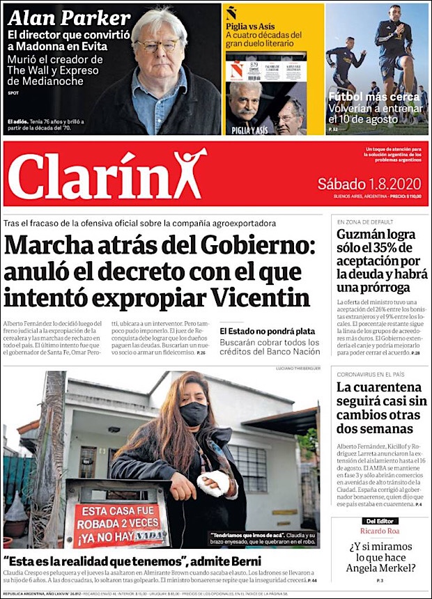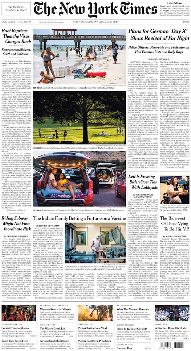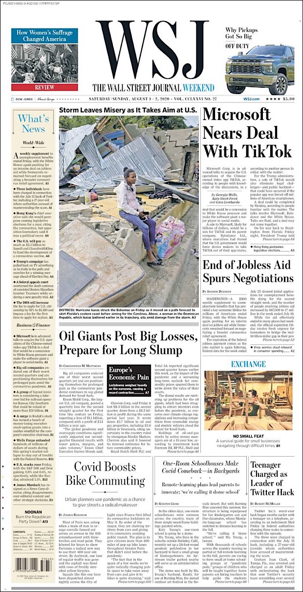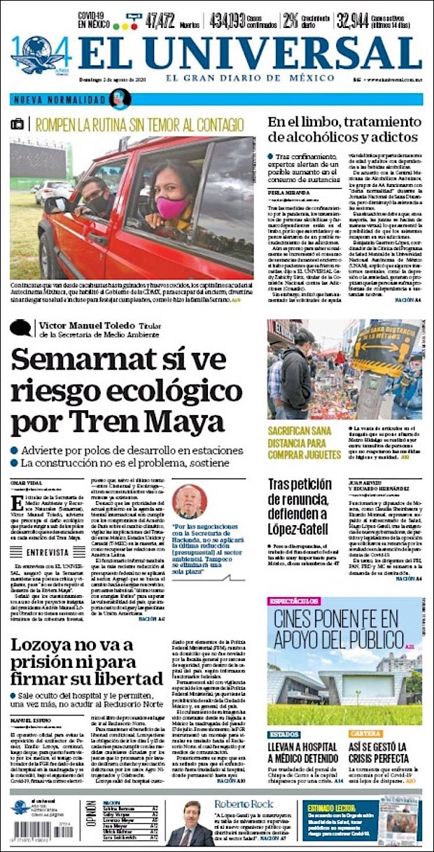 PRIMERAS PLANAS EN MEXICO Y EL MUNDO DEL 01 DE AGOSTO DE 2020