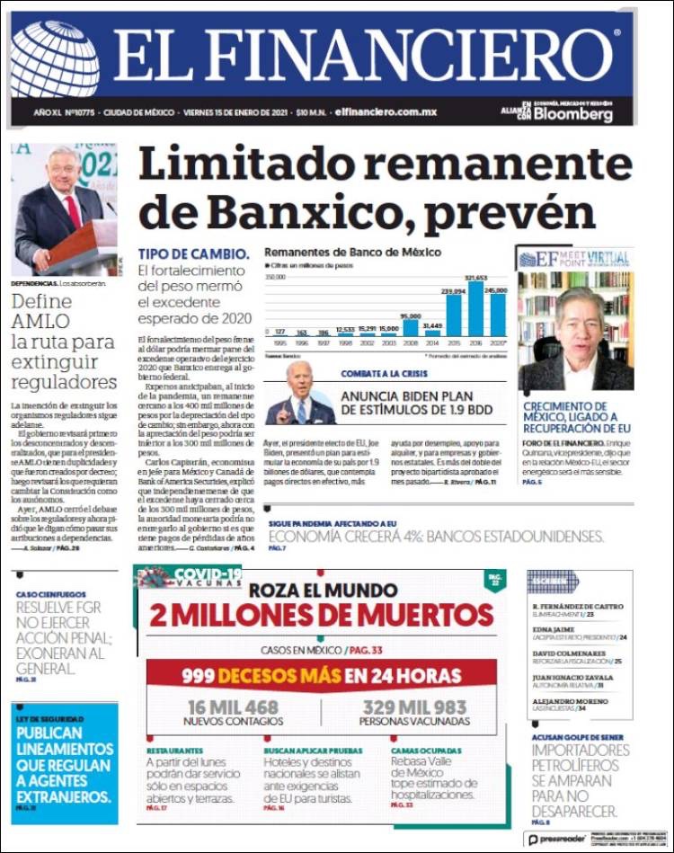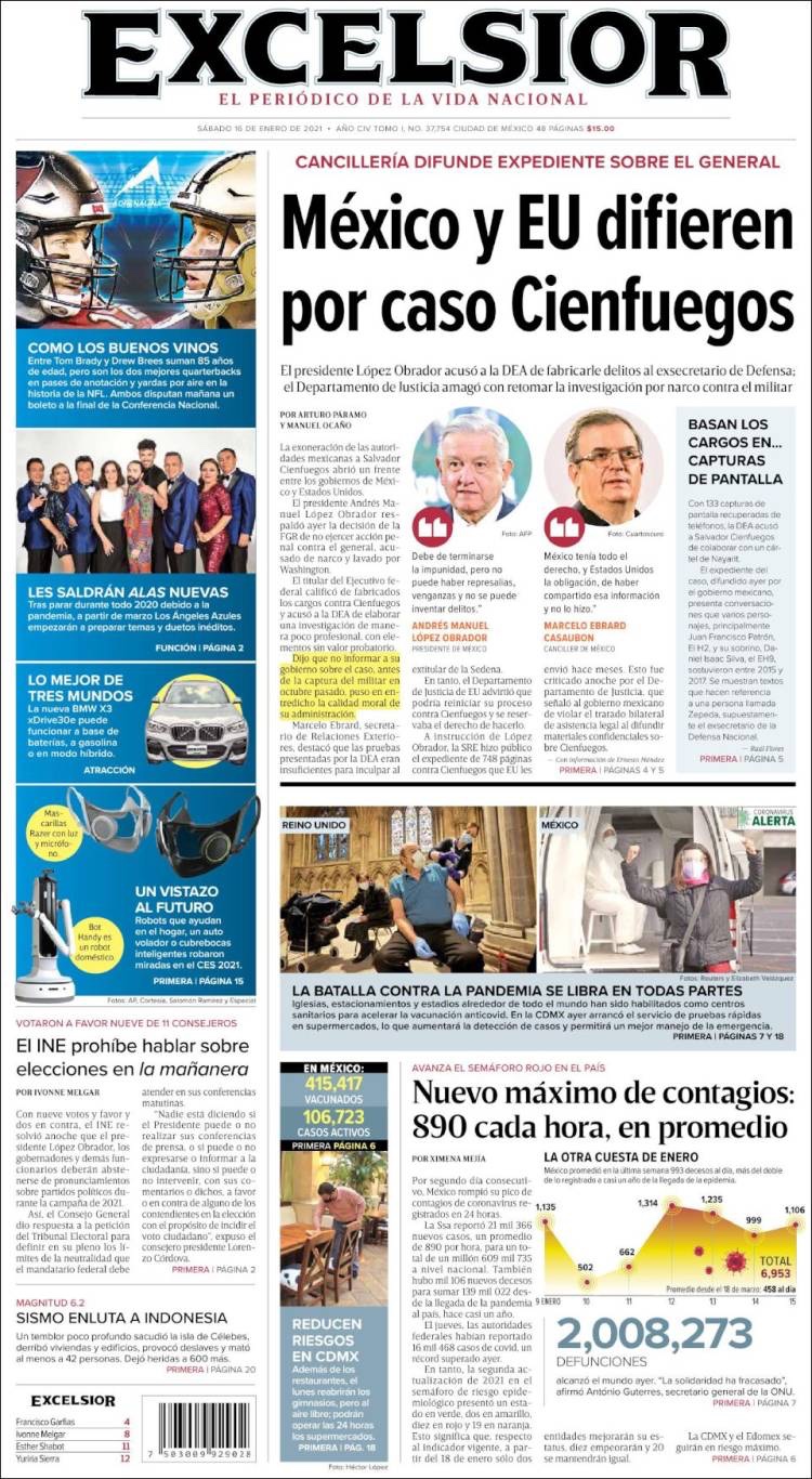PRIMERAS PLANAS EN MEXICO Y EL MUNDO DEL 16 DE ENERO DE 2021