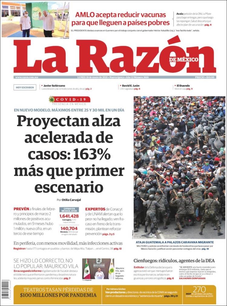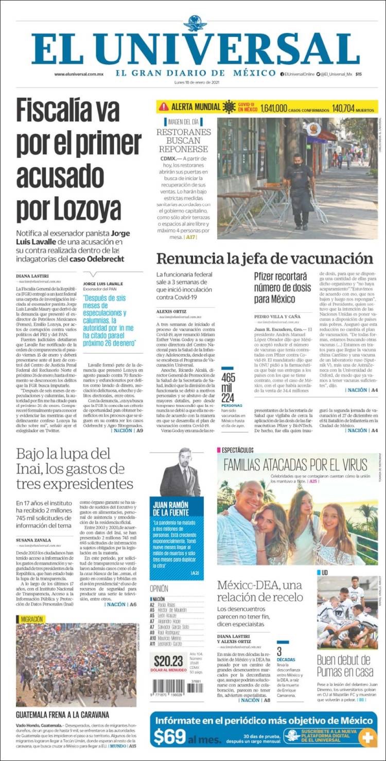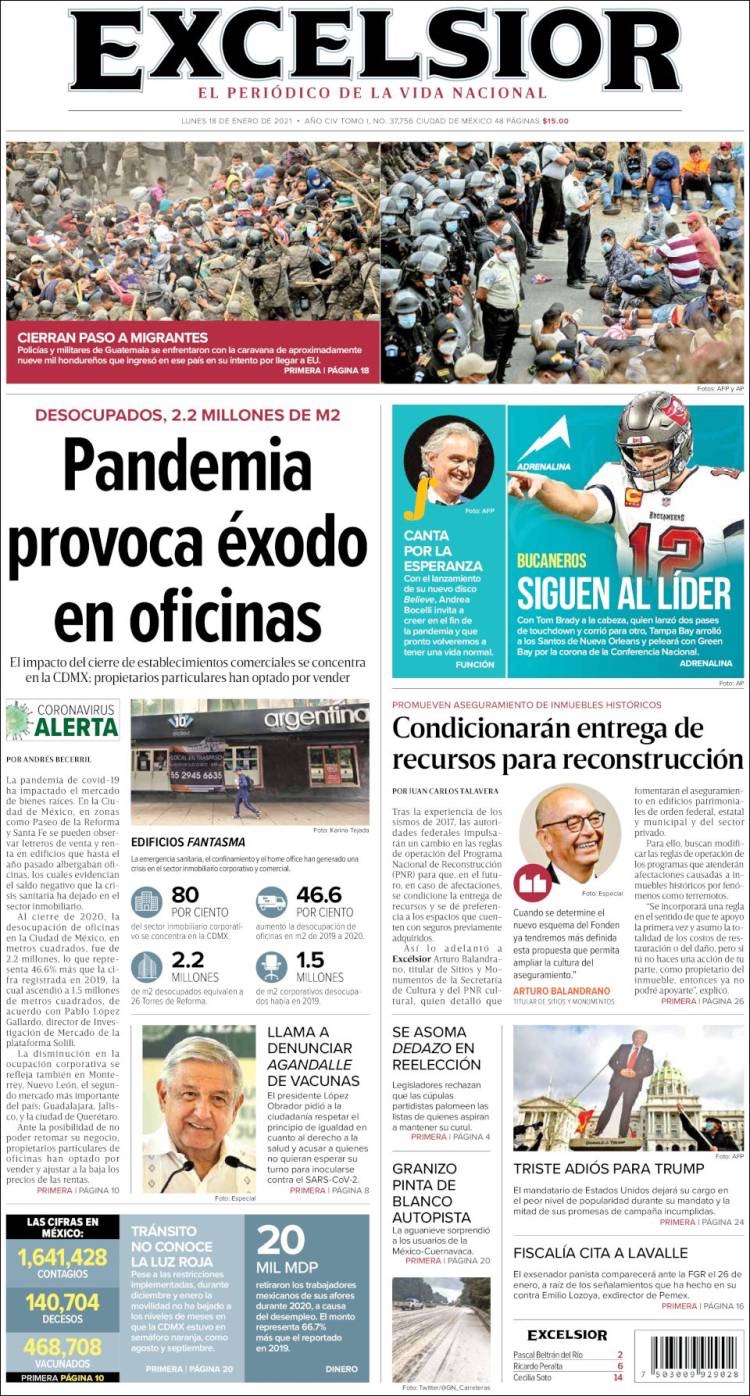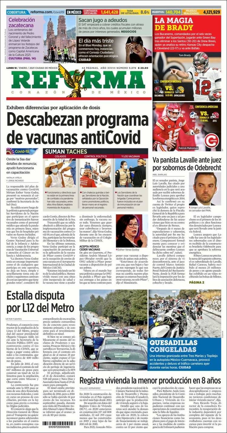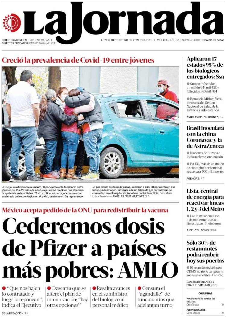 PRIMERAS PLANAS EN MEXICO Y EL MUNDO DEL 18 DE ENERO DE 2021