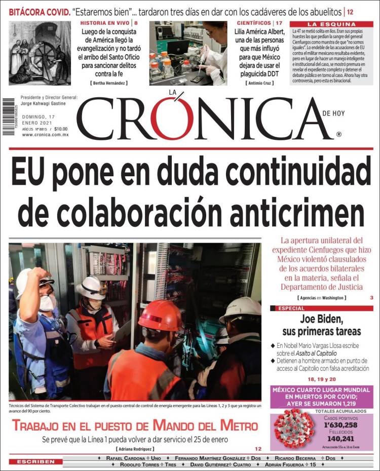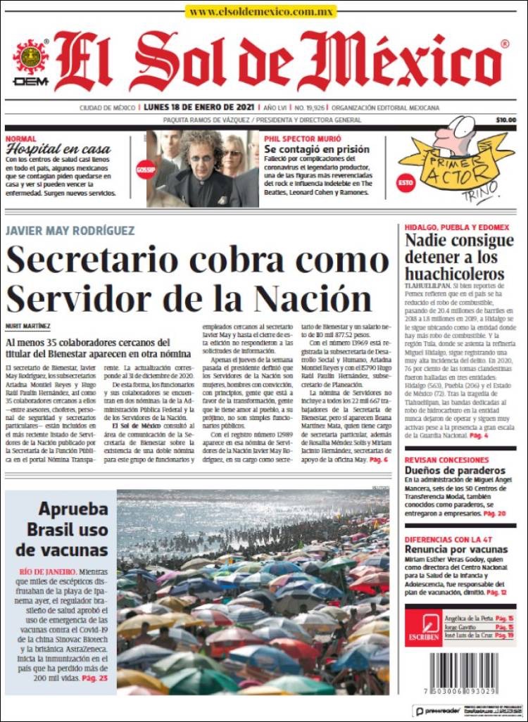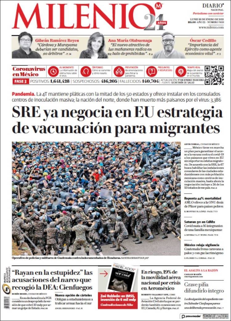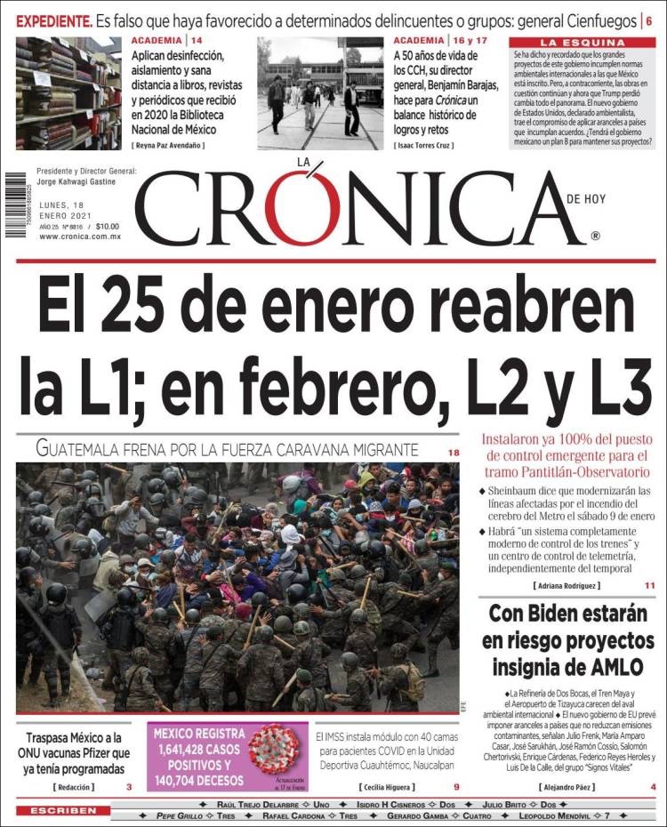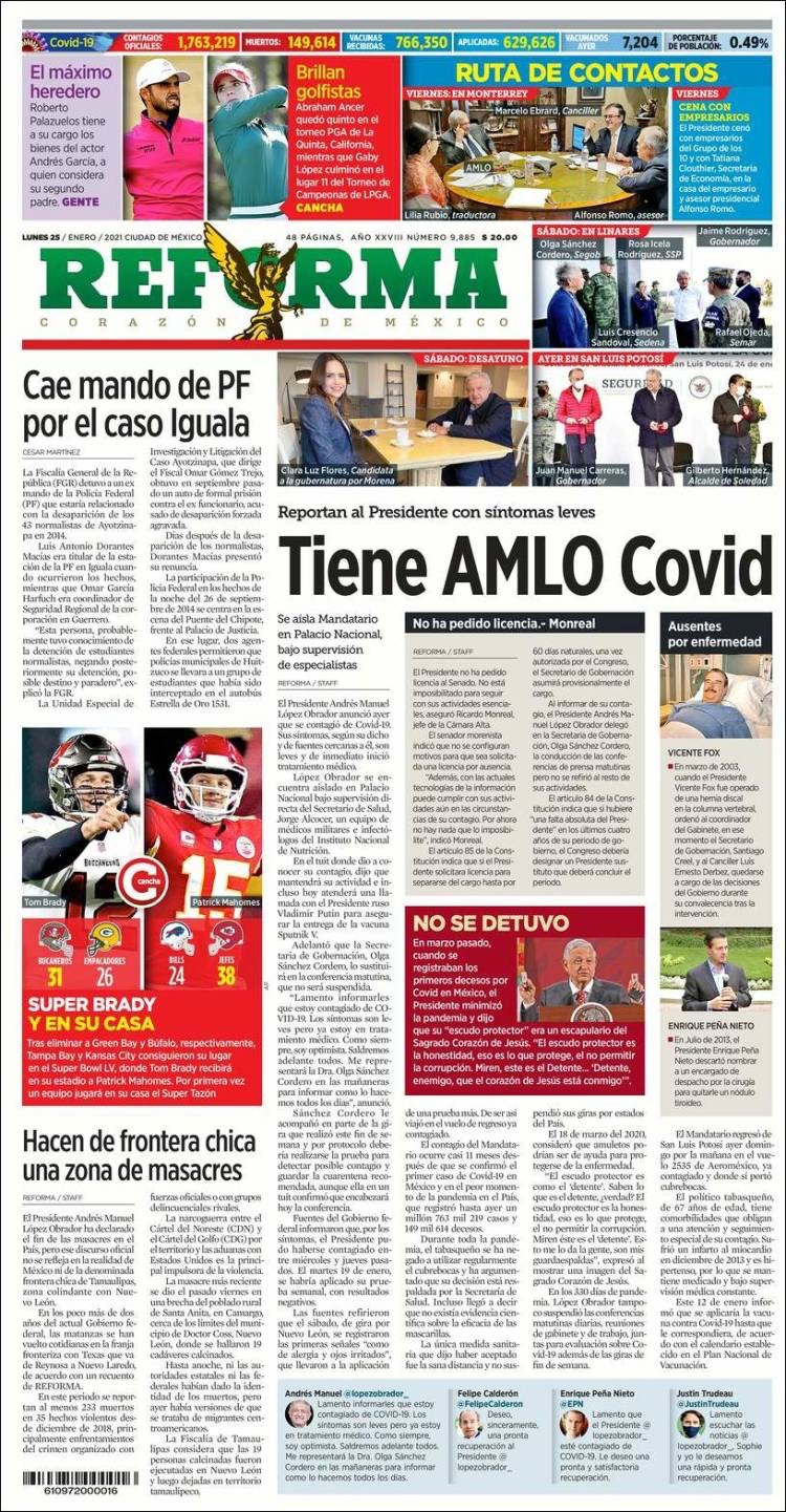 PRIMERAS PLANAS EN MEXICO Y EL MUNDO DEL 18 DE ENERO DE 2021