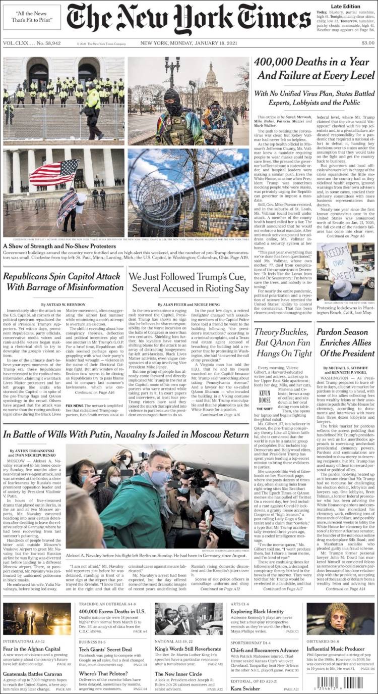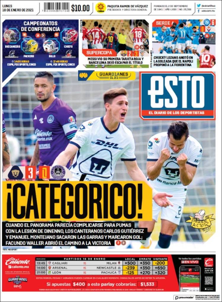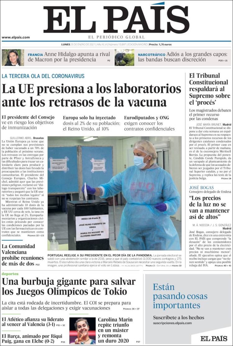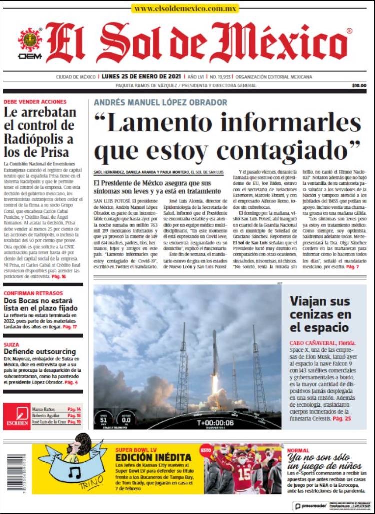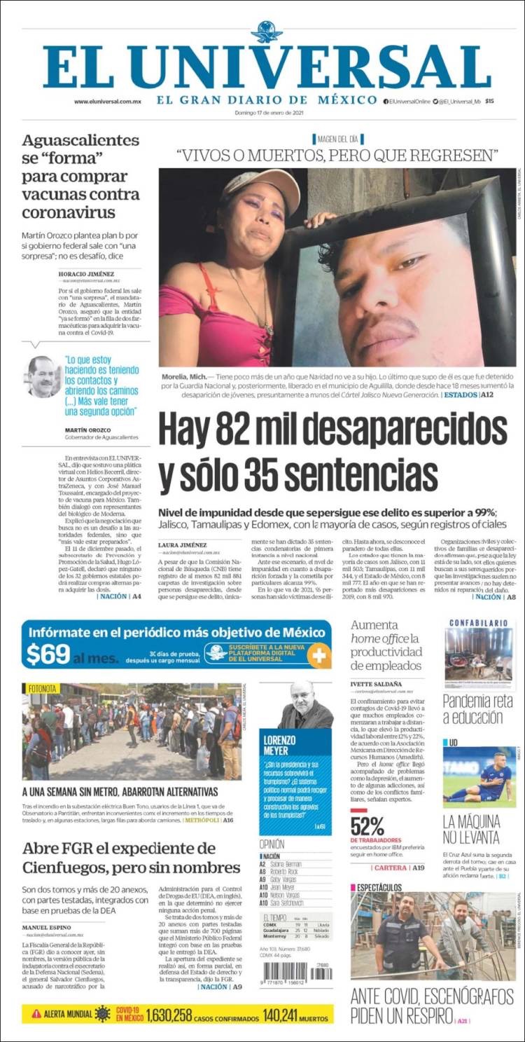 PRIMERAS PLANAS EN MEXICO Y EL MUNDO DEL 18 DE ENERO DE 2021