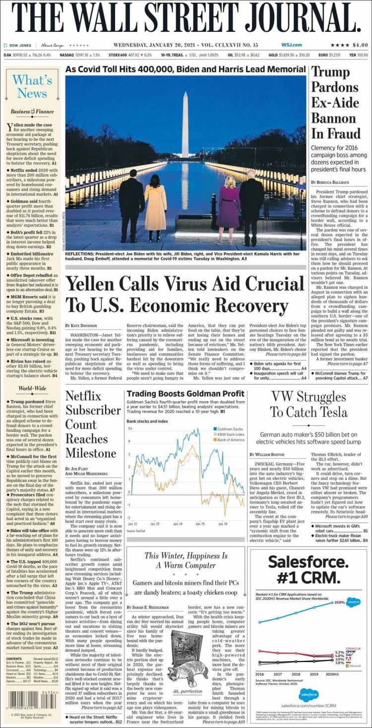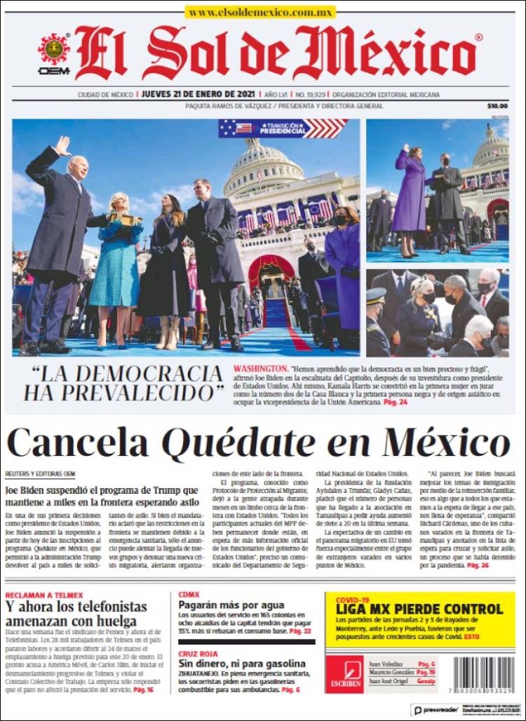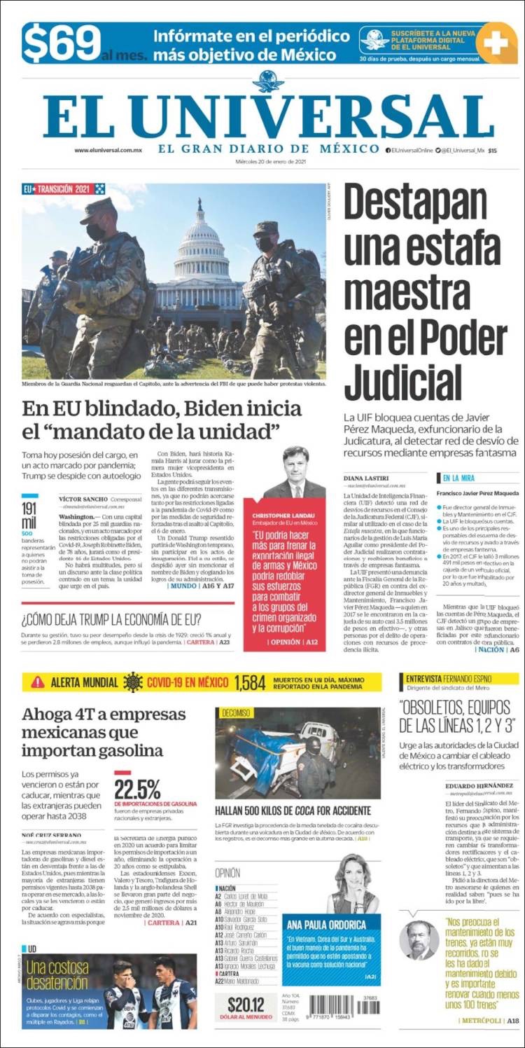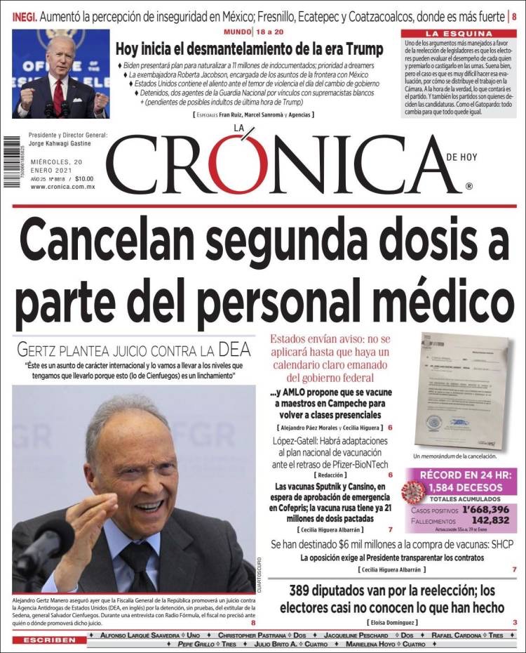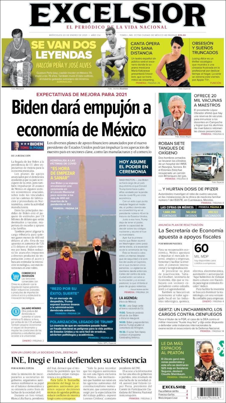 PRIMERAS PLANAS EN MEXICO Y EL MUNDO DEL 20 DE ENERO DE 2021