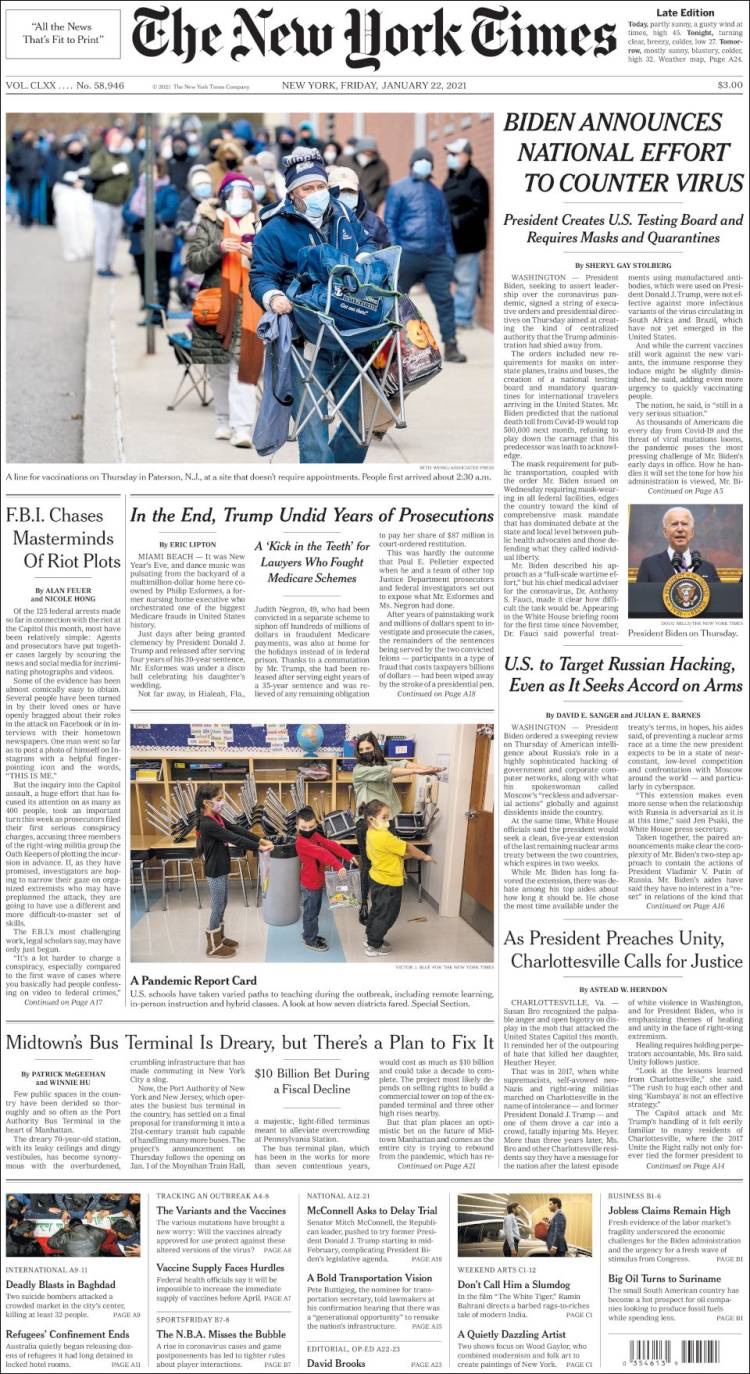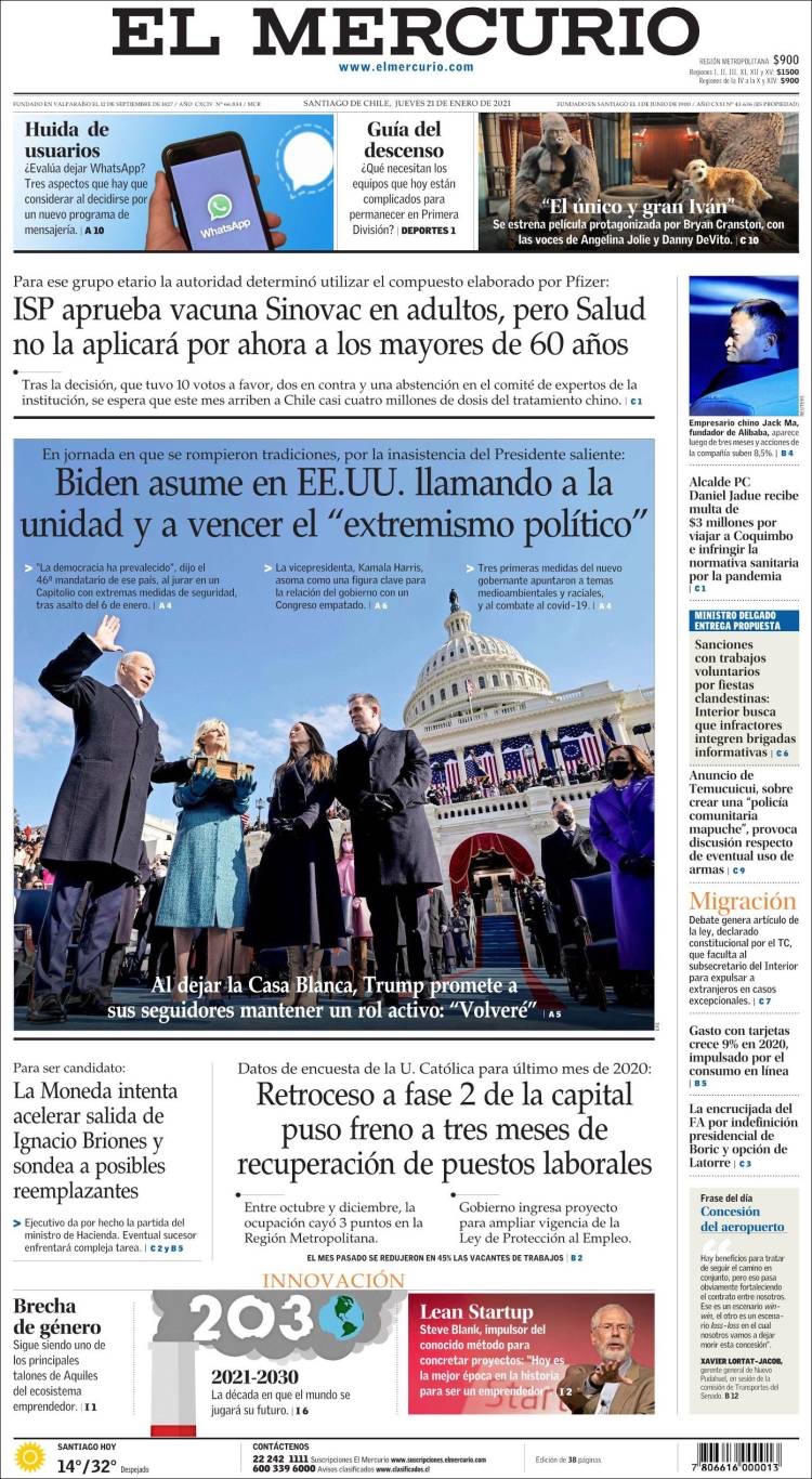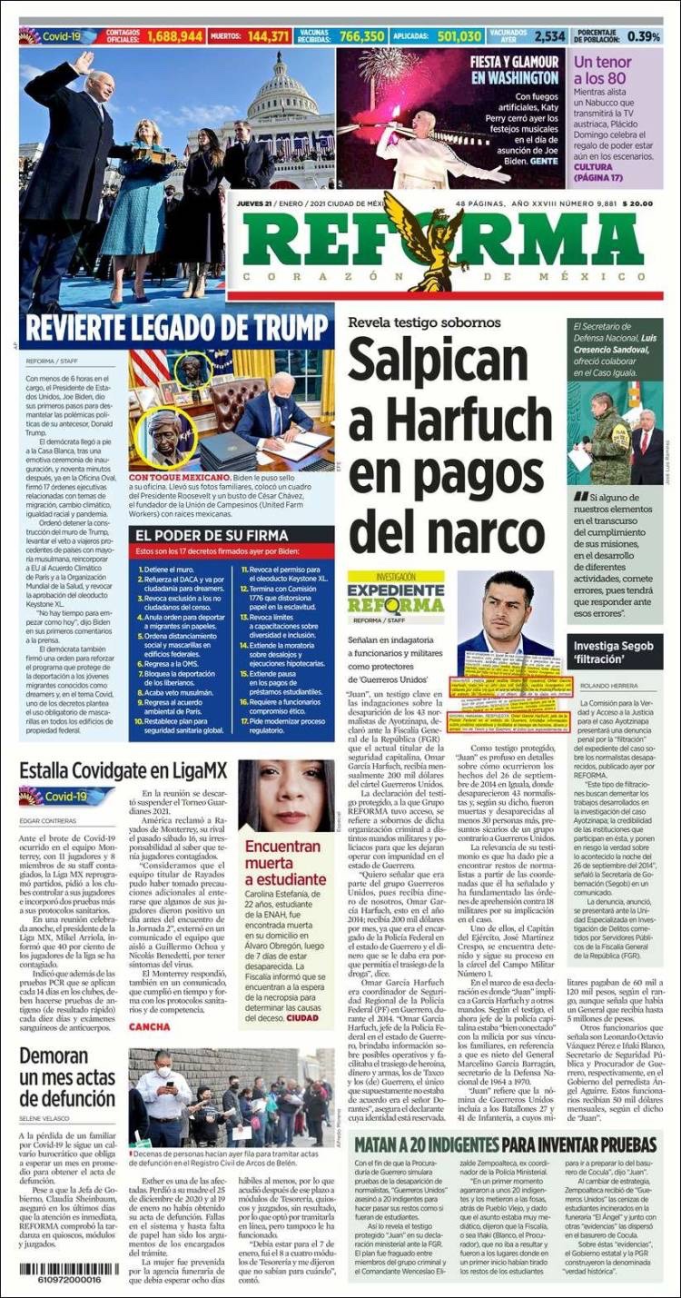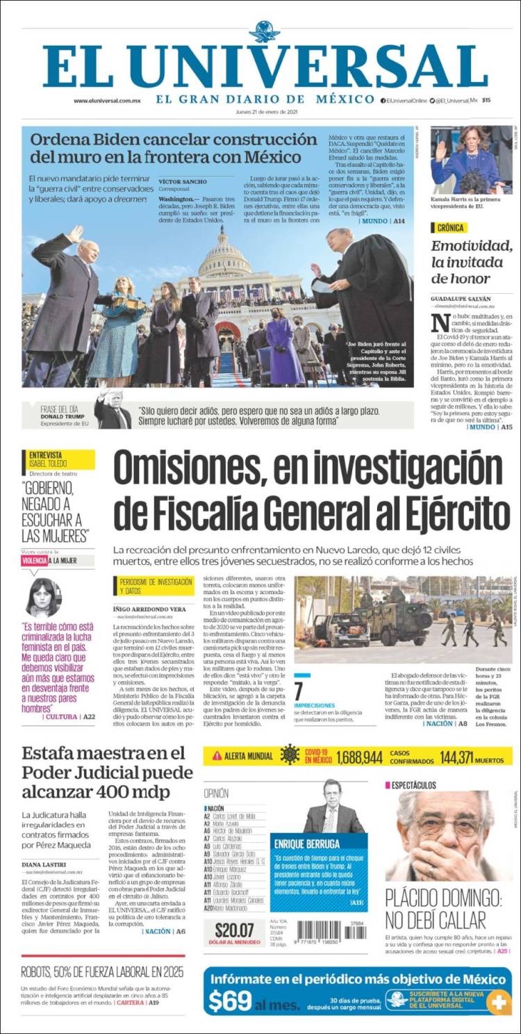 PRIMERAS PLANAS EN MÉXICO Y EL MUNDO DEL 21 DE ENERO DE 2021