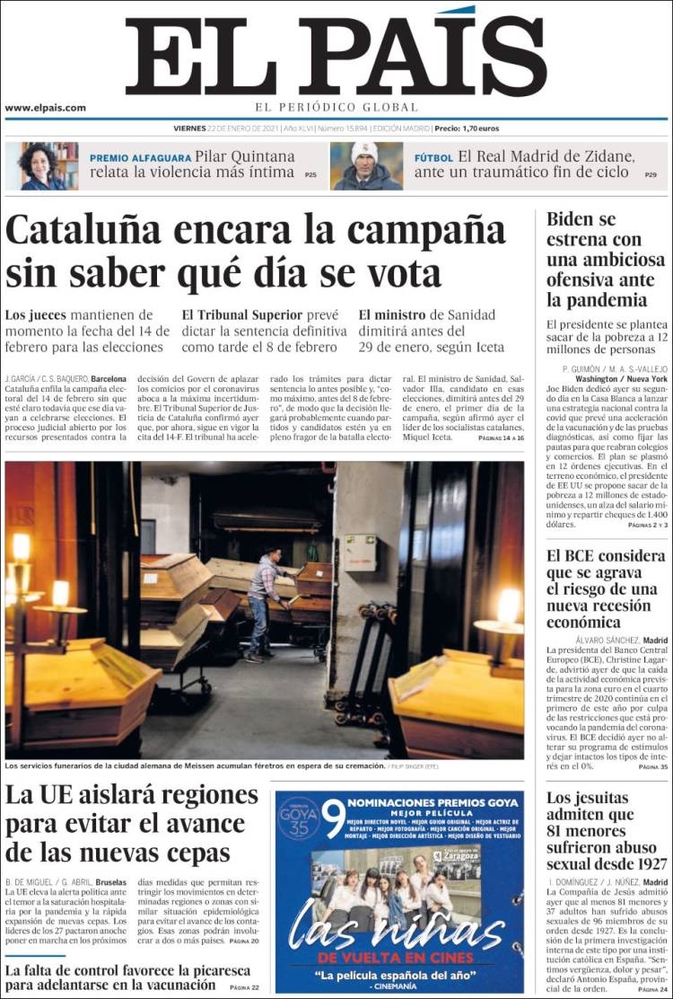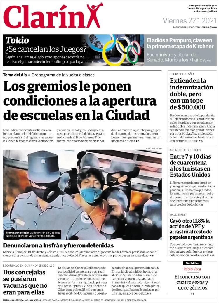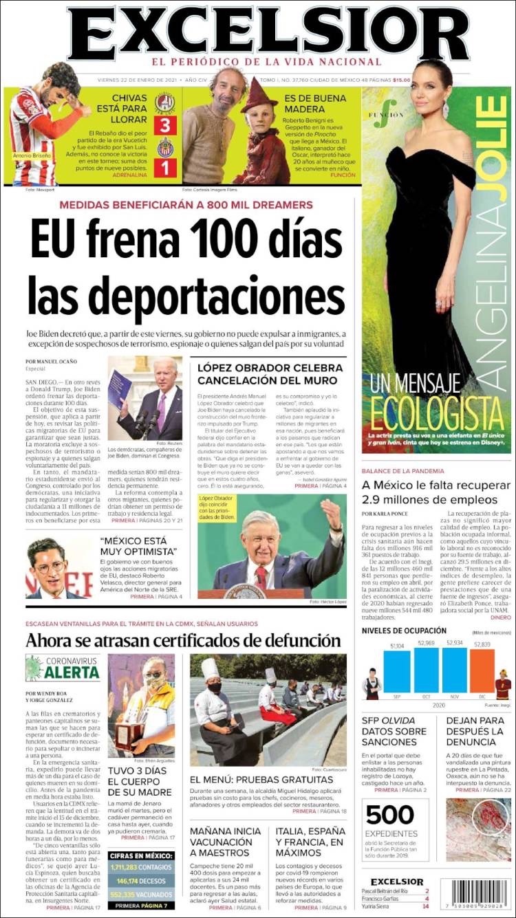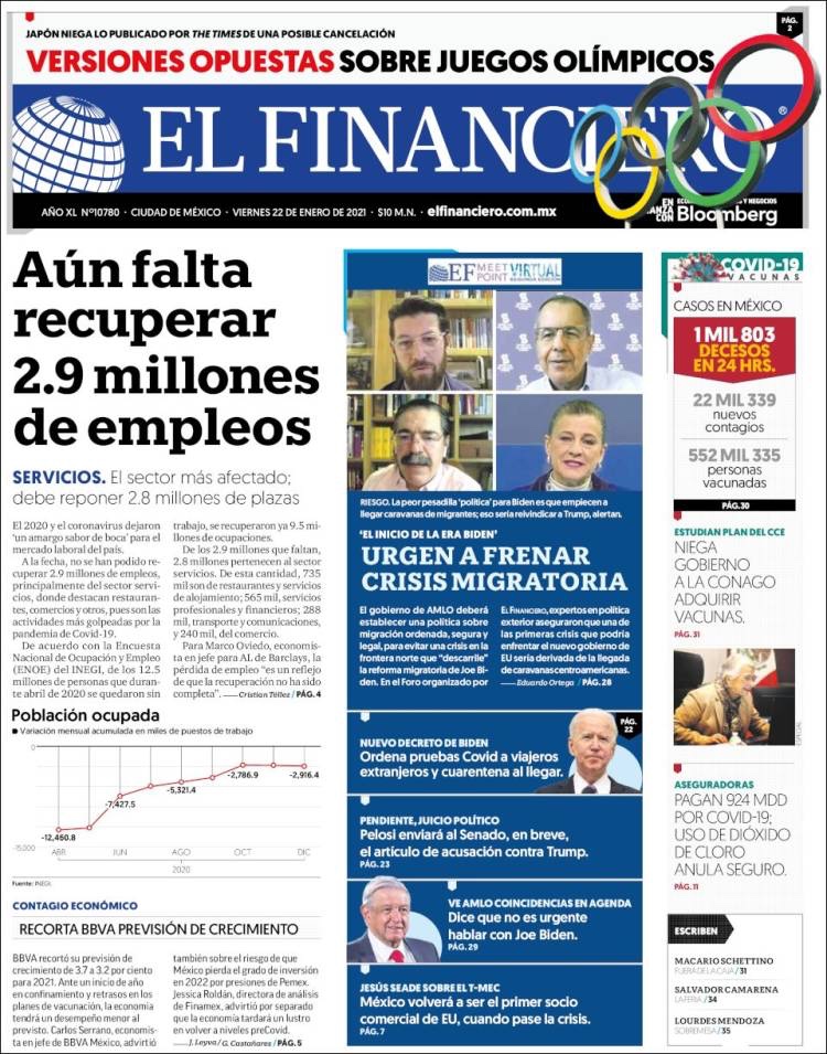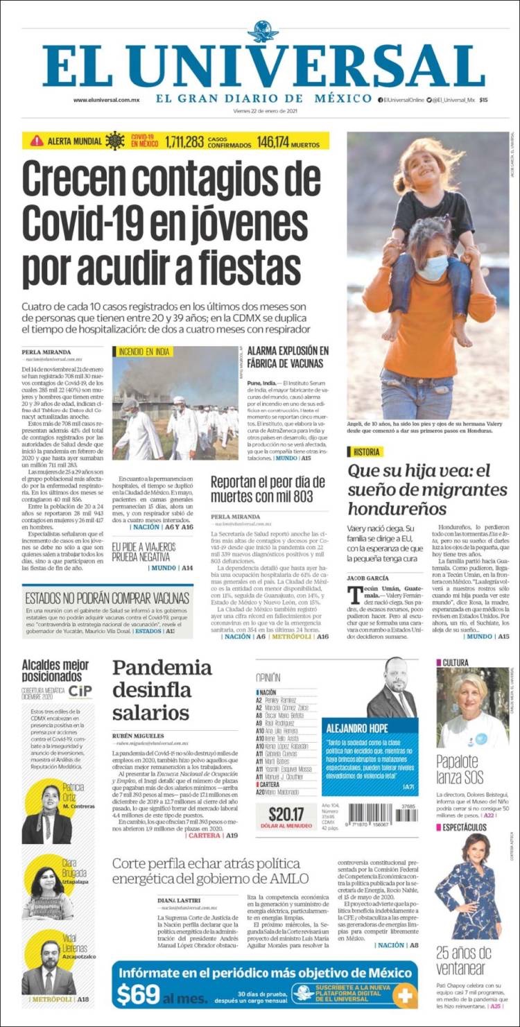PRIMERAS PLANAS EN MEXICO Y EL MUNDO DEL 22 DE ENERO DE 2021