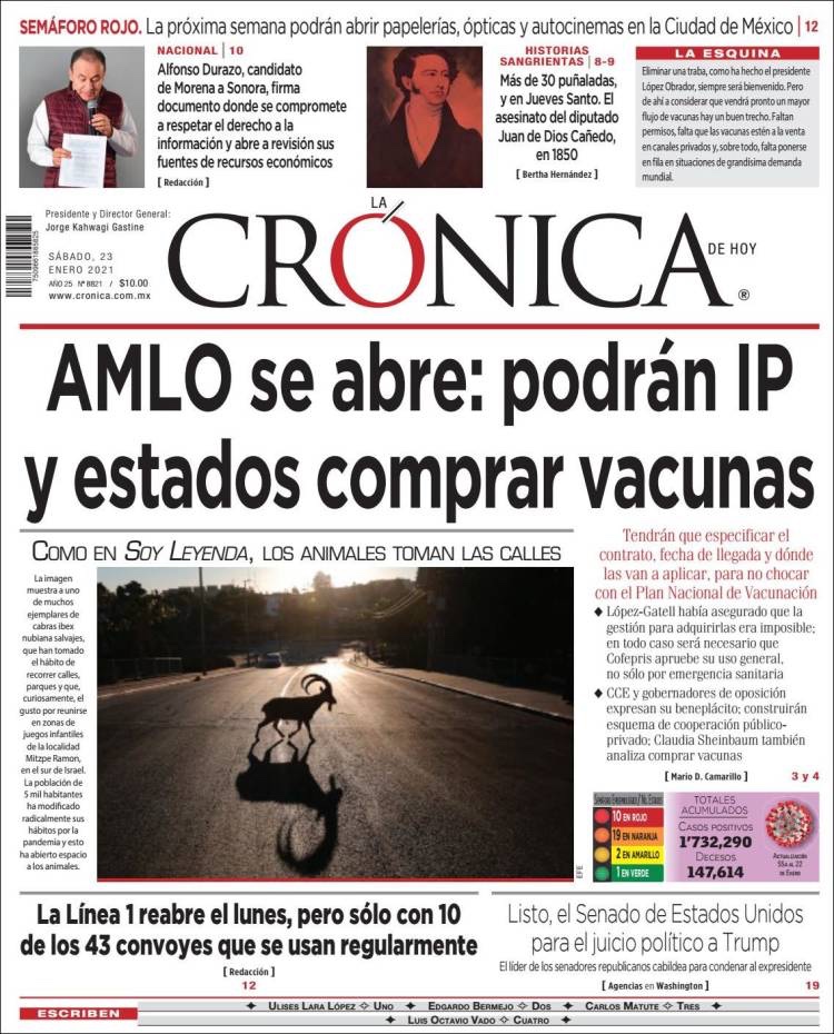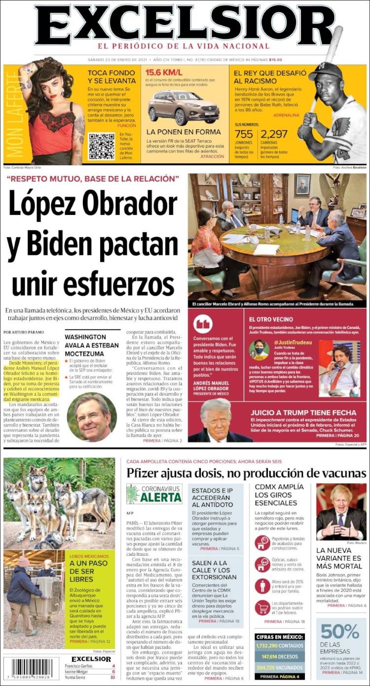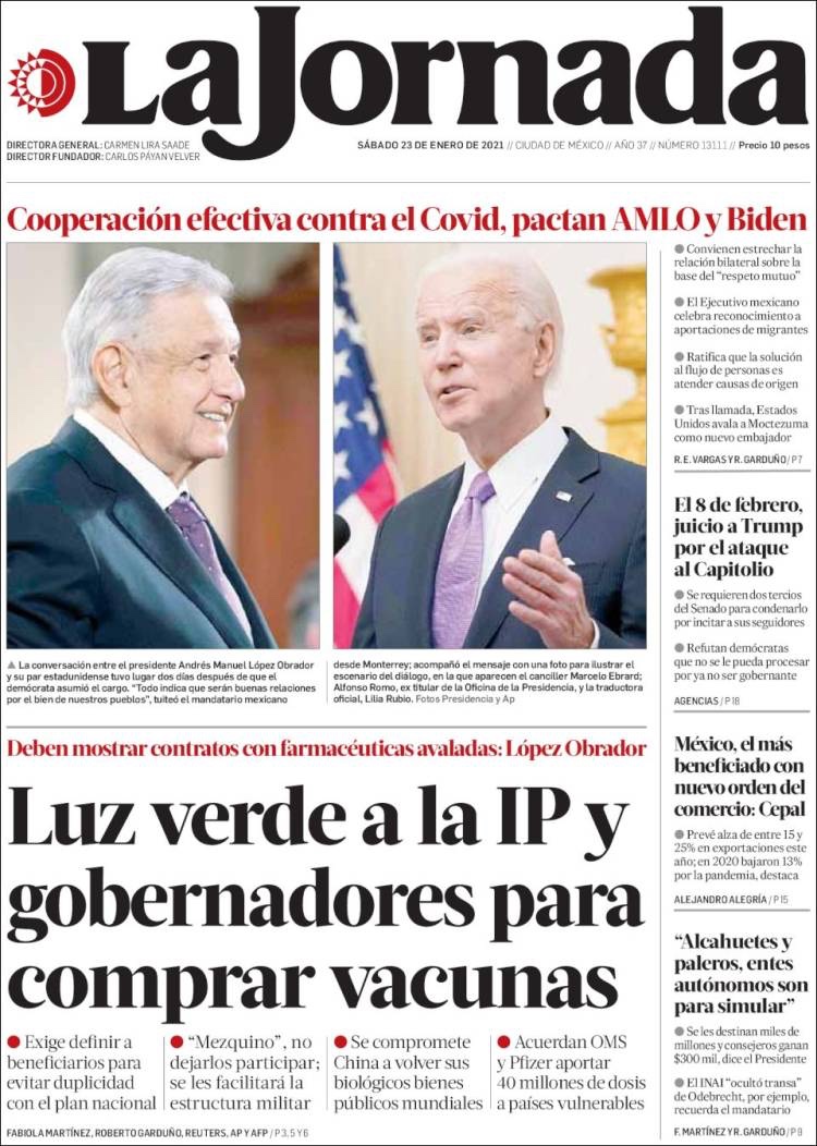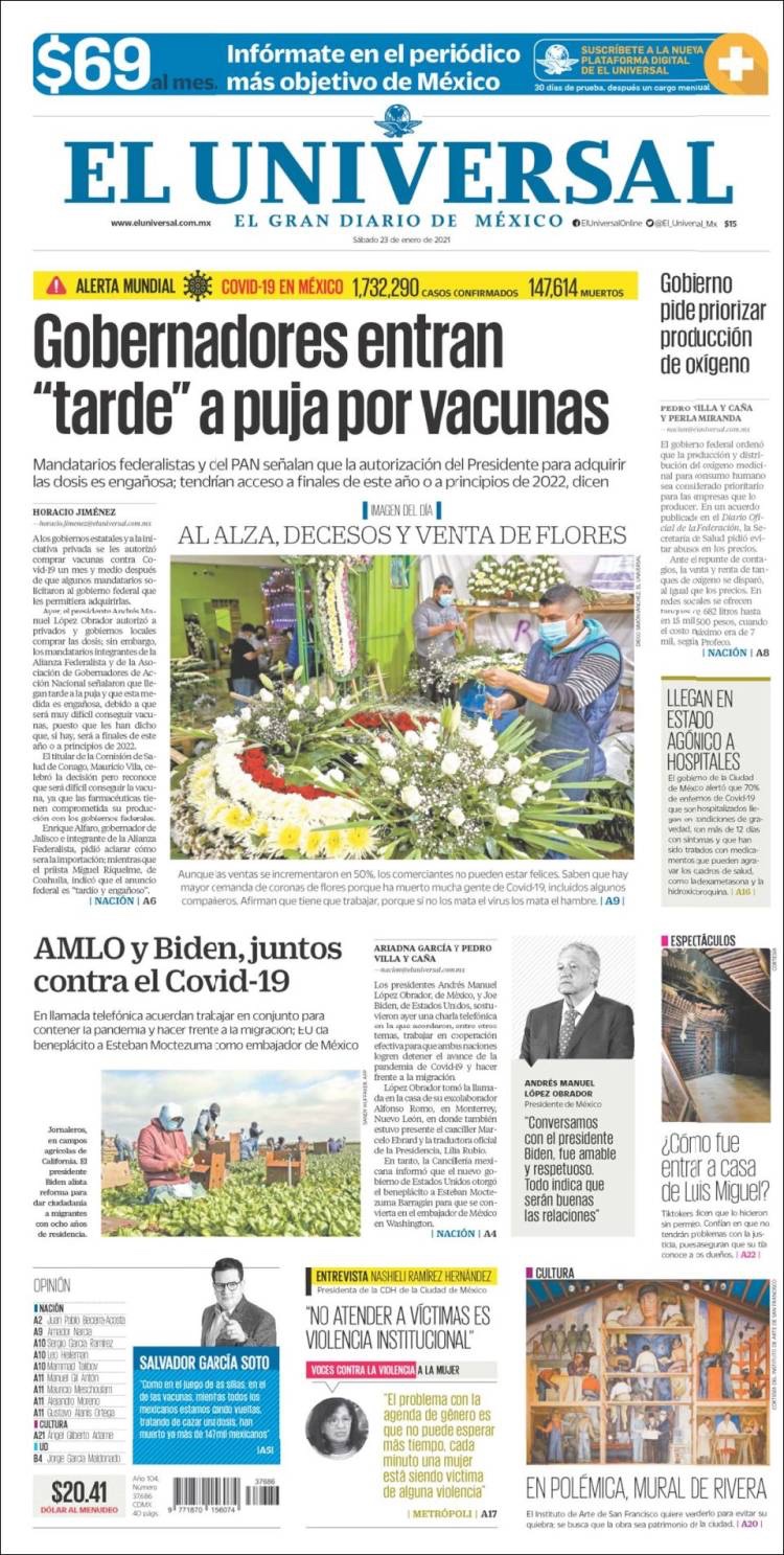 PRIMERAS PLANAS EN MEXICO Y EL MUNDO DEL 23 DE ENERO DE 2021
