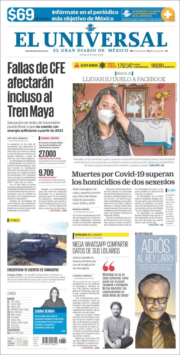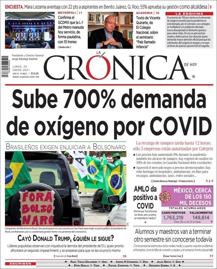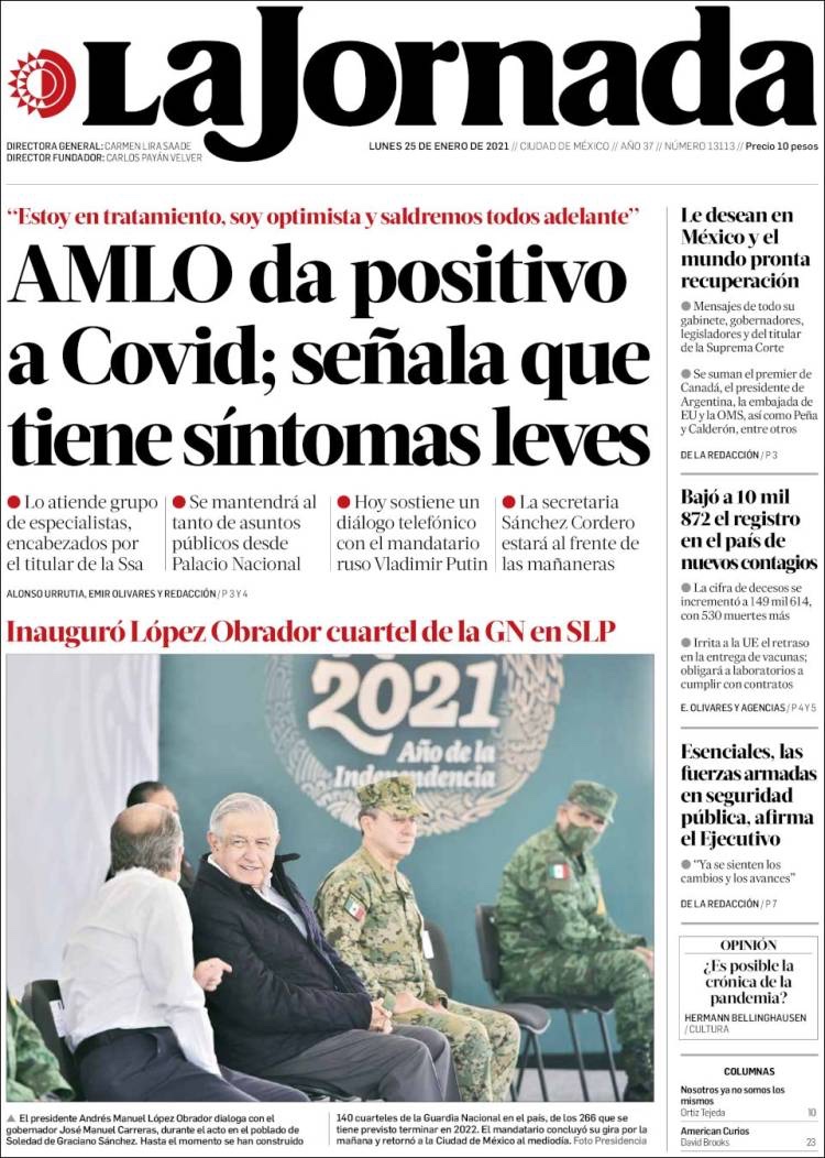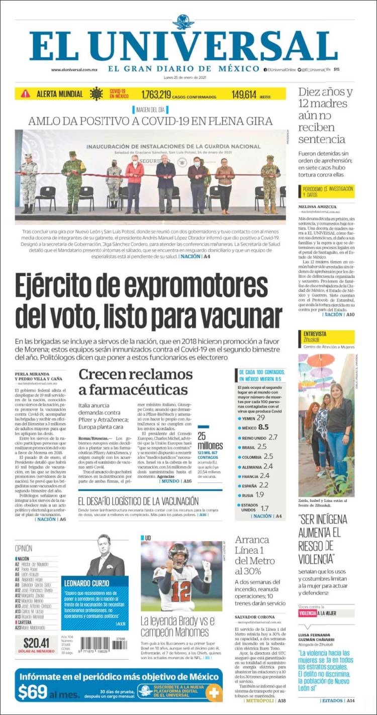 PRIMERAS PLANAS EN MEXICO Y EL MUNDO DEL 24 DE ENERO DE 2021