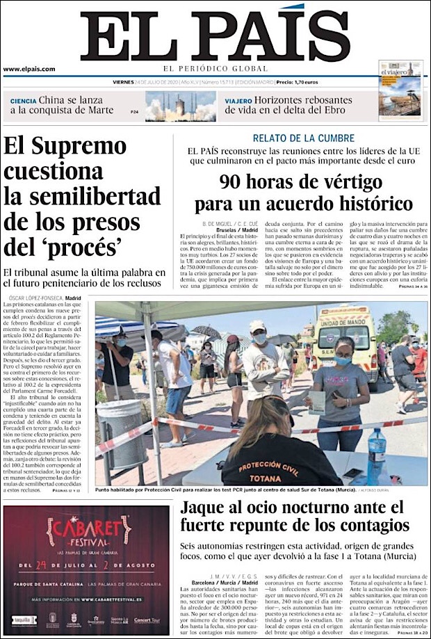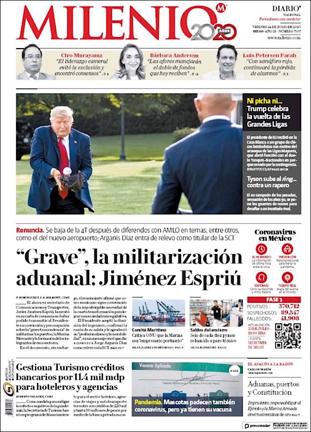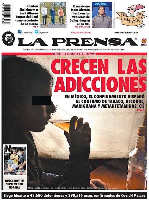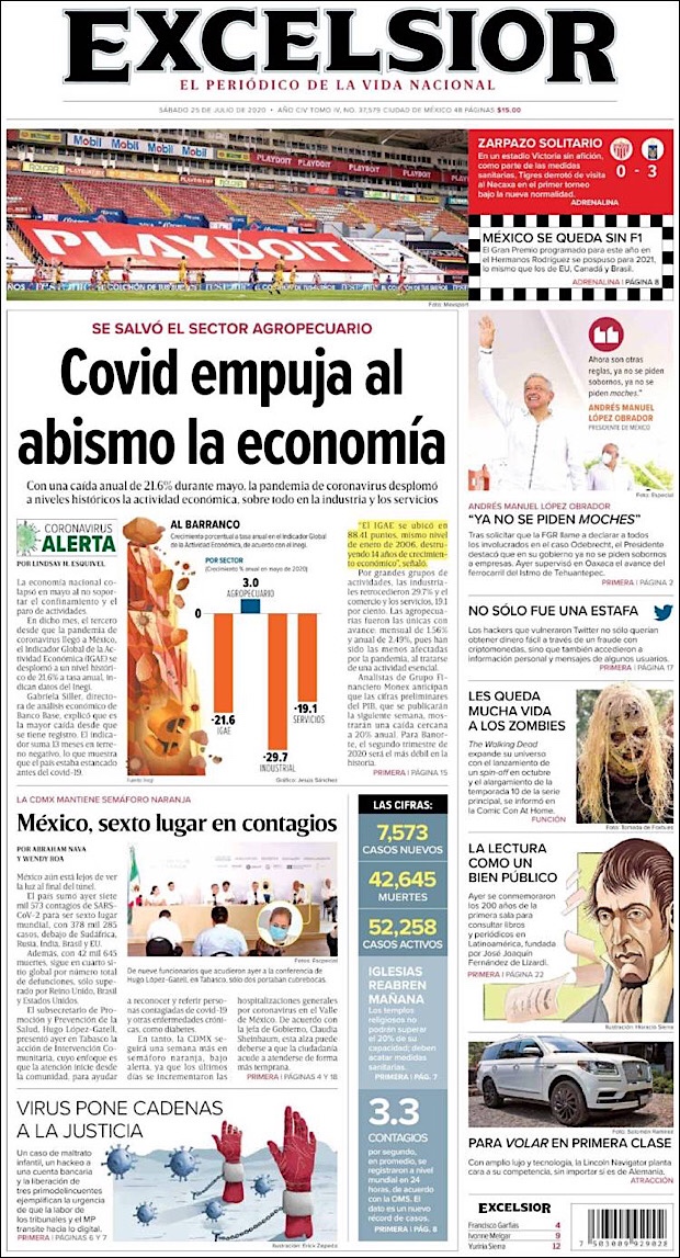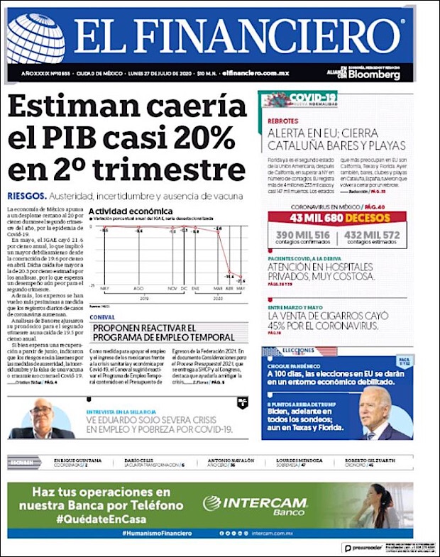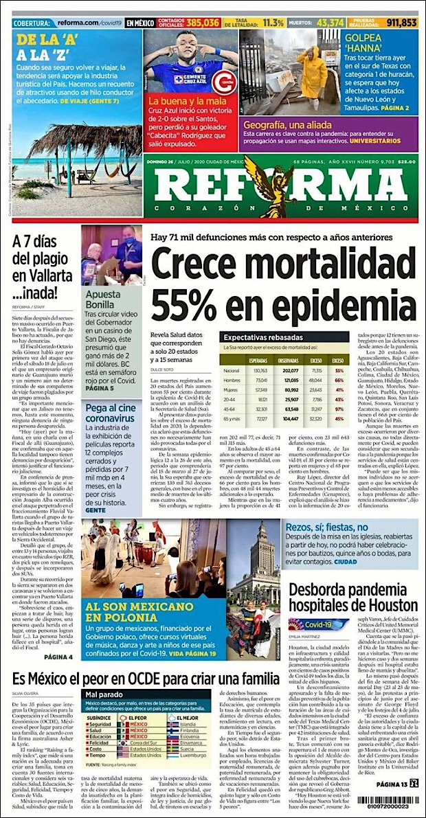 El subsecretario de Prevención y Promoción de la Salud, Hugo López-Gatell Ramírez, reportó que en este día 54 de la Nueva Normalidad, suman 42,645 decesos y 378,285 casos confirmados acumulados del nuevo coronavirus (COVID-19) en México, hasta este viernes 24 de julio.