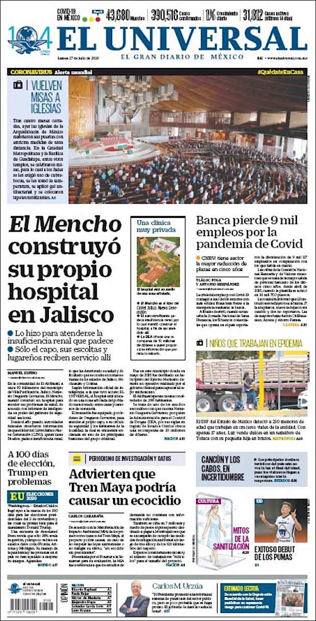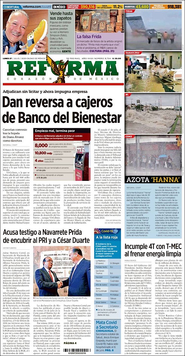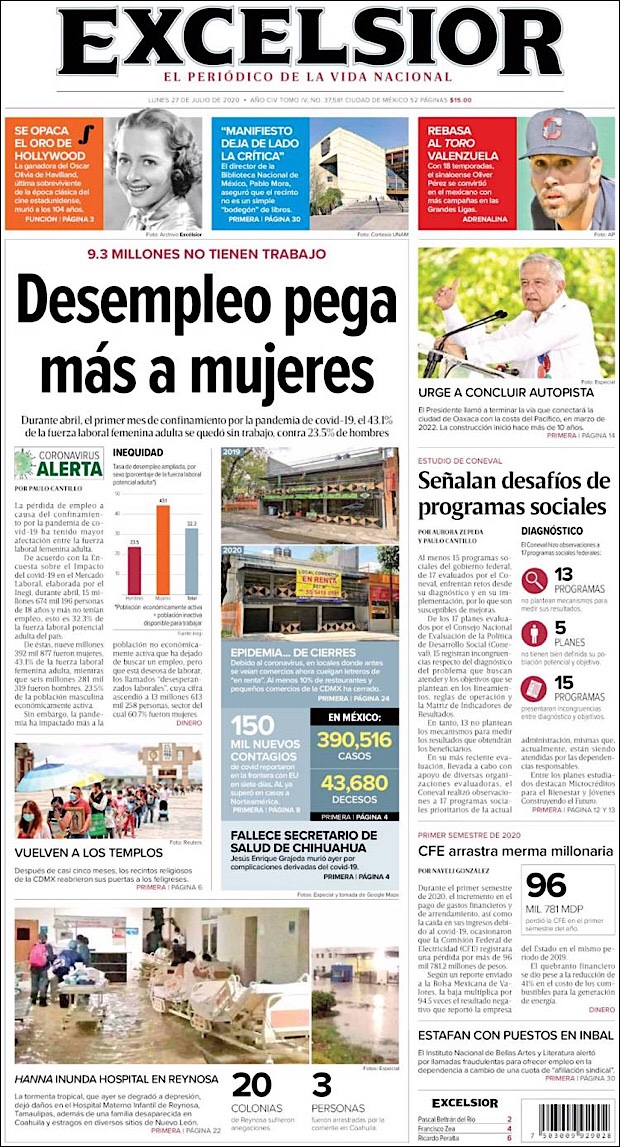 En México hay 385,036 casos confirmados de COVID-19. Hay 433,384 casos negativos, 93,433 sospechosos, y un total de 43,374 defunciones confirmadas. El doctor Ruy López Ridaura, director general del Centro Nacional de Programas Preventivos y Control de Enfermedades, informó que la conferencia vespertina de hoy es la número 148, y que es el día 55 de la “Nueva normalidad”.