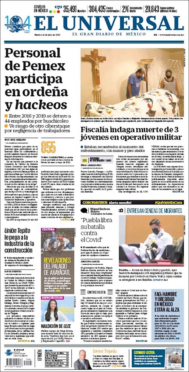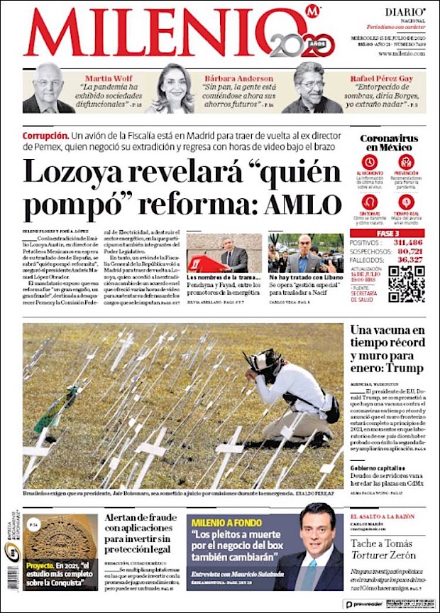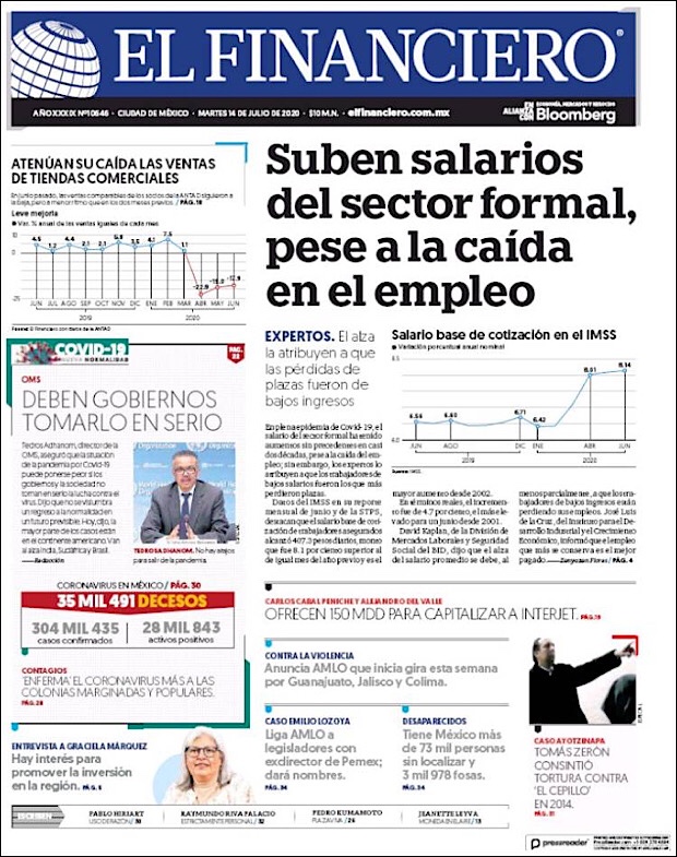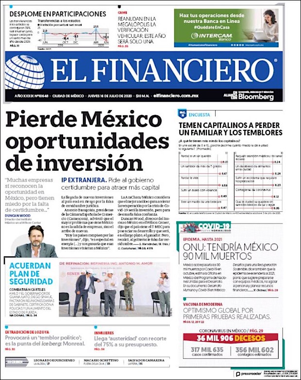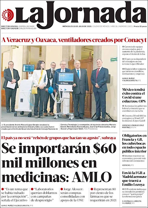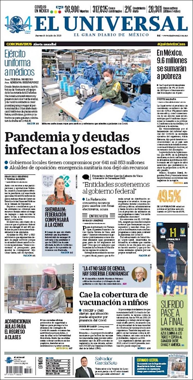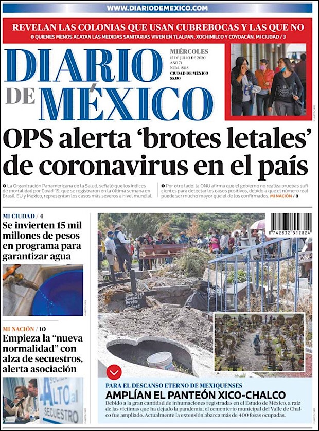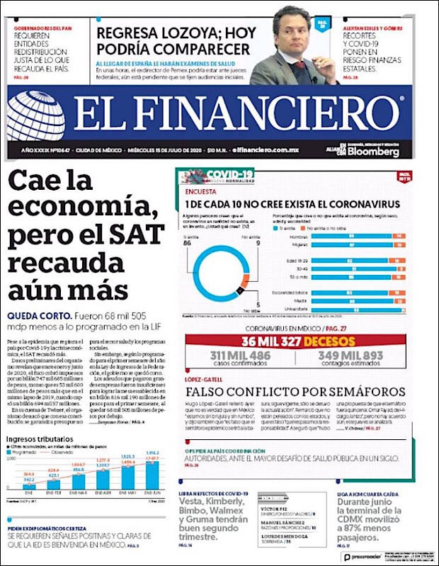 José Luis Alomía Zegarra, director de epidemiología de la Secretaría de Salud, informó que al corte de este 15 de julio, suman 36,906 decesos y 317,635 casos confirmados acumulados y 28,361 activos (detectados desde el 2 de julio y hasta hoy) del nuevo coronavirus (COVID-19) desde el primer caso registrado el pasado 28 de febrero.