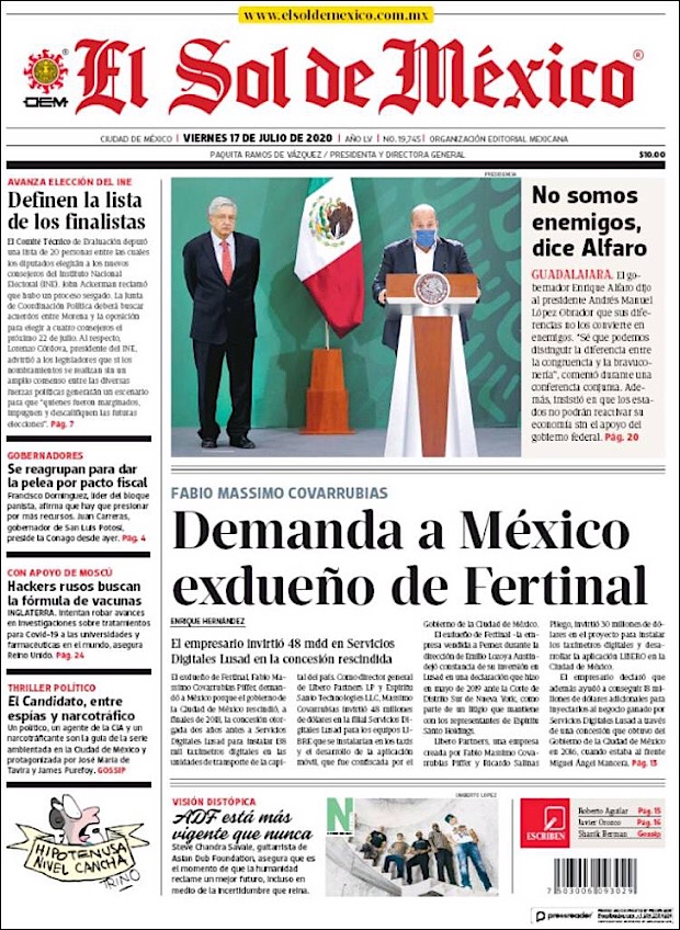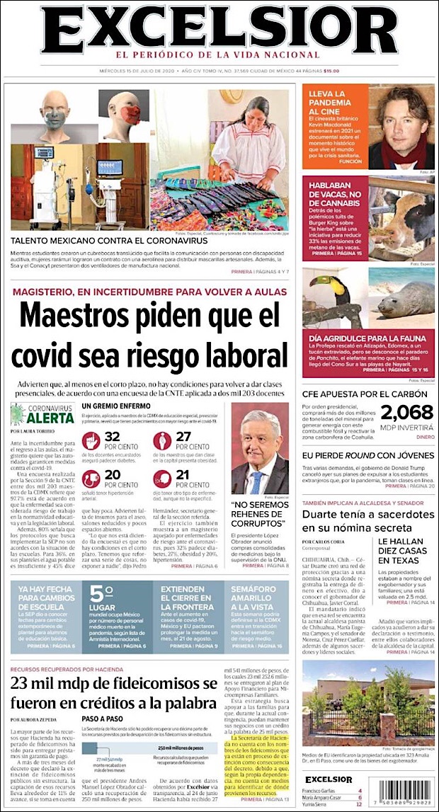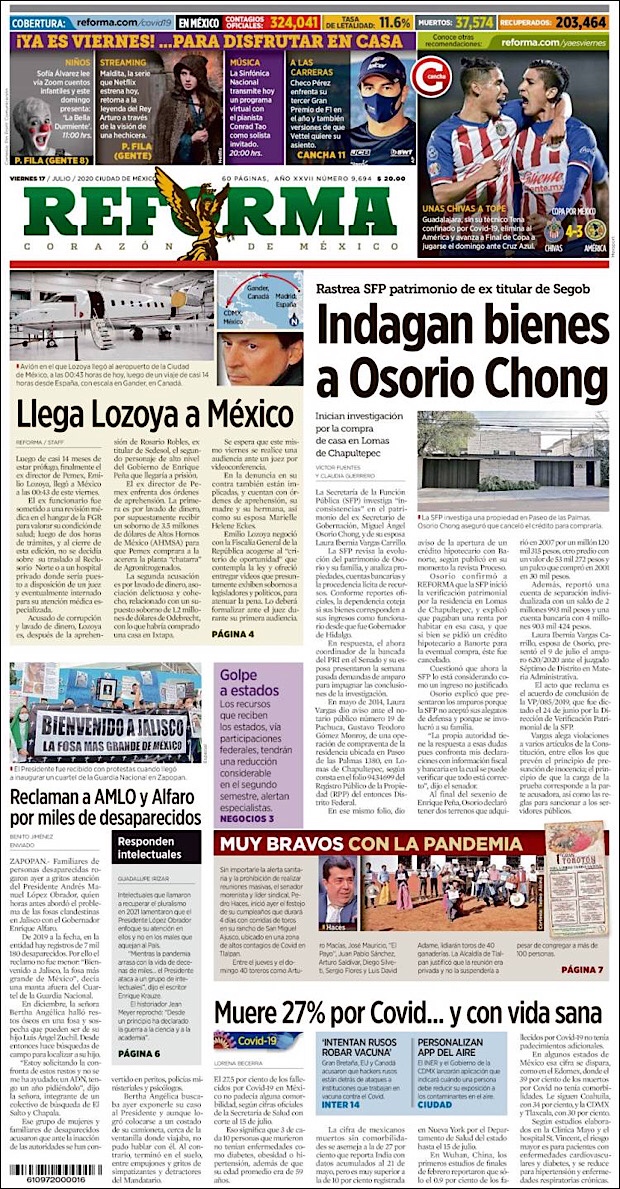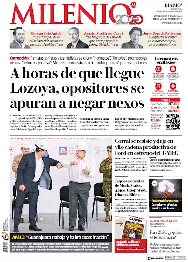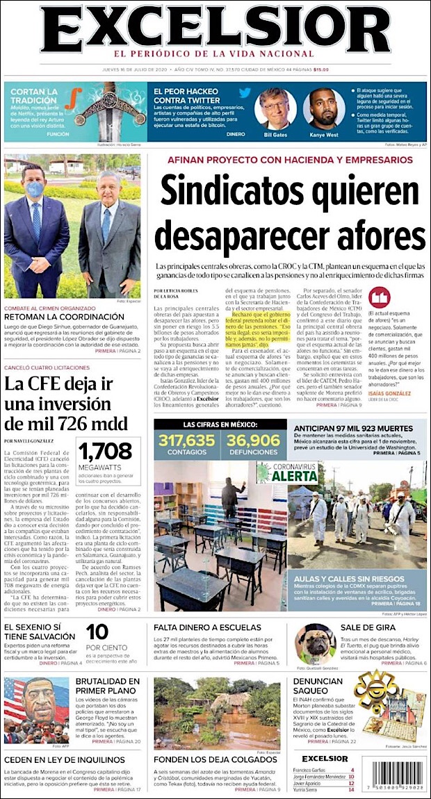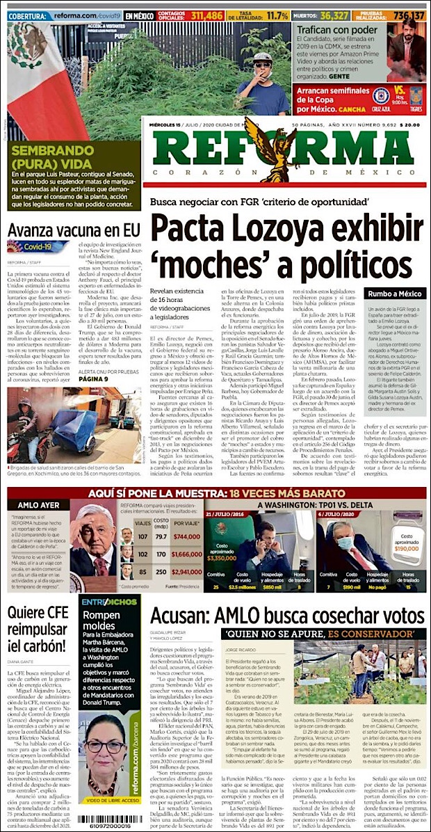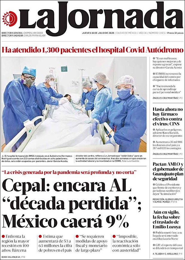 José Luis Alomía Zegarra, director de epidemiología de la Secretaría de Salud, informó que al corte de este 15 de julio, suman 36,906 decesos y 317,635 casos confirmados acumulados y 28,361 activos (detectados desde el 2 de julio y hasta hoy) del nuevo coronavirus (COVID-19) desde el primer caso registrado el pasado 28 de febrero.