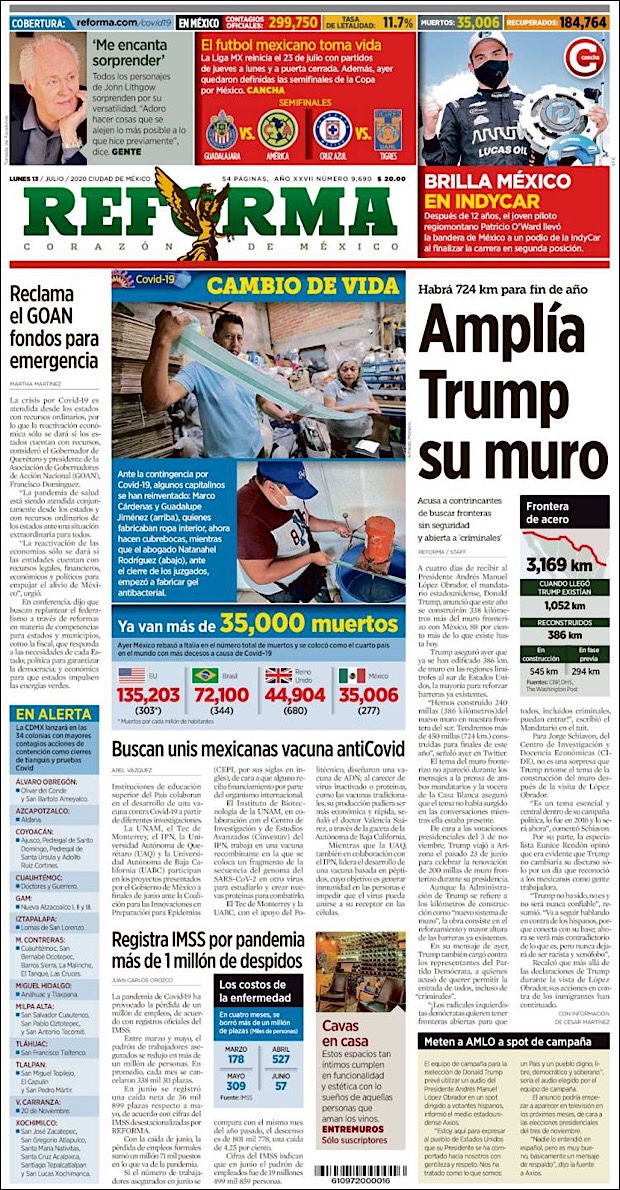 Los decesos por coronavirus en México, hasta este lunes 13 se mayo, sumaron 35,491 (Foto: Reuters)