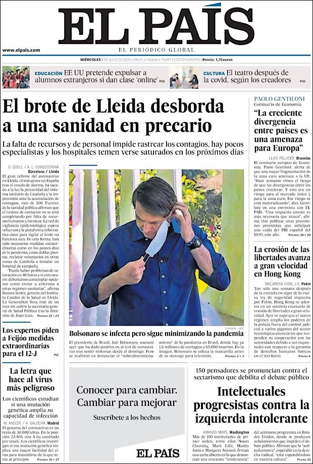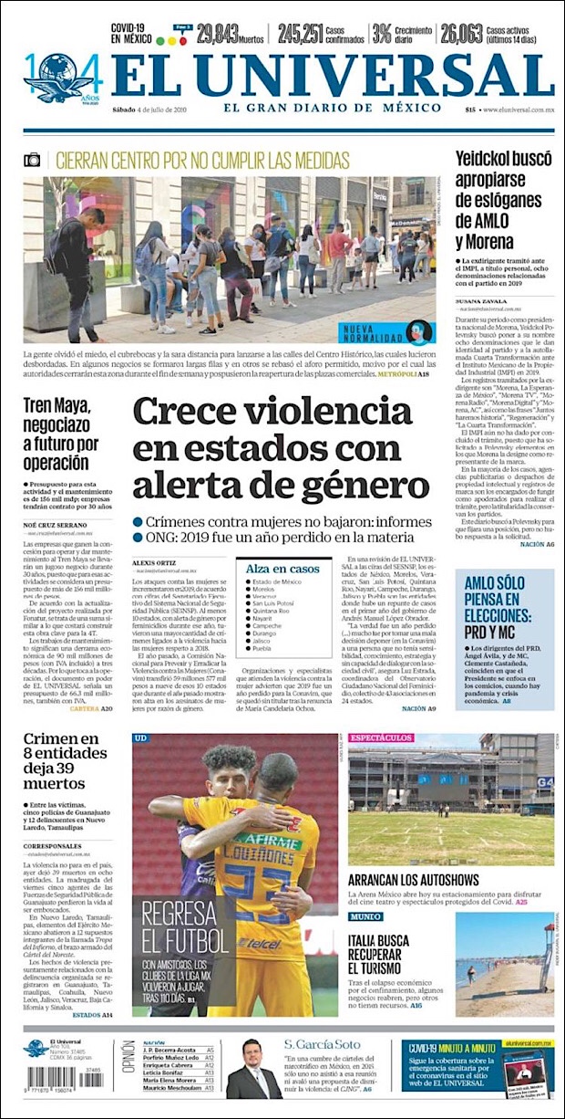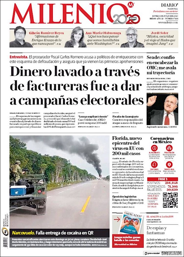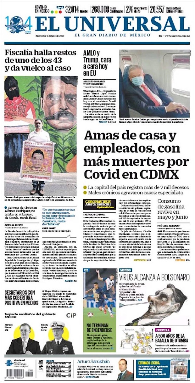 Respecto al panorama internacional, José Luis Alomía, director de Epidemiología a nivel nacional, informó que el total de casos confirmados de COVID-19 acumulados a nivel mundial es de 11,500,302 y, de esta cifra, únicamente 2,526,575 personas, o el 22%, representan los casos activos en el mundo. La tasa de letalidad global se posicionó este martes en 4.7 por ciento.