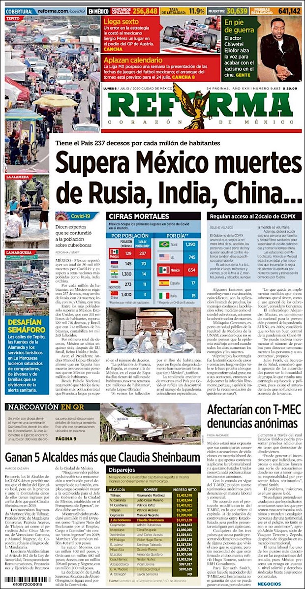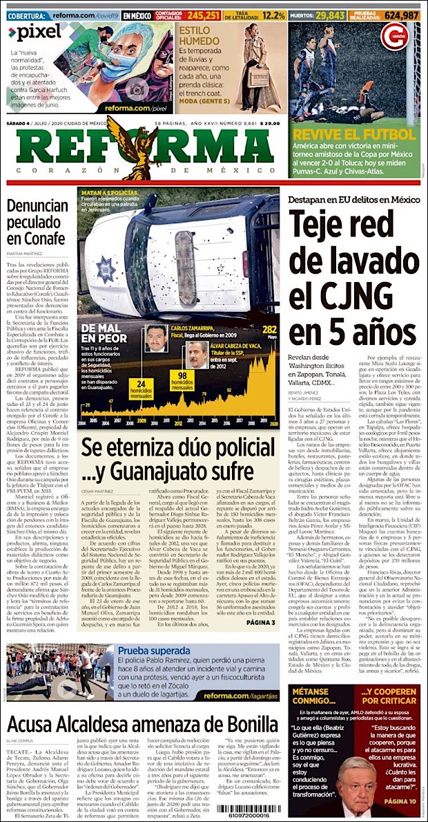 José Luis Alomía Zegarra, director general de Epidemiología, informó que este viernes 3 de julio que México alcanzó los 29,843 decesos por COVID-19. Además hay 245,251 contagios acumulados (en 24 horas se sumaron 6,740 nuevos casos, es decir, hubo un incremento del 2.8% con respecto al día anterior) desde que el primer caso positivo reportado el pasado 28 febrero.