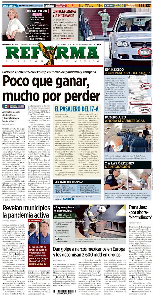 Como parte de la actualización de datos de la Secretaría de Salud (SSa), se dio a conocer que hasta este martes 7 de julio de 2020, suman 268,008 casos confirmados acumulados y 32,014 defunciones por COVID-19 en México.