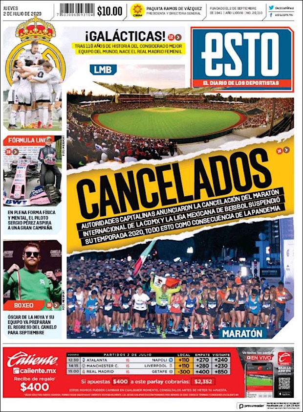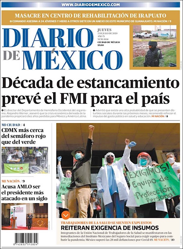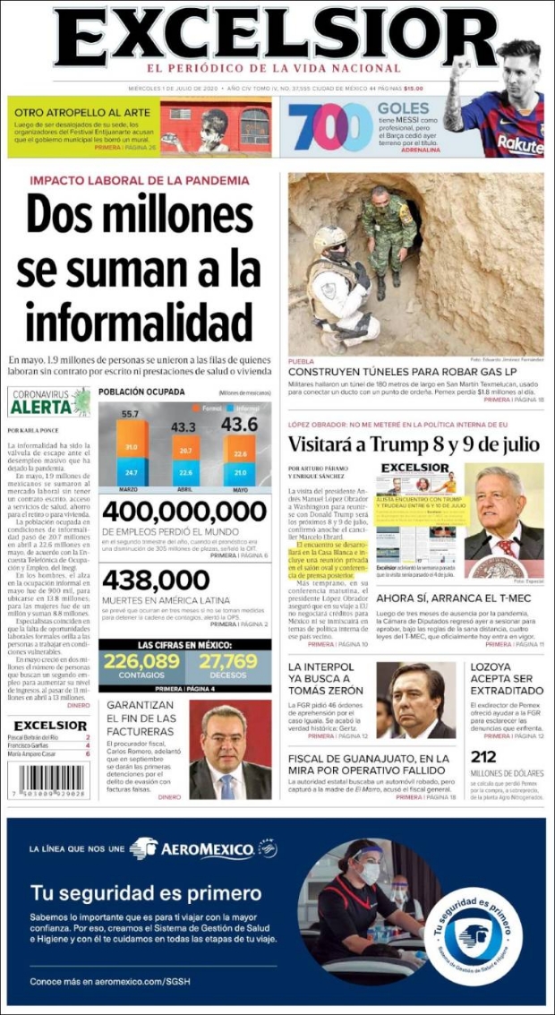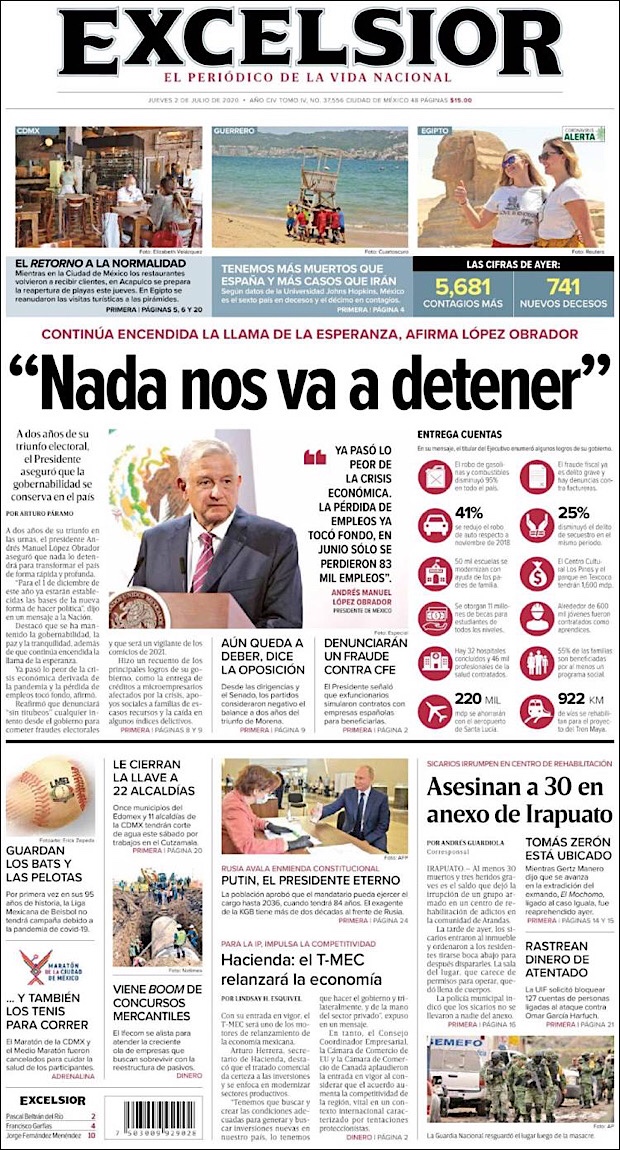 PRIMERAS PLANAS EN MEXICO Y EL MUNDO DEL 30 de JUNIO DE 2020
