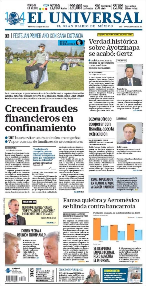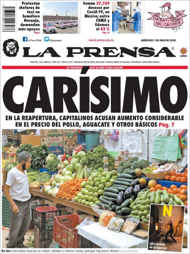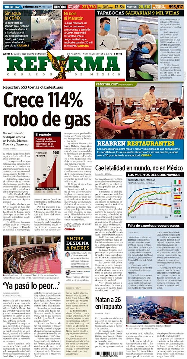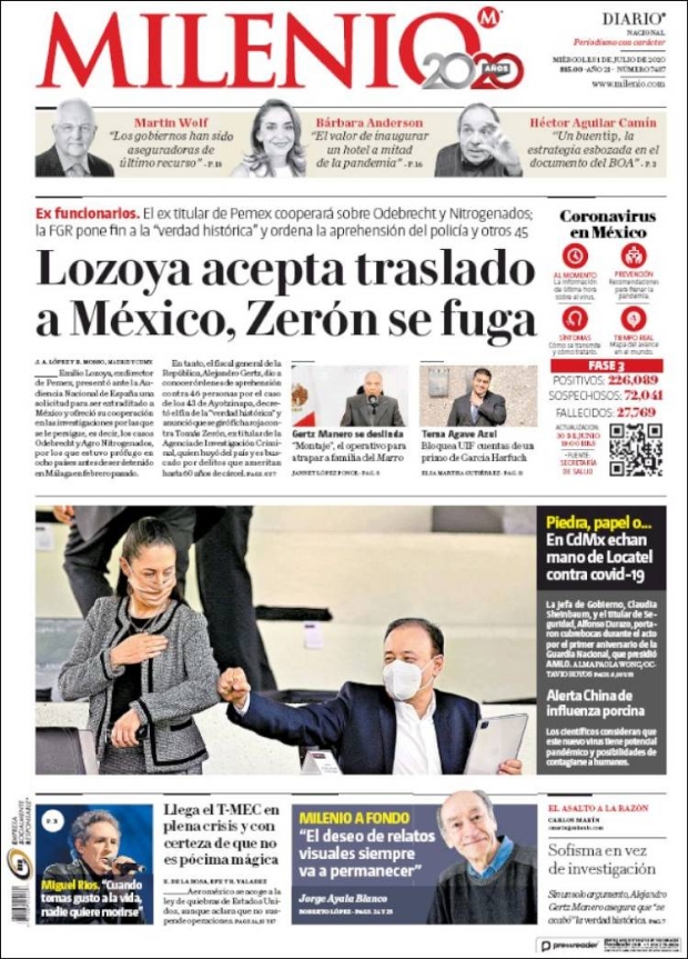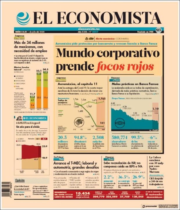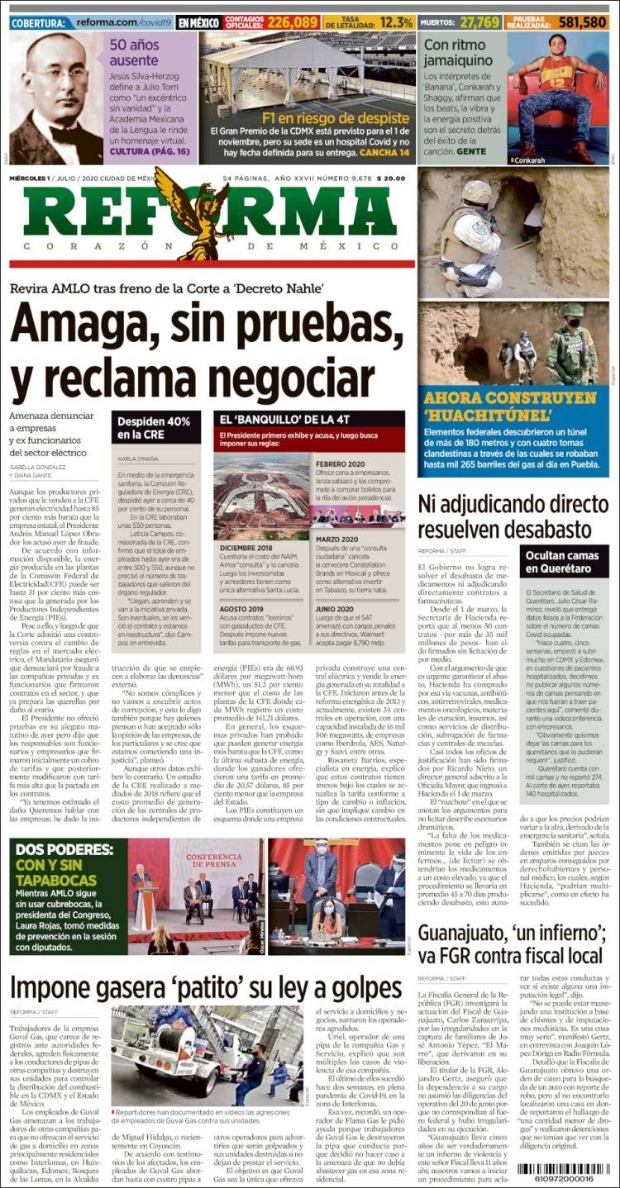 PRIMERAS PLANAS EN MÉXICO Y EL MUNDO DEL 01 DE JULIO DE 2020