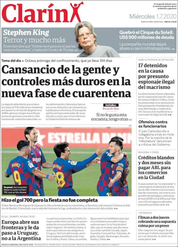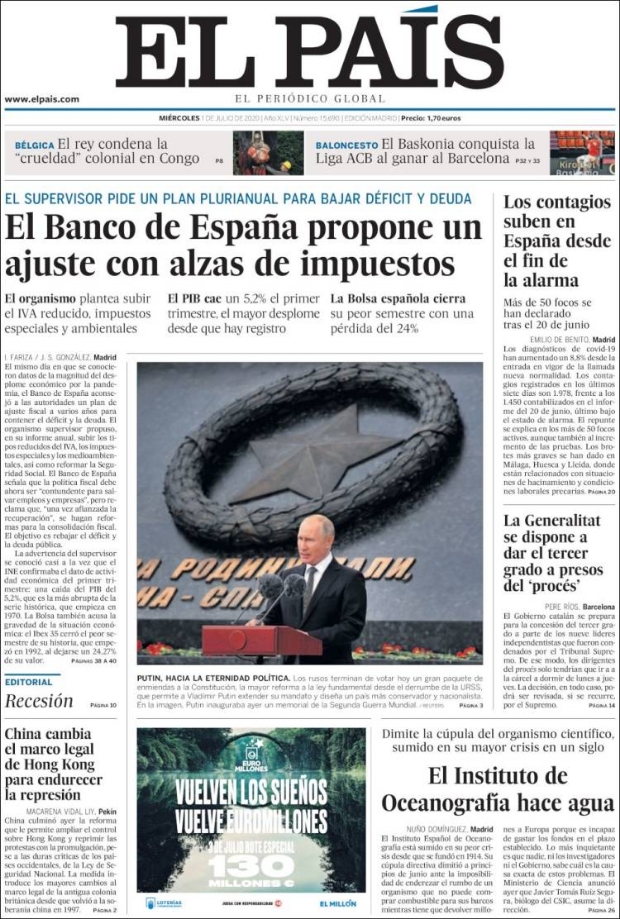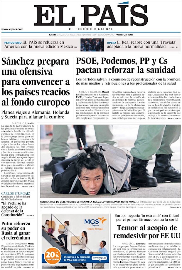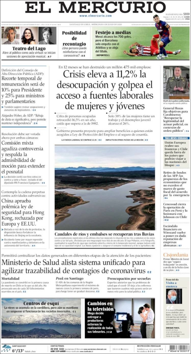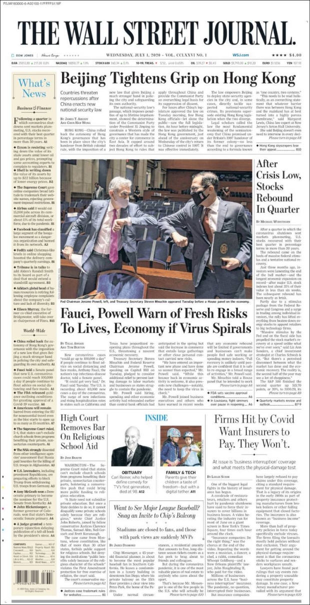 PRIMERAS PLANAS EN MÉXICO Y EL MUNDO DEL 01 DE JULIO DE 2020