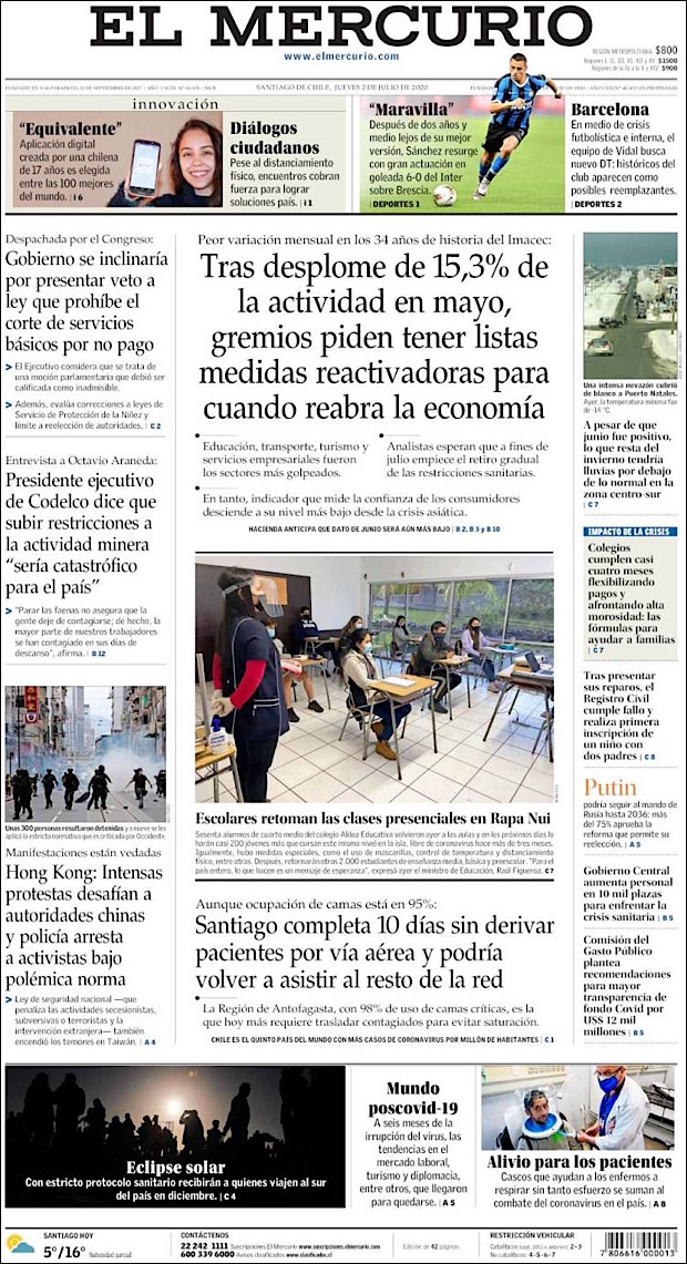 PRIMERAS PLANAS EN MEXICO Y EL MUNDO DEL 29 DE JUNIO DE 2020