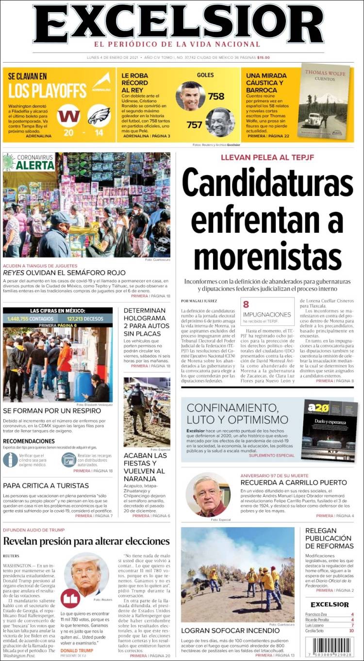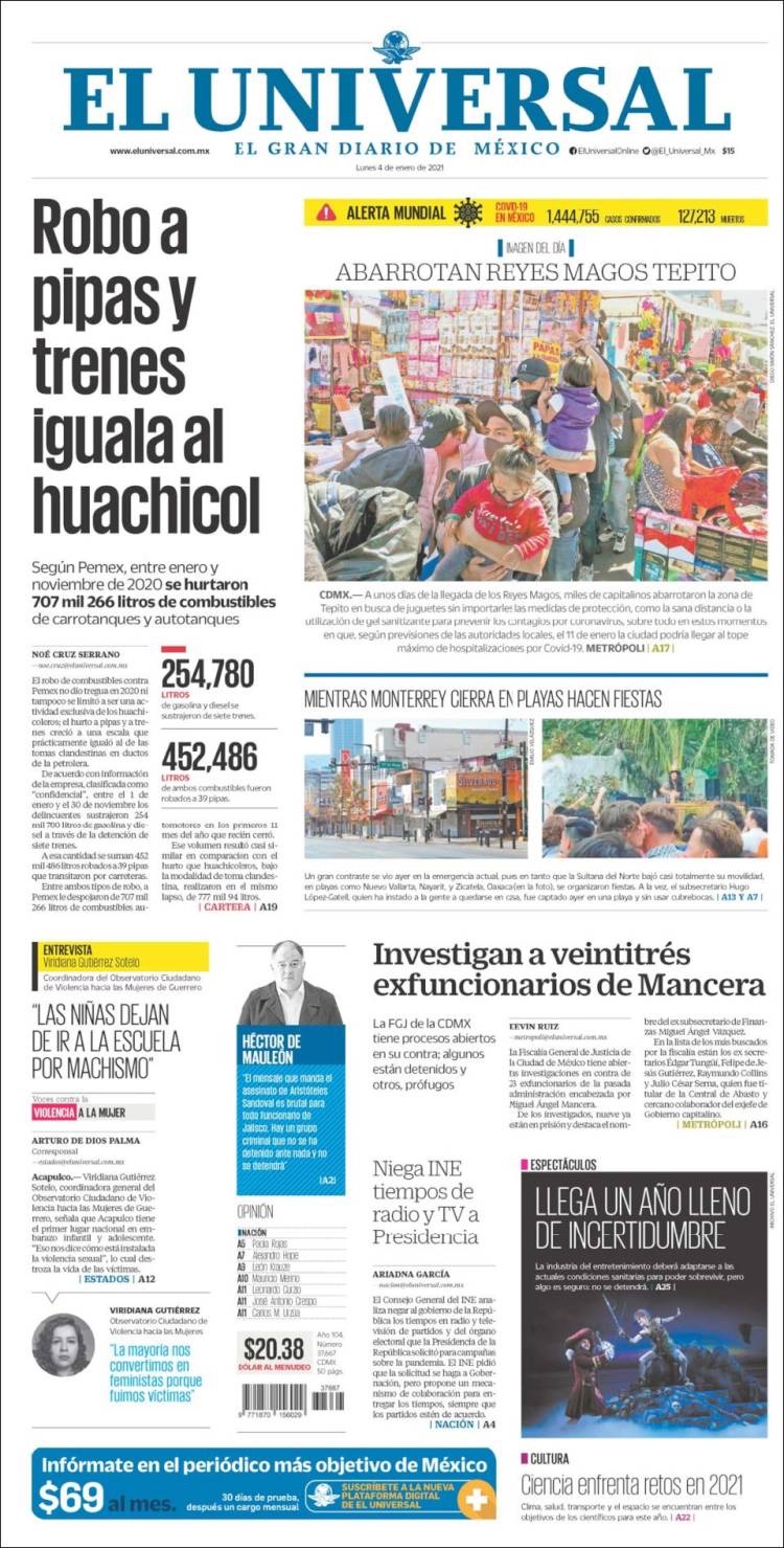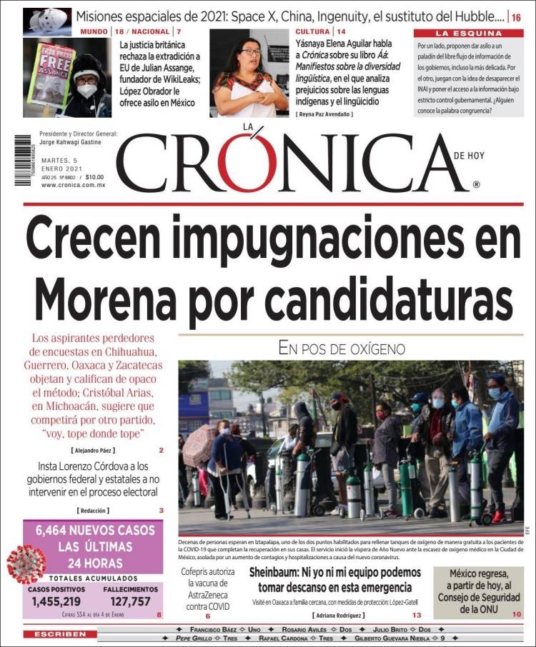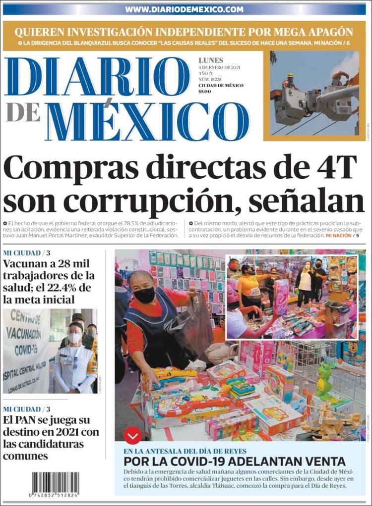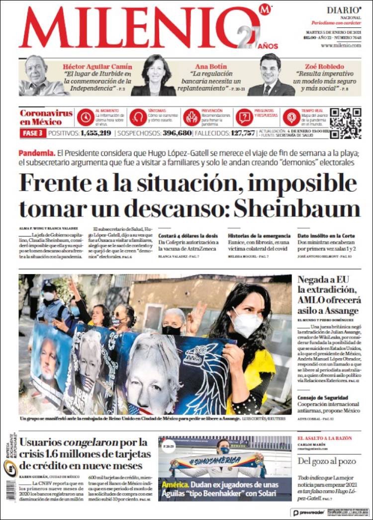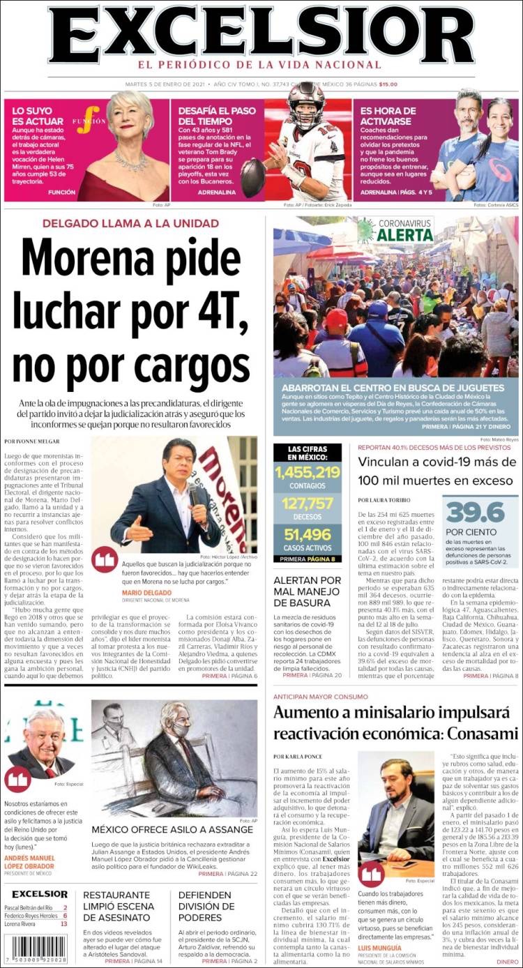 PRIMERAS PLANAS EN MEXICO Y EL MUNDO DEL MARTES 05 DE ENERO DE 2021