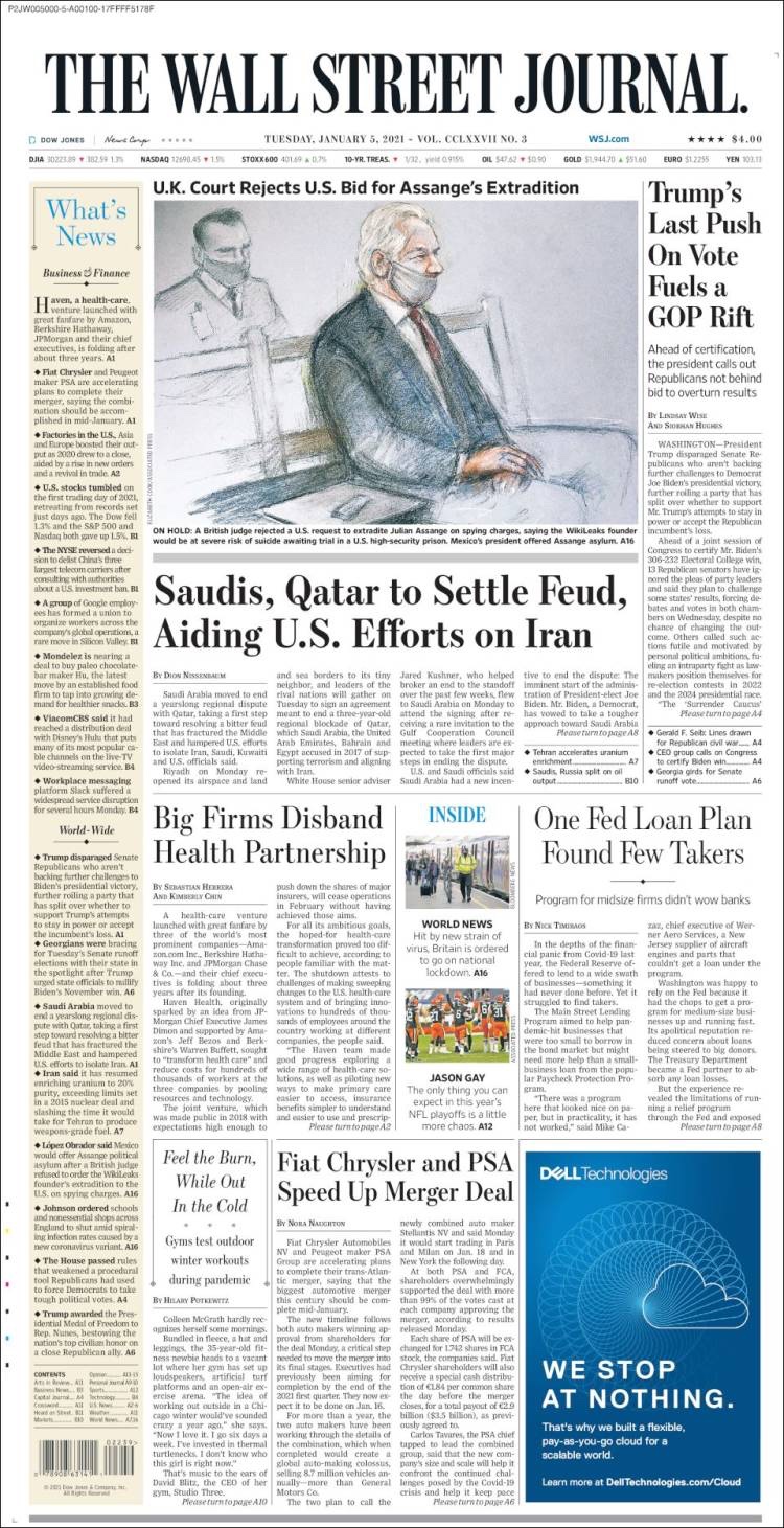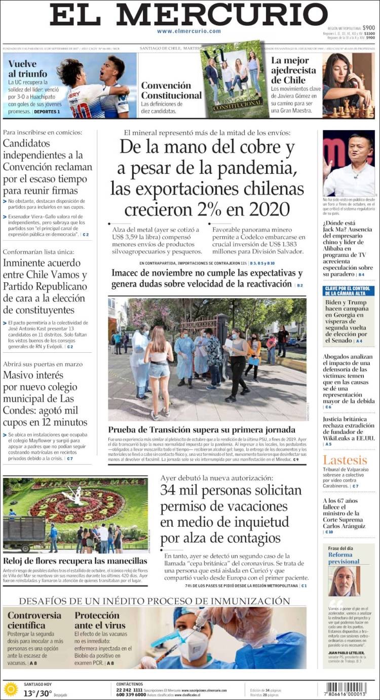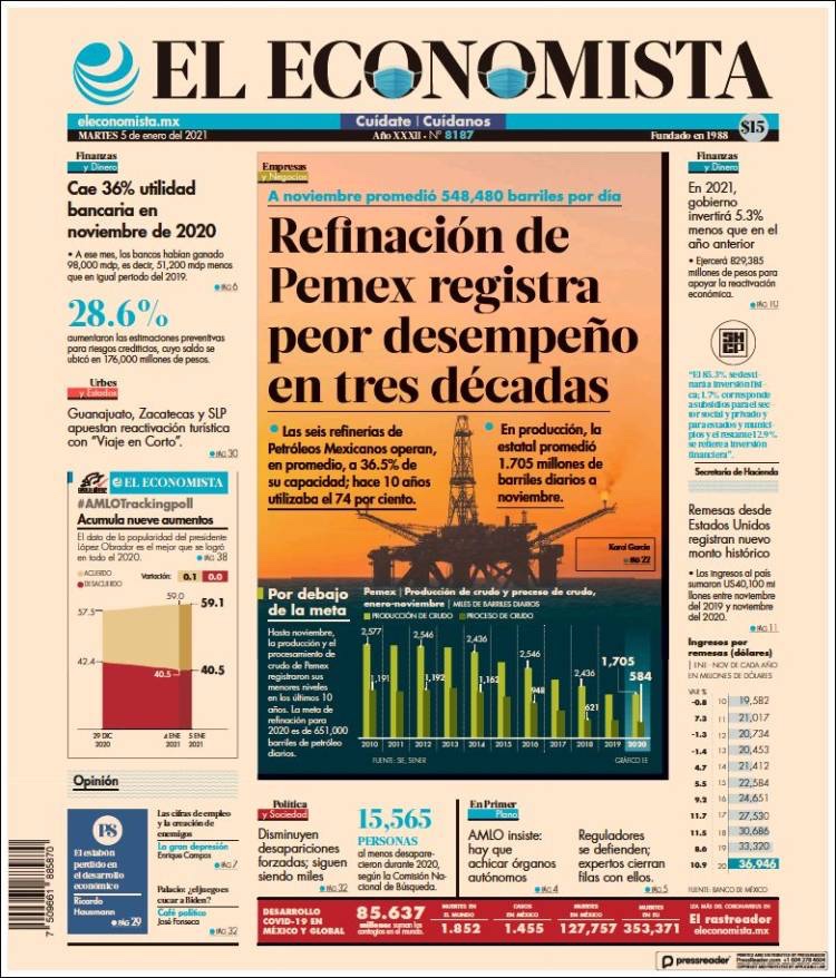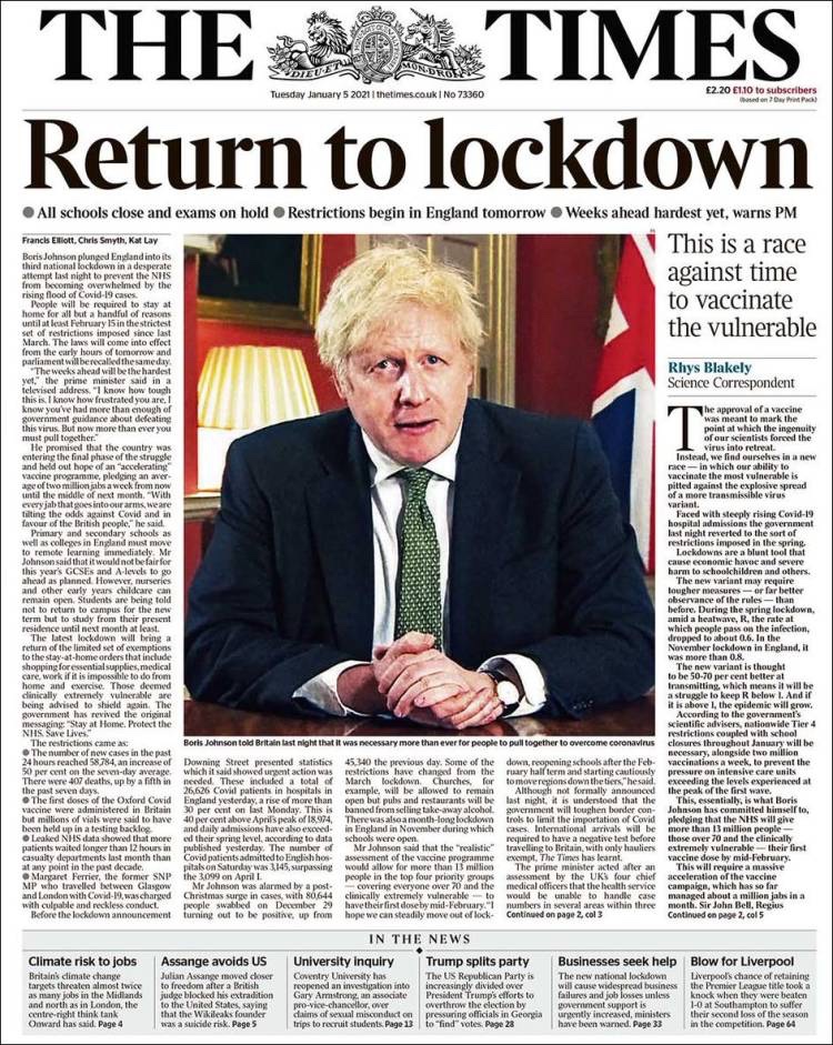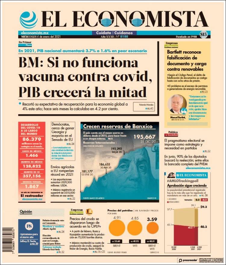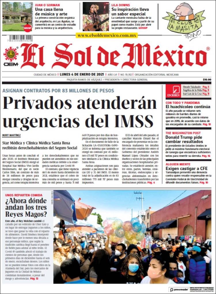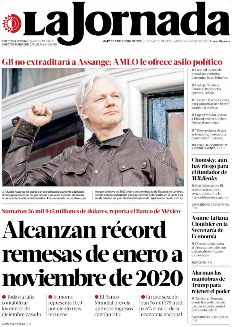 PRIMERAS PLANAS EN MEXICO Y EL MUNDO DEL MARTES 05 DE ENERO DE 2021
